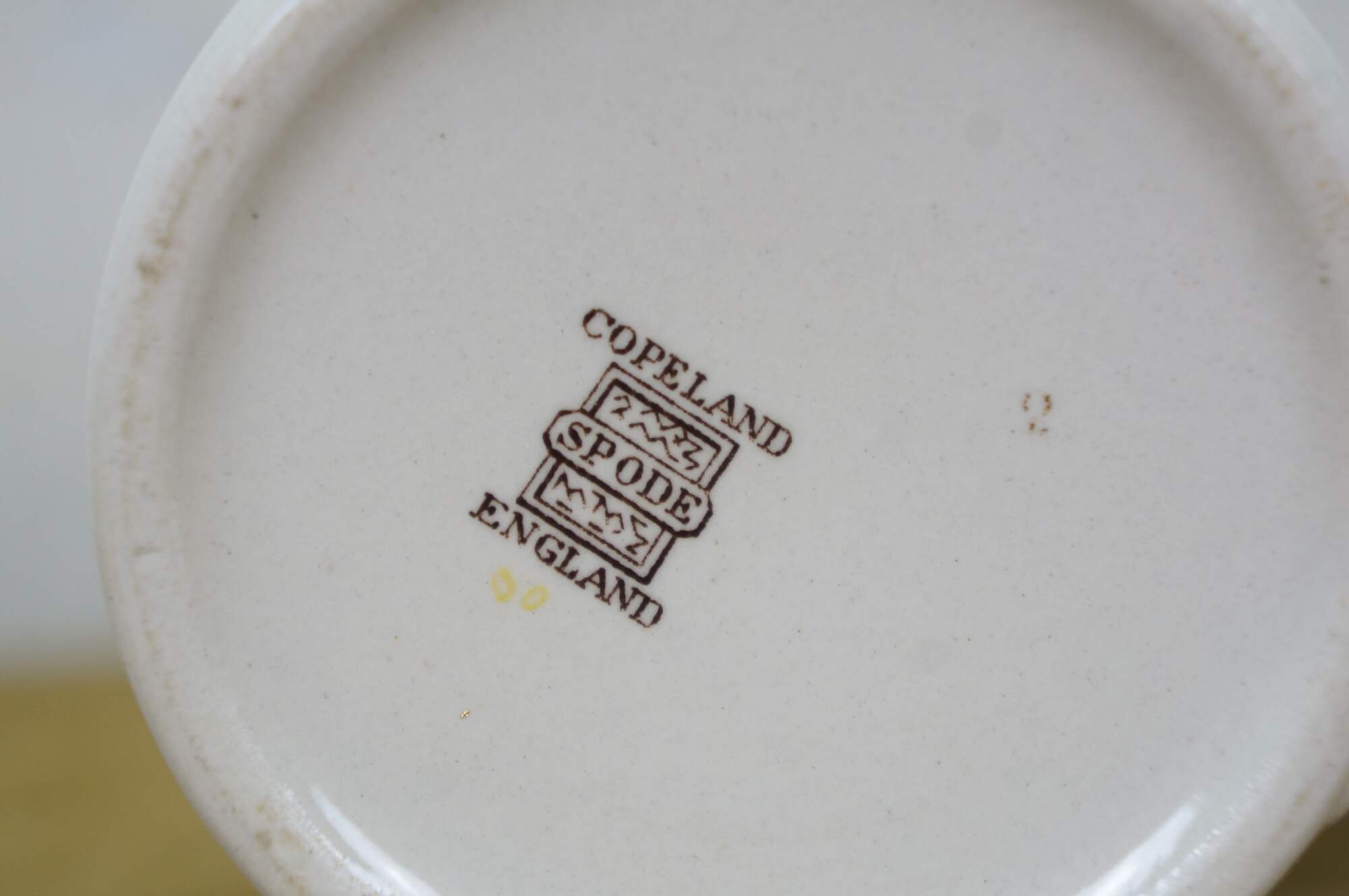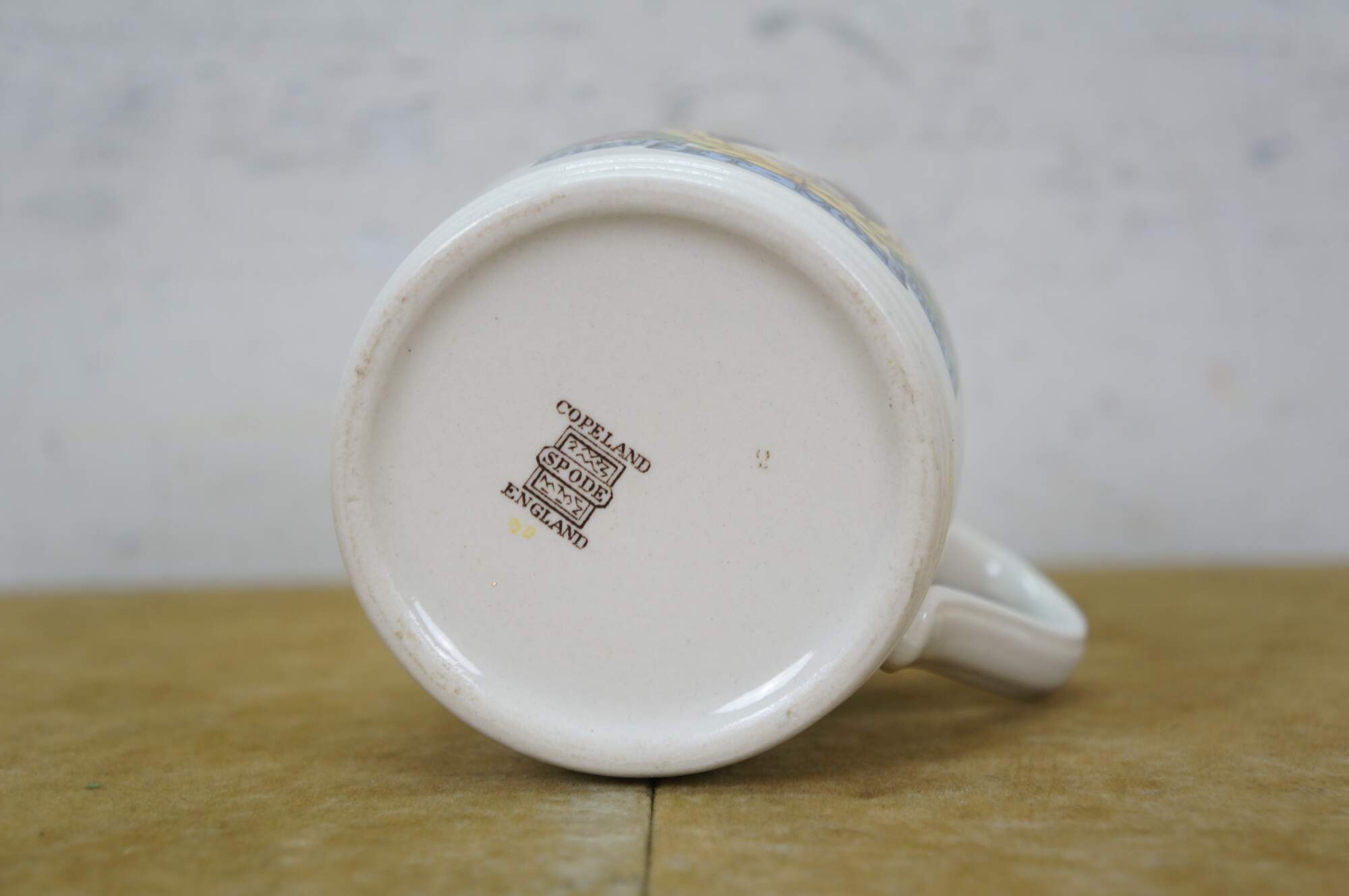 "Spode is an English brand of pottery and homewares produced in Stoke-on-Trent, England, founded by Josiah Spode (1733–1797) in 1770. In 1776 he completed the purchase of what became the Spode factory until 2008. Spode perfected the technique for transfer printing in underglaze blue on fine earthenware in 1783–1784 – a development that led to the launch in 1816 of Spode's Blue Italian range, which has remained in production ever since. The company is credited with developing, around 1790, the formula for fine bone china that was generally adopted by the industry. Josiah Spode's son, Josiah Spode II, successfully marketed English bone china. The business was carried on through his sons at Stoke until April 1833. Messrs Spode were succeeded in the same business in c. 1833 by Copeland and Garrett, who often used the name Spode in their marks. In particular these are called 'Late Spode' and include productions of the so-called 'Felspar porcelain'. They also produced other kinds of bone china, earthenware, parian, etc. The partnership continued in this form until 1847. After 1847 the business continued until 1970 as W.T. Copeland and sons, and again the term 'Spode' or 'Late Spode' continued in use alongside the name of Copeland. Under the name 'Spode Ltd' the same factories and business were continued after 1970. In 2006, the business merged with Royal Worcester. In 2008, the Copeland Spode company went through some financial troubles. It was taken over in 2009 by Portmeirion Group, a pottery and homewares company based in Stoke-on-Trent. The purchase did not include Royal Worcester or Spode manufacturing facilities. Many items in Spode's Blue Italian and Woodland ranges are made at Portmeirion Group's factory in Stoke-on-Trent." (Source: Wikipedia)