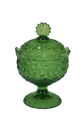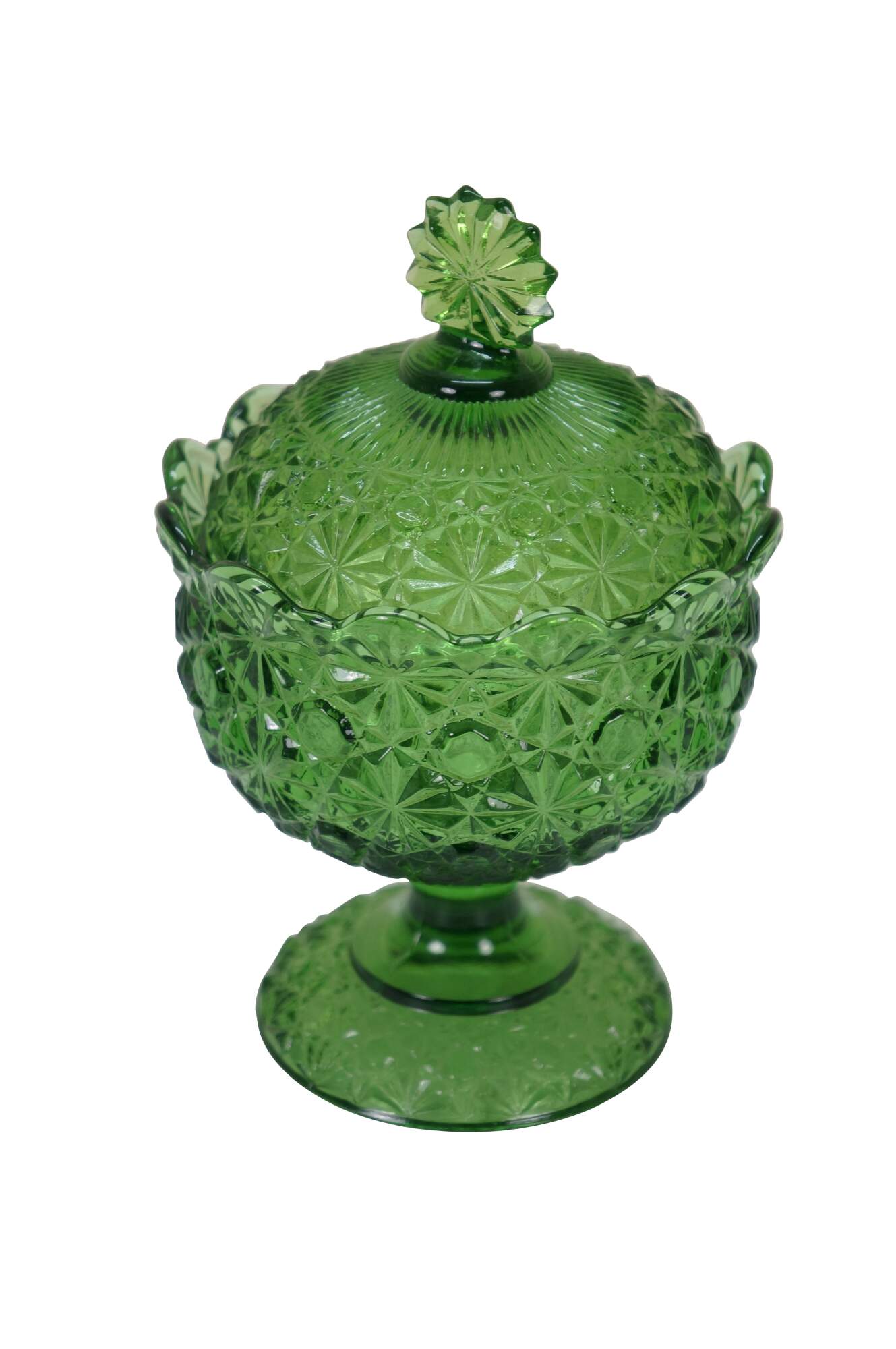 Circa 1940's green pressed glass candy / nut dish attributed to LG Wright from a Fenton design.