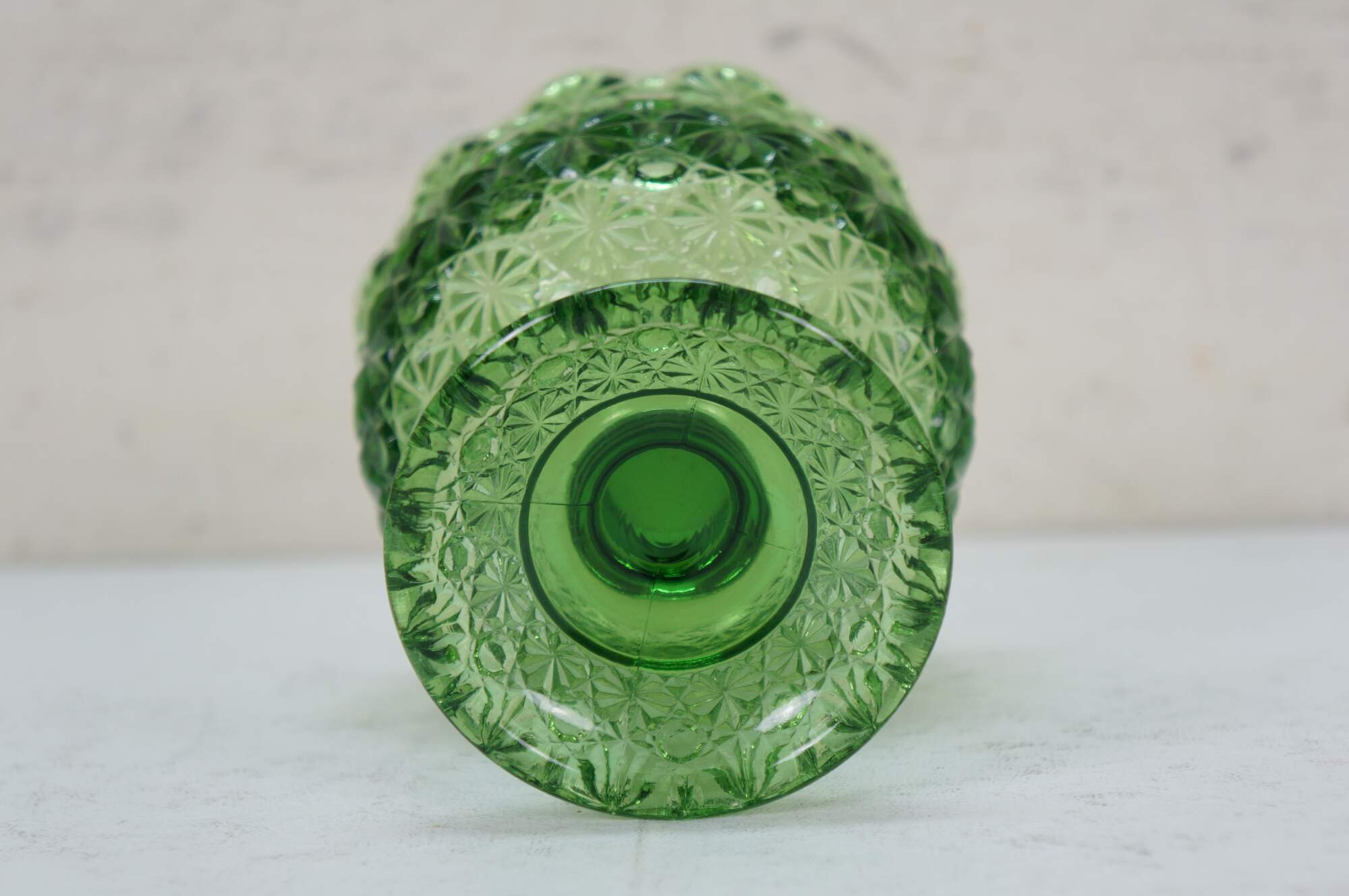 LG Wright Fenton Art Glass Daisy & Button Green Glass Candy Dish Compote 6"
