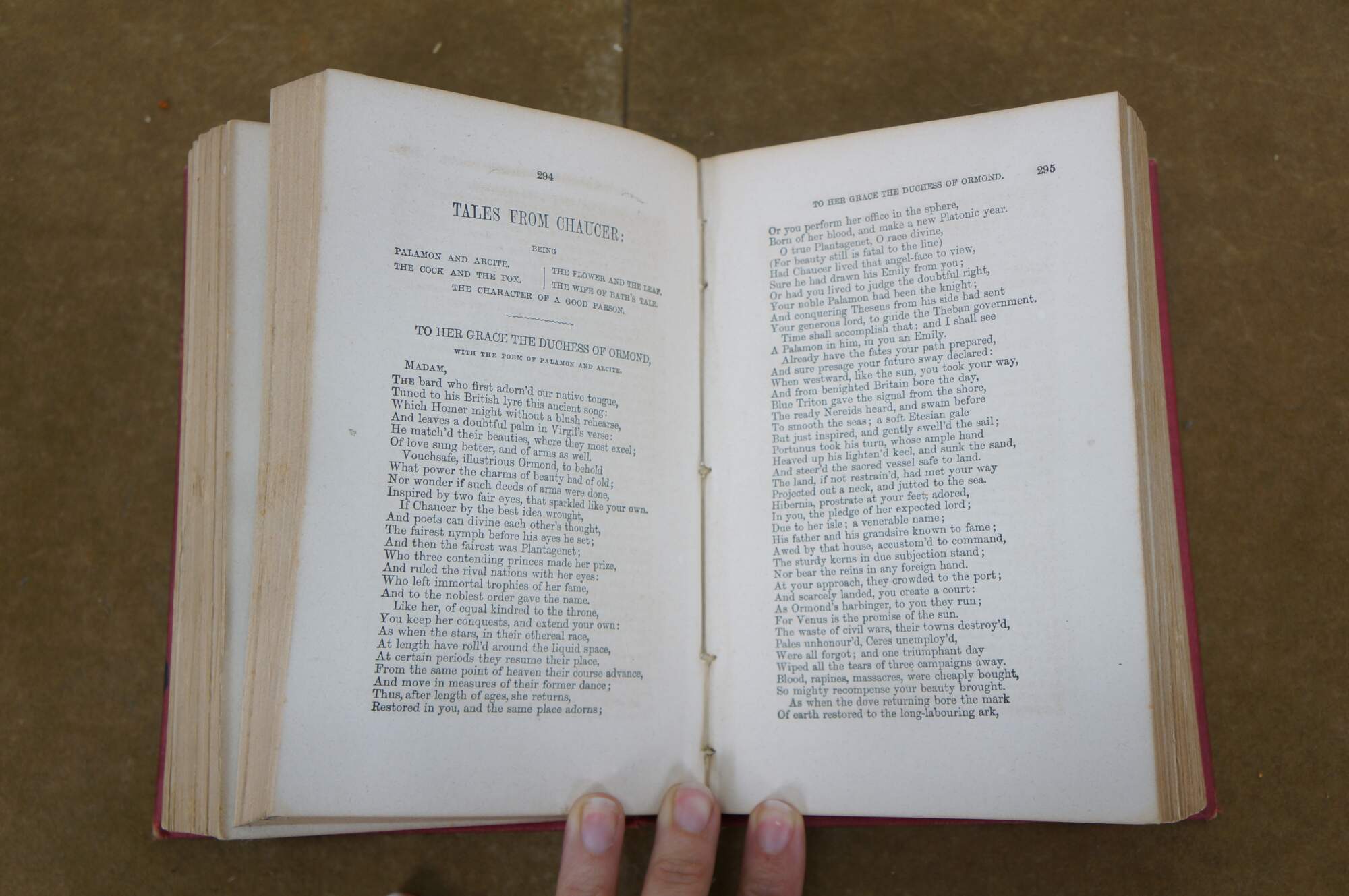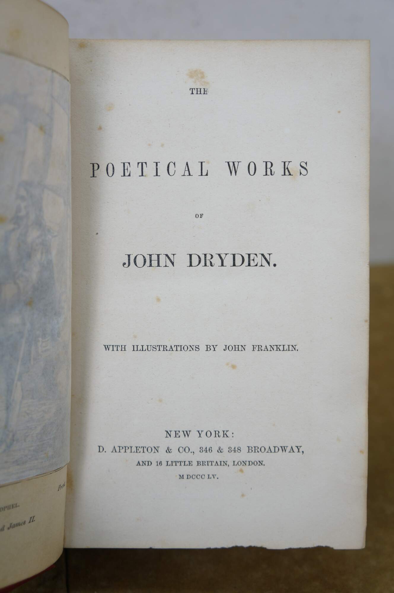 Antique hard cover copy of "The Poetical Works of John Dryden" - with Illustrations by John Franklin - Published by D. Appleton & Co, 1855. Hard back / hard cover, red embossed bonded leather binding with stamped gilt details. No jacket.