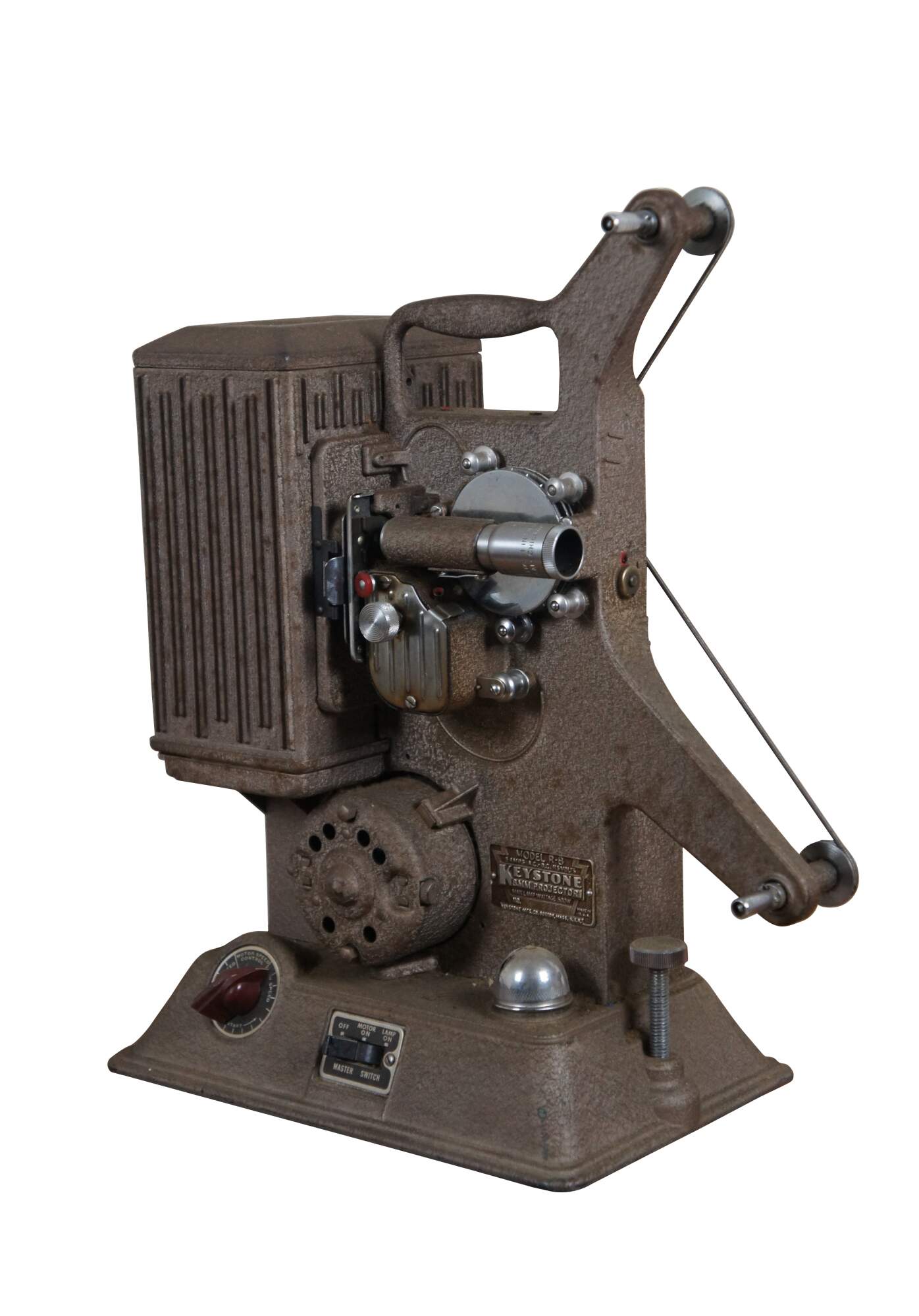 Circa 1930's Keystone 8mm reel to reel style film projector, Model R-8, No. K-8836. Made in USA by the Keystone Manufacturing Company of Boston, MA. 8mm coated lens 1 inch f/1.8 by Simpson Optical, Chicago, USA. Medium brown color.