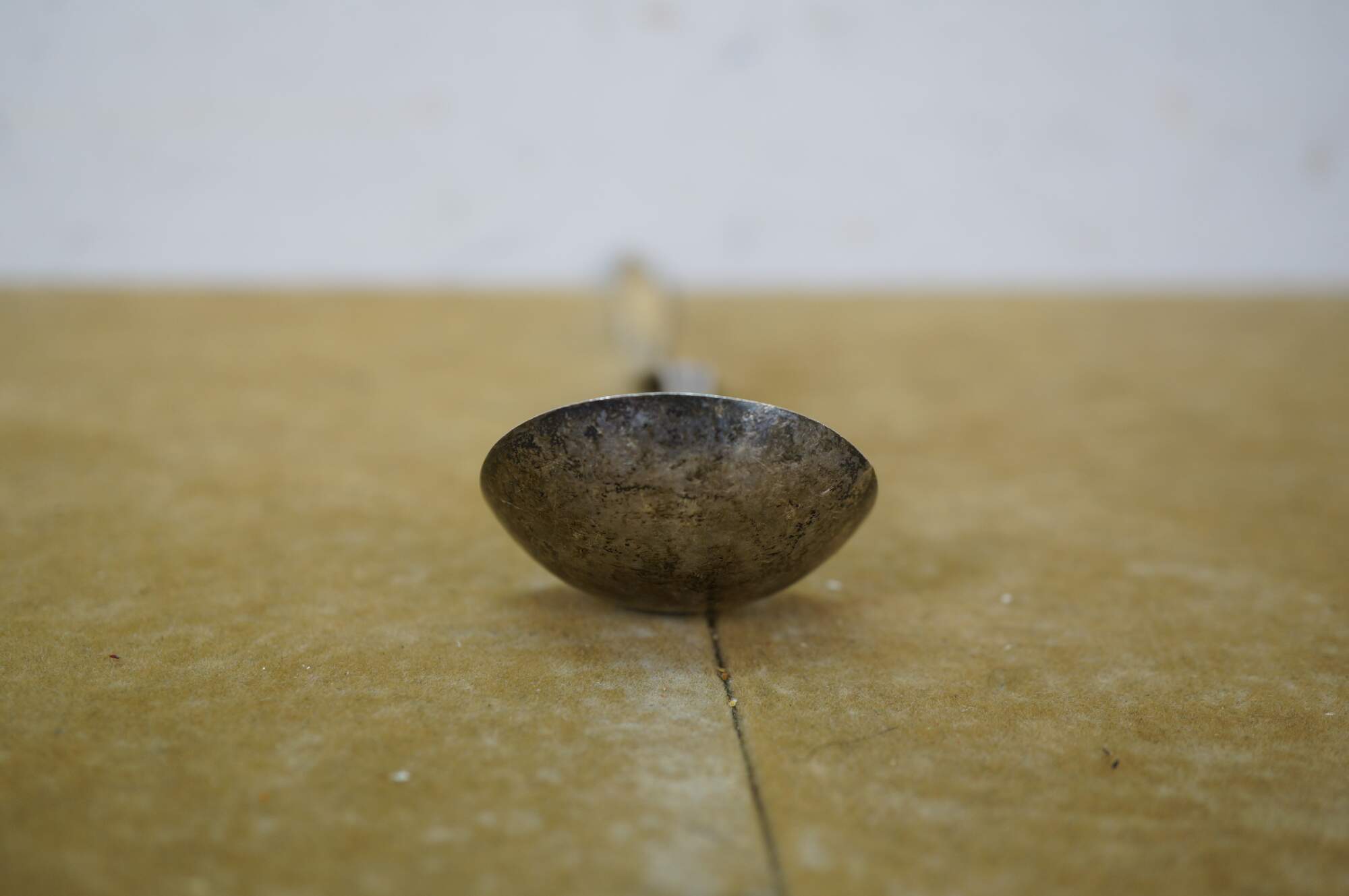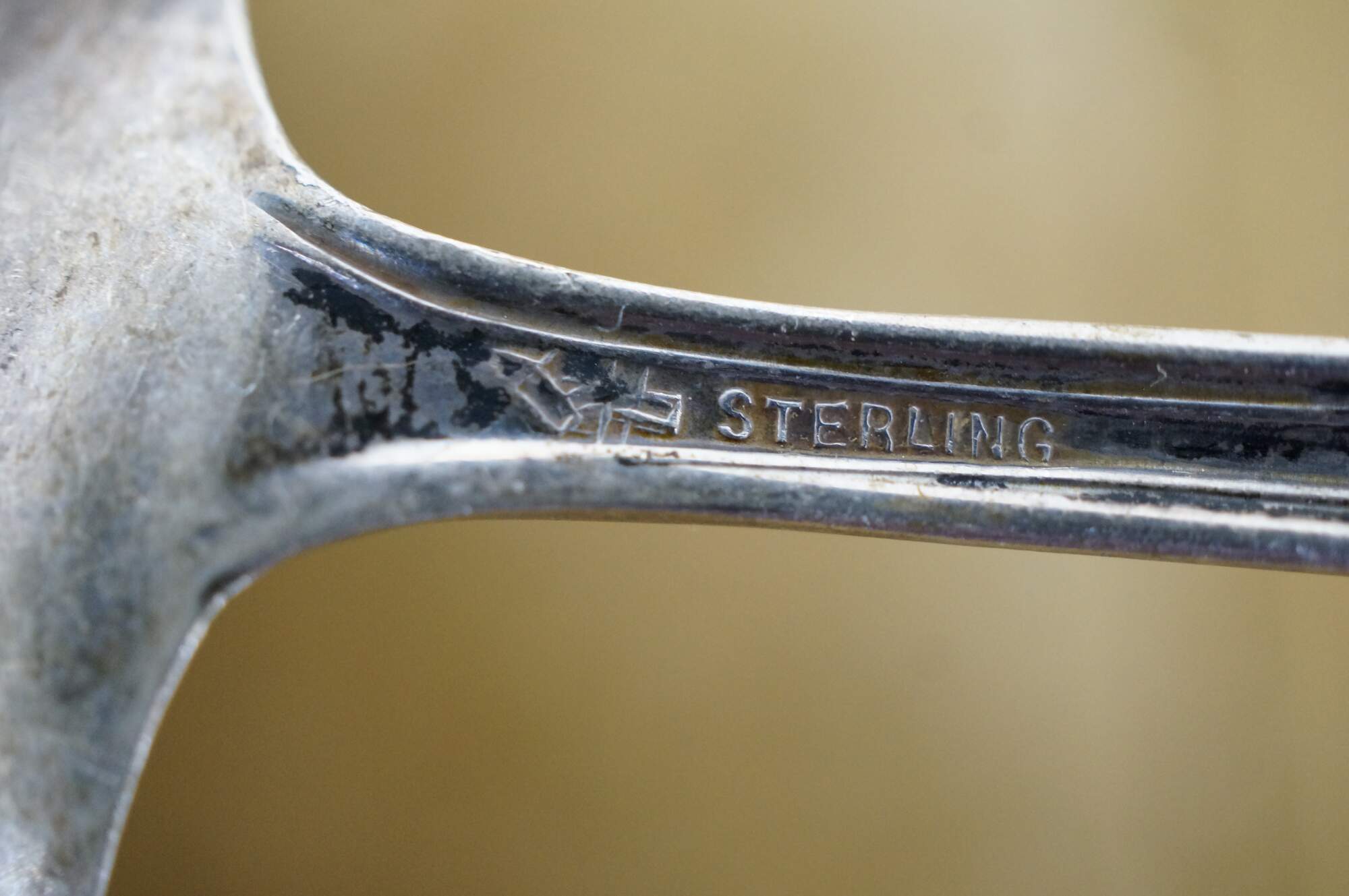 Bent, Tarnish, ding to lip.