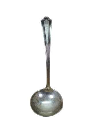 Early 20th century Manchester Silver Co sterling silver cream / sauce ladle in the Mary Warren pattern (introduced 1910). Monogrammed with the letter P.