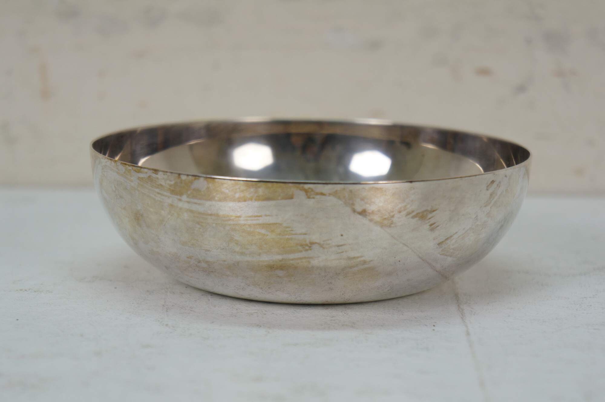 Late 20th century Christofle Coll Gallia round silver plated nut / candy dish / bowl. Made in France.