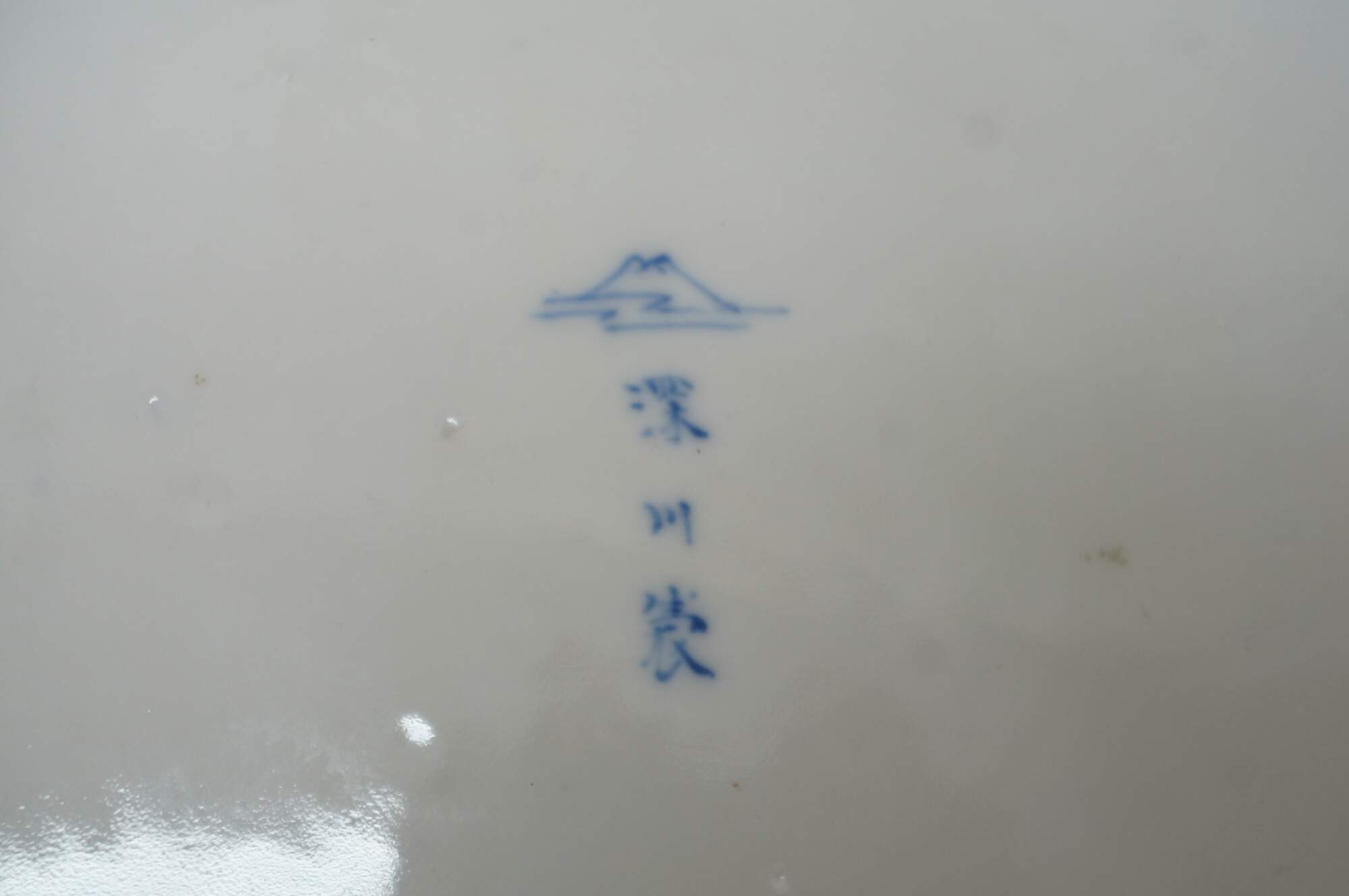 "Fukagawa is a family, a brand name, a place and nowadays a porcelain factory in the Arita region. Its history goes back to the seventeenth century. Its history starts with Ezaiemon Fukagawa who in 1856 became head of his family's porcelain business. In Meiji 8th (1875) Ezaiemon (1833-1889), Fukaumi Suminosuke & his brother Takeji, Tsuji Katsuzo and Tezuka Kamenosuke founded a company named Scented Orchid Company or 'Koransha' and started to produce porcelain for export to Europe and America. In 1879, Fukaumi and other members left the company and Koransha was reestablished by Eizaemon alone. After his death in 1889, his oldest son, Yotaro succeeded the company while his second son, Fukagawa Chuji (1871-1934) started the Fukagawa Porcelain Company, aka Fukagawa Seiji. The company exported a porcelain ware to Europe and America that was highly prized through the world fairs. The mark was that of the name of the company under Mt. Fuji and a Stream or only the Mt. Fuji." (Source: Gotheborg)