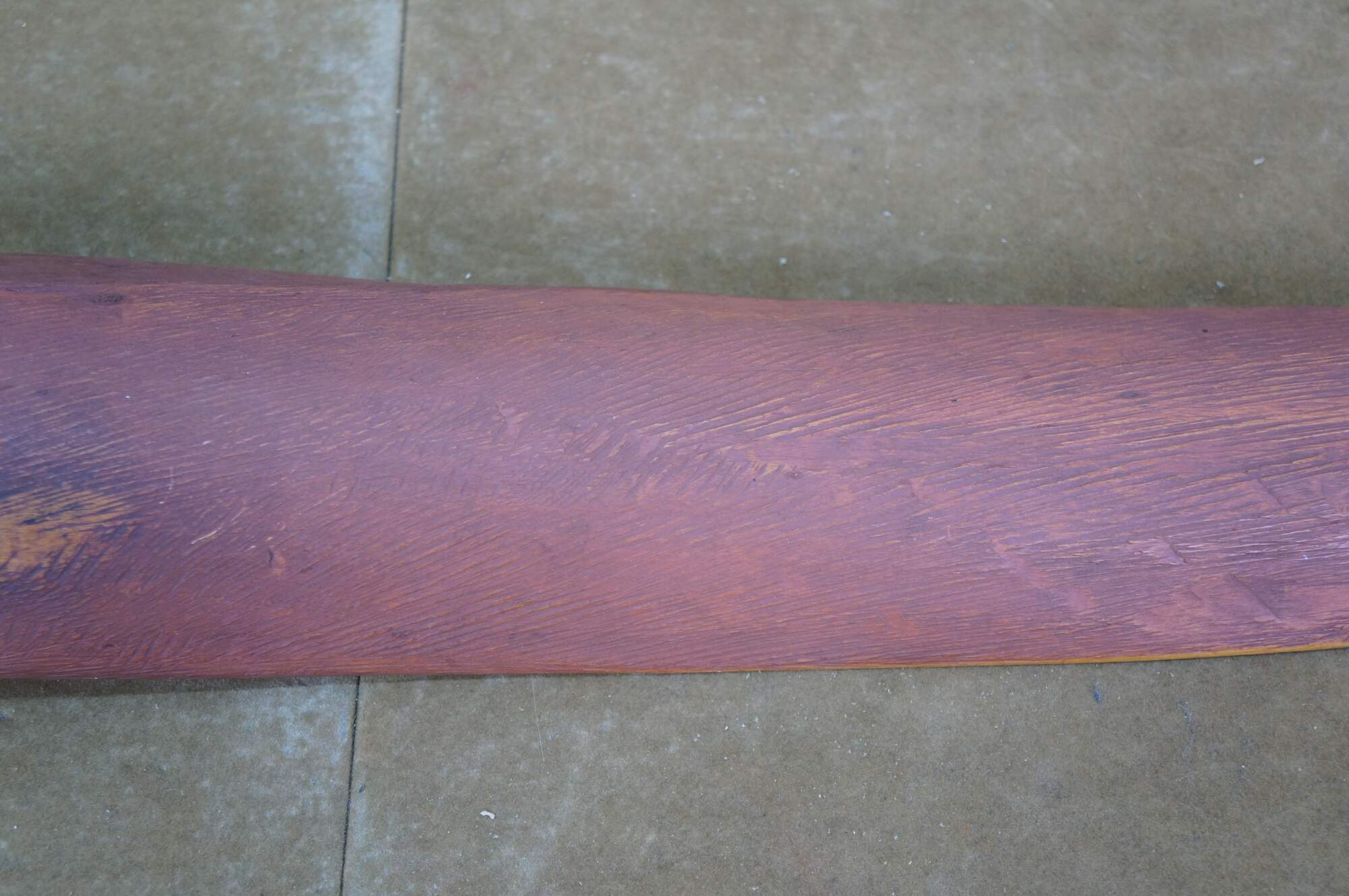 Vintage 20th century Australian aboriginal wooden woomera or hunting spear. Leaf shaped throwing spear hand carved in two toned wood.