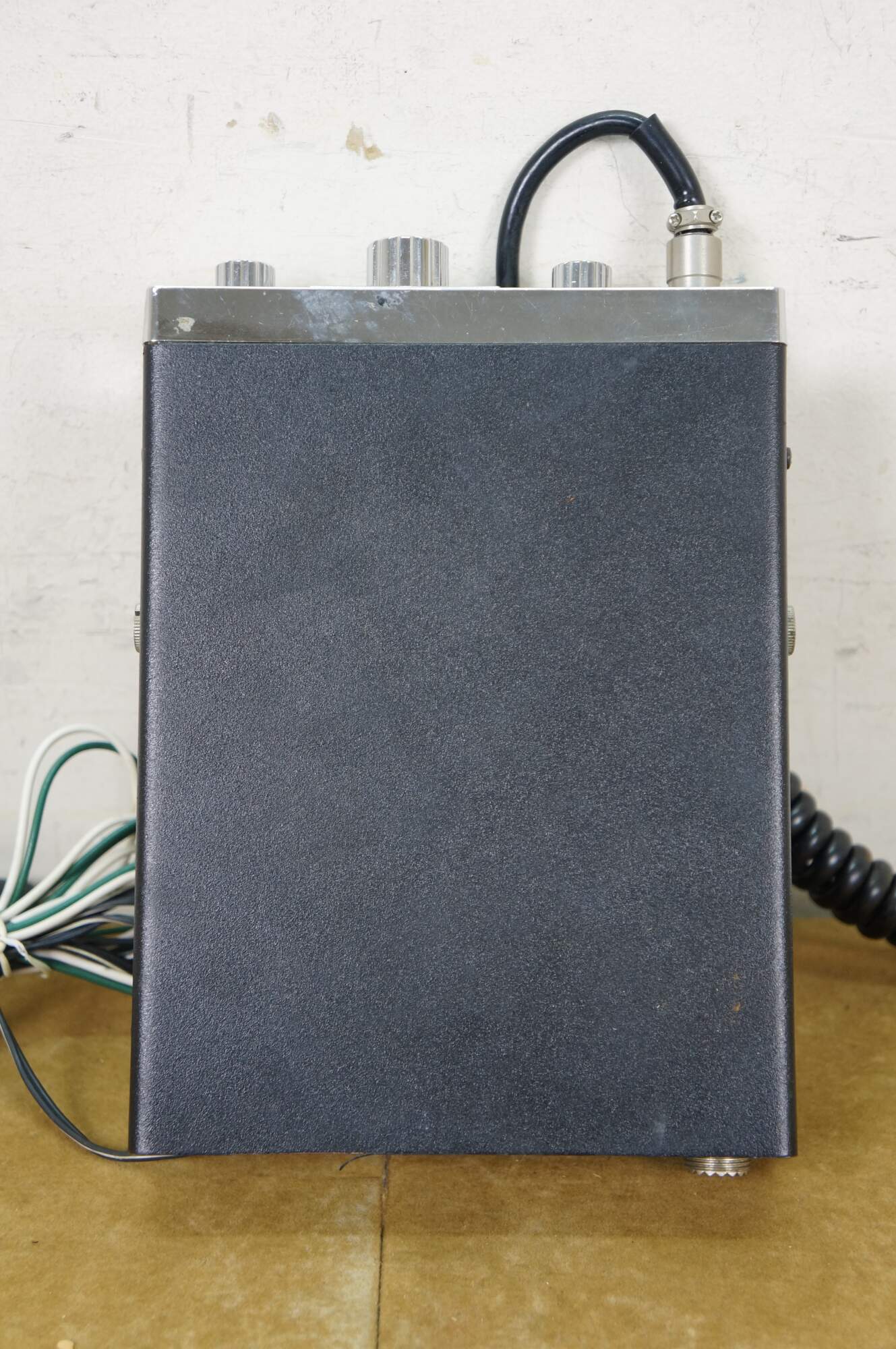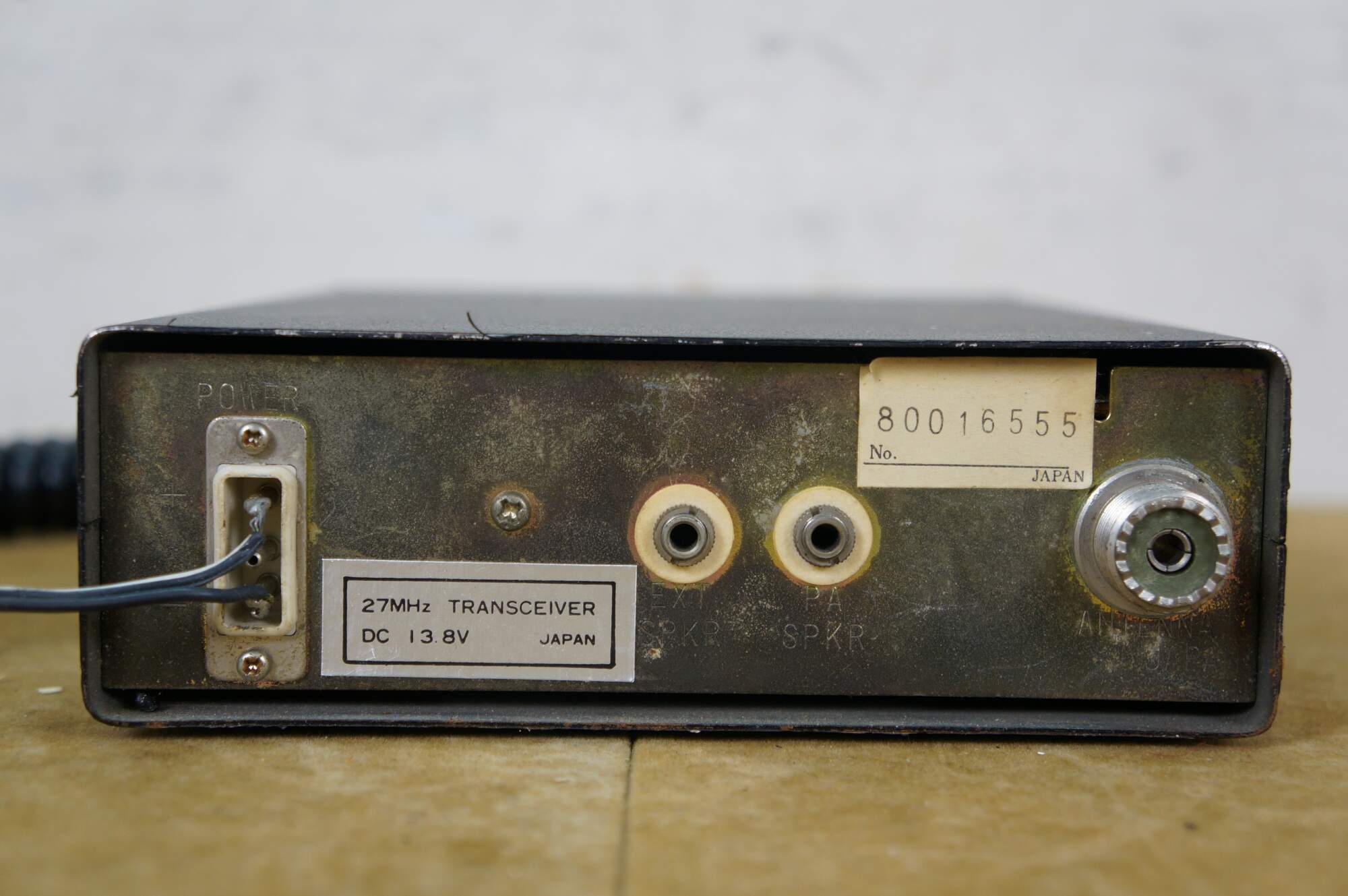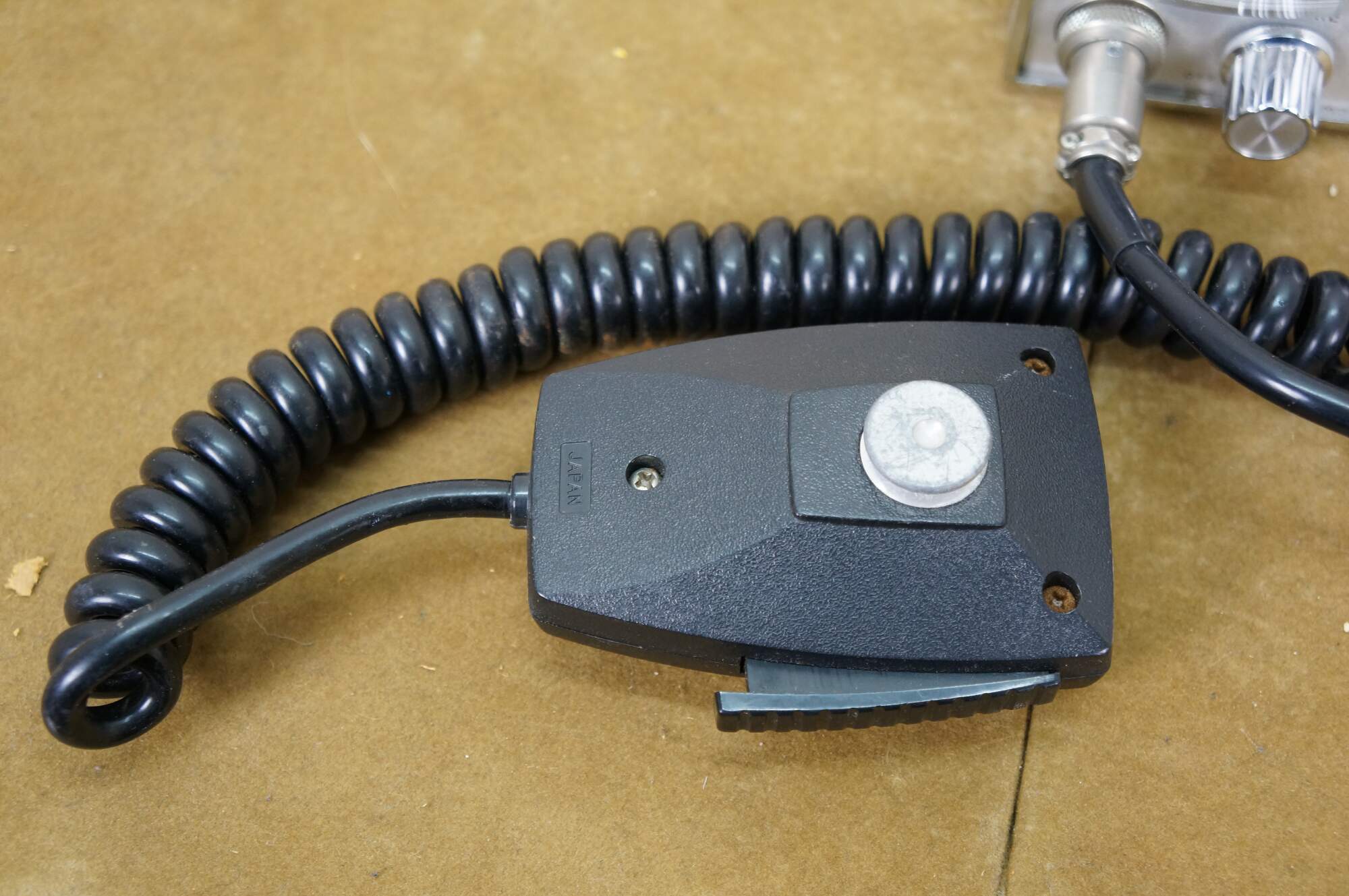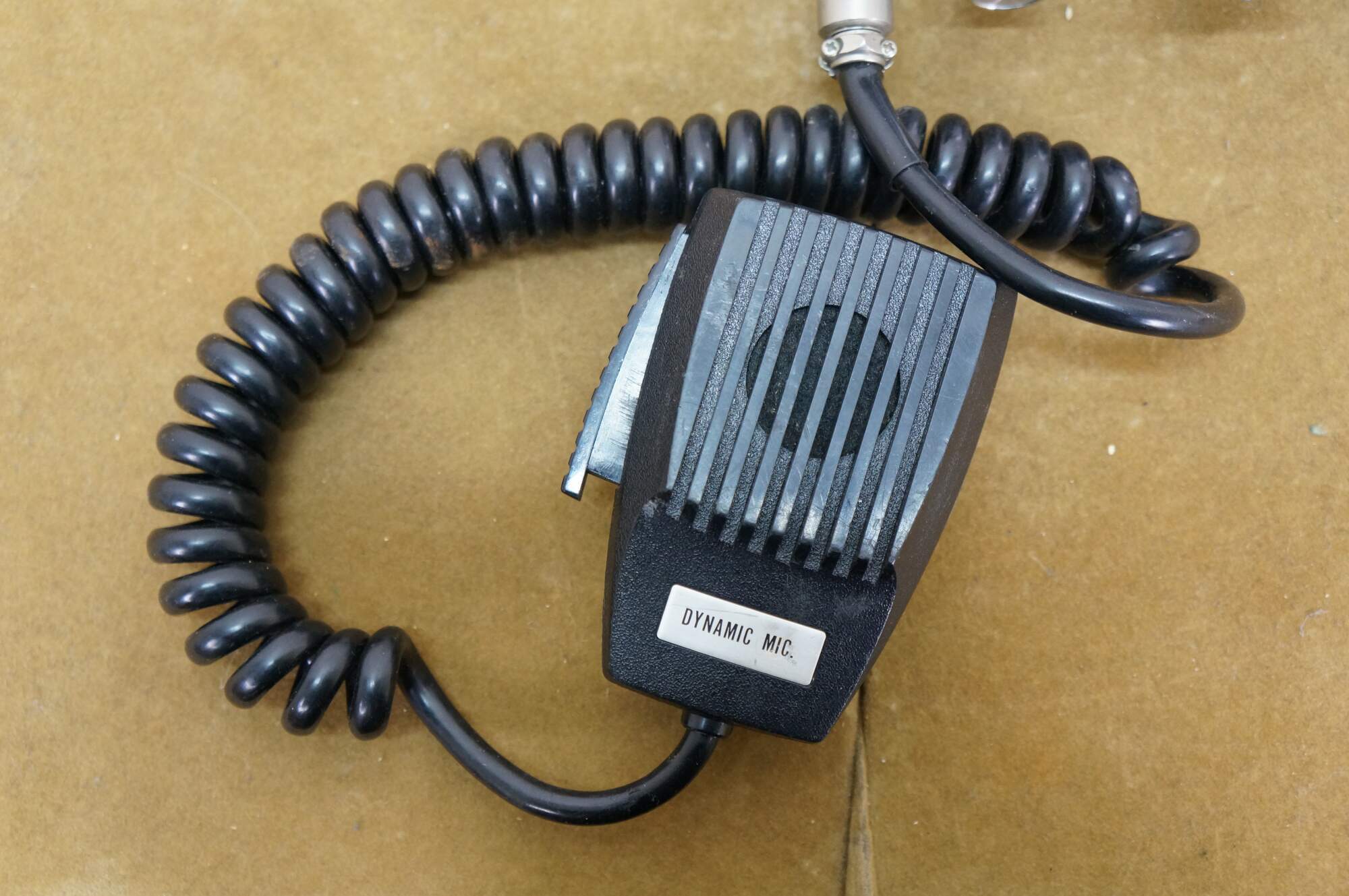 Mid to late 20th century Prominent 23 channel CB Radio and Dynamic Mic. No. 80016555. 27 MHz Transceiver / DC 13.8V - FCC Data: 1125 - Tokyo Sansei (NY) Inc - Made in Japan. Wired to plug into automobile cigarette lighter socket.