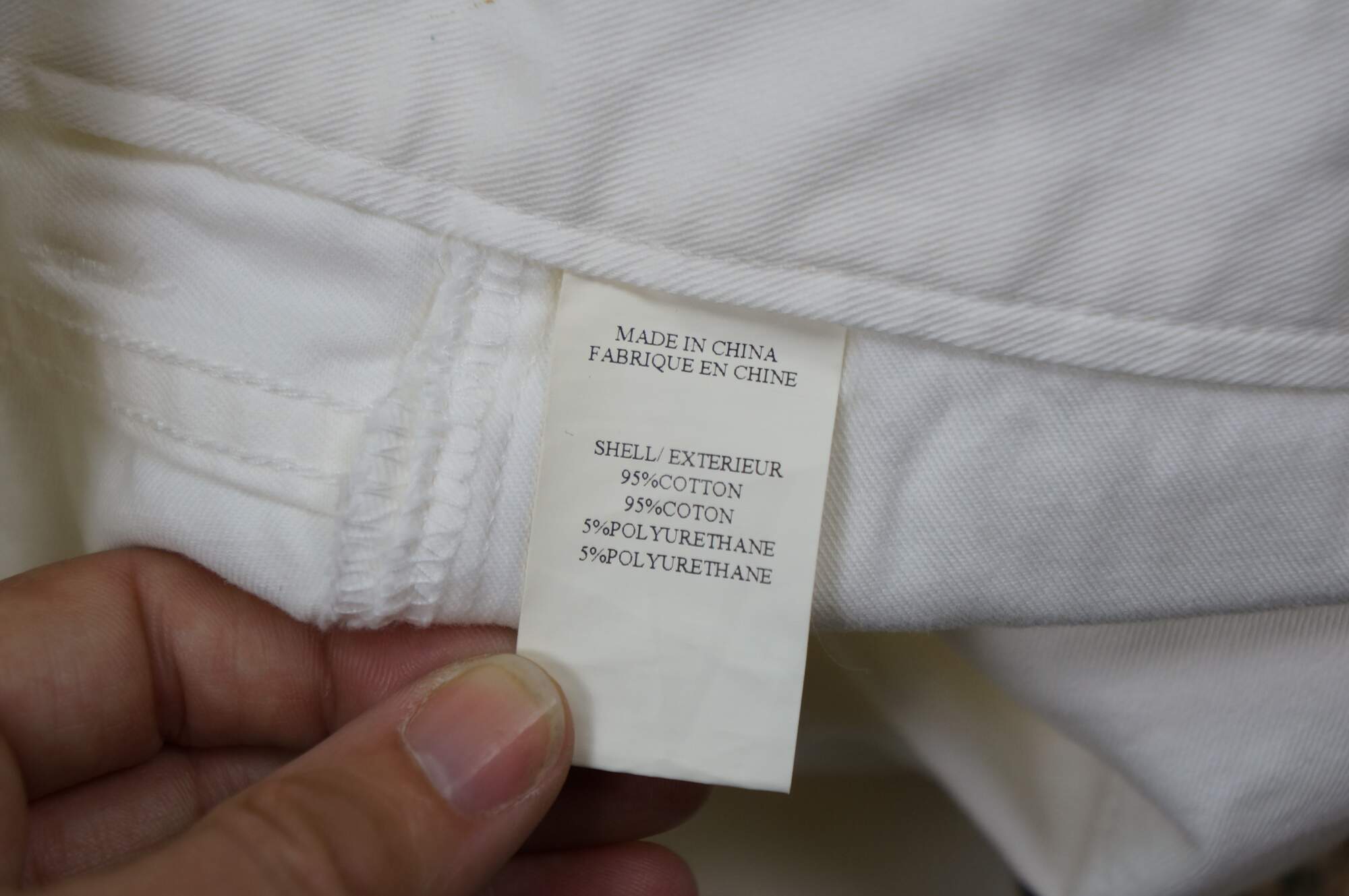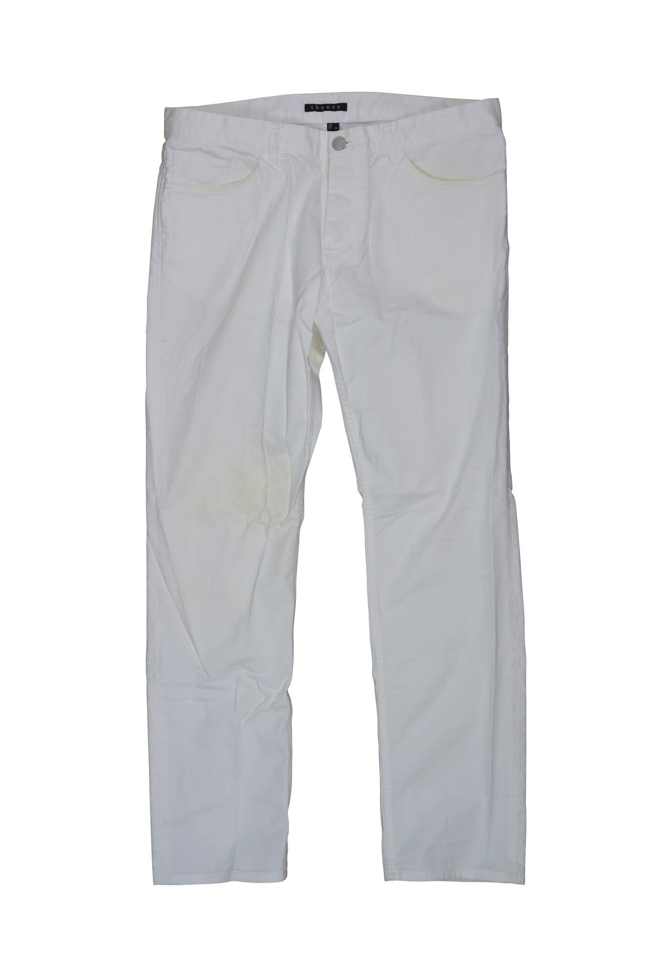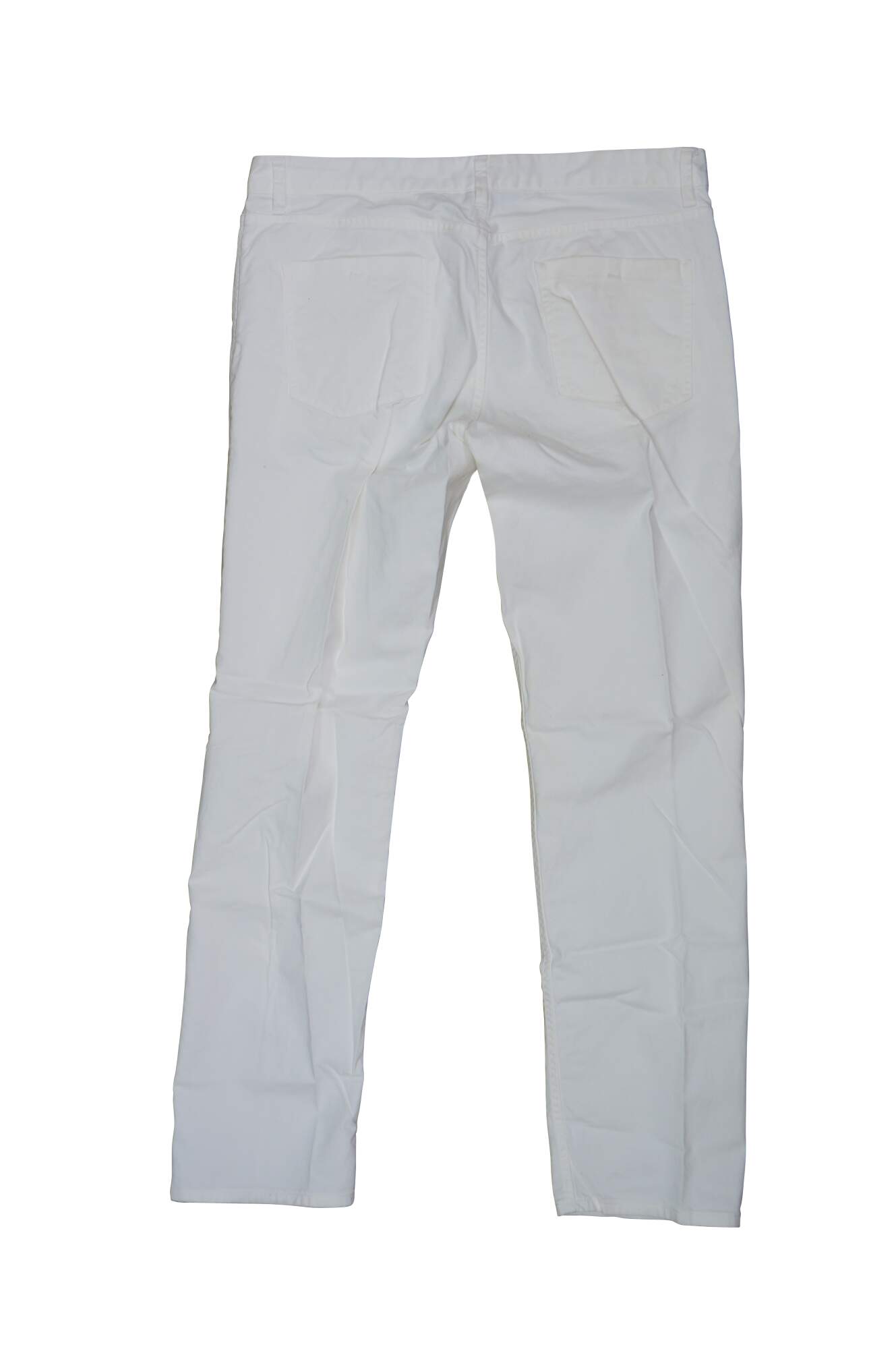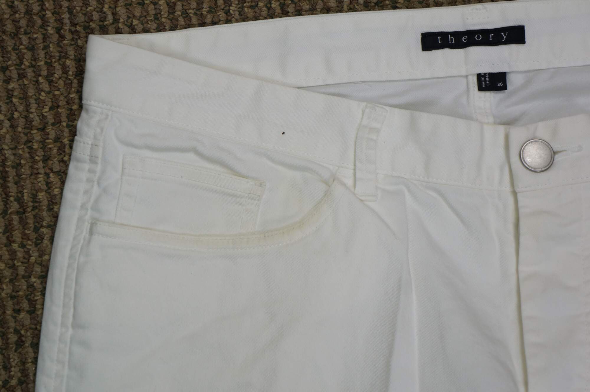 Vintage Theory Haydin / Editor men's white denim jeans / pants. Button fly. Two back pockets. Two front side pockets, right hand watch pocket. 95% Cotton / 5% Polyurethane. Made in China.
