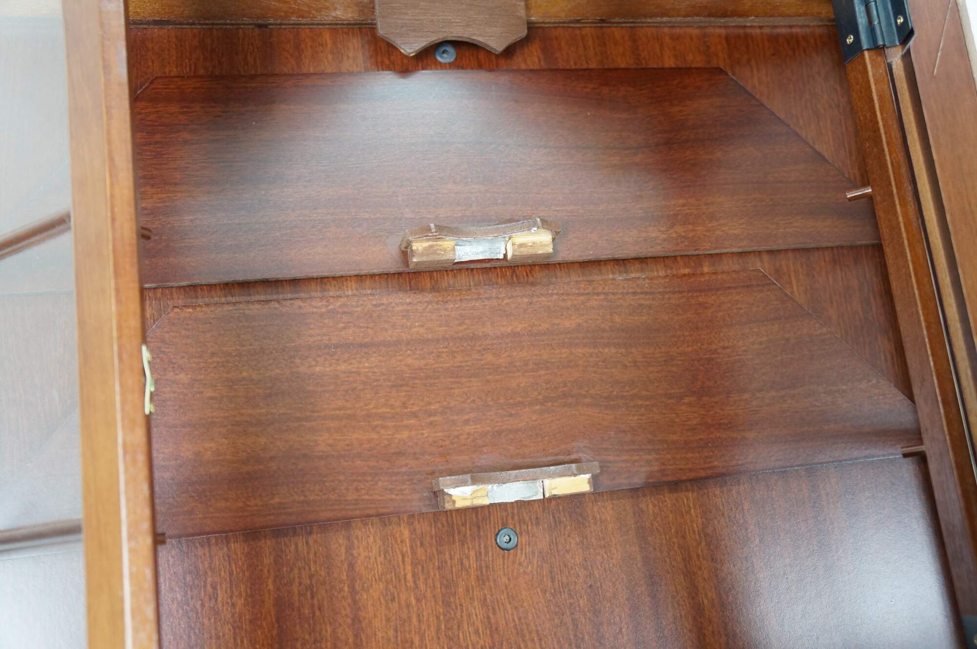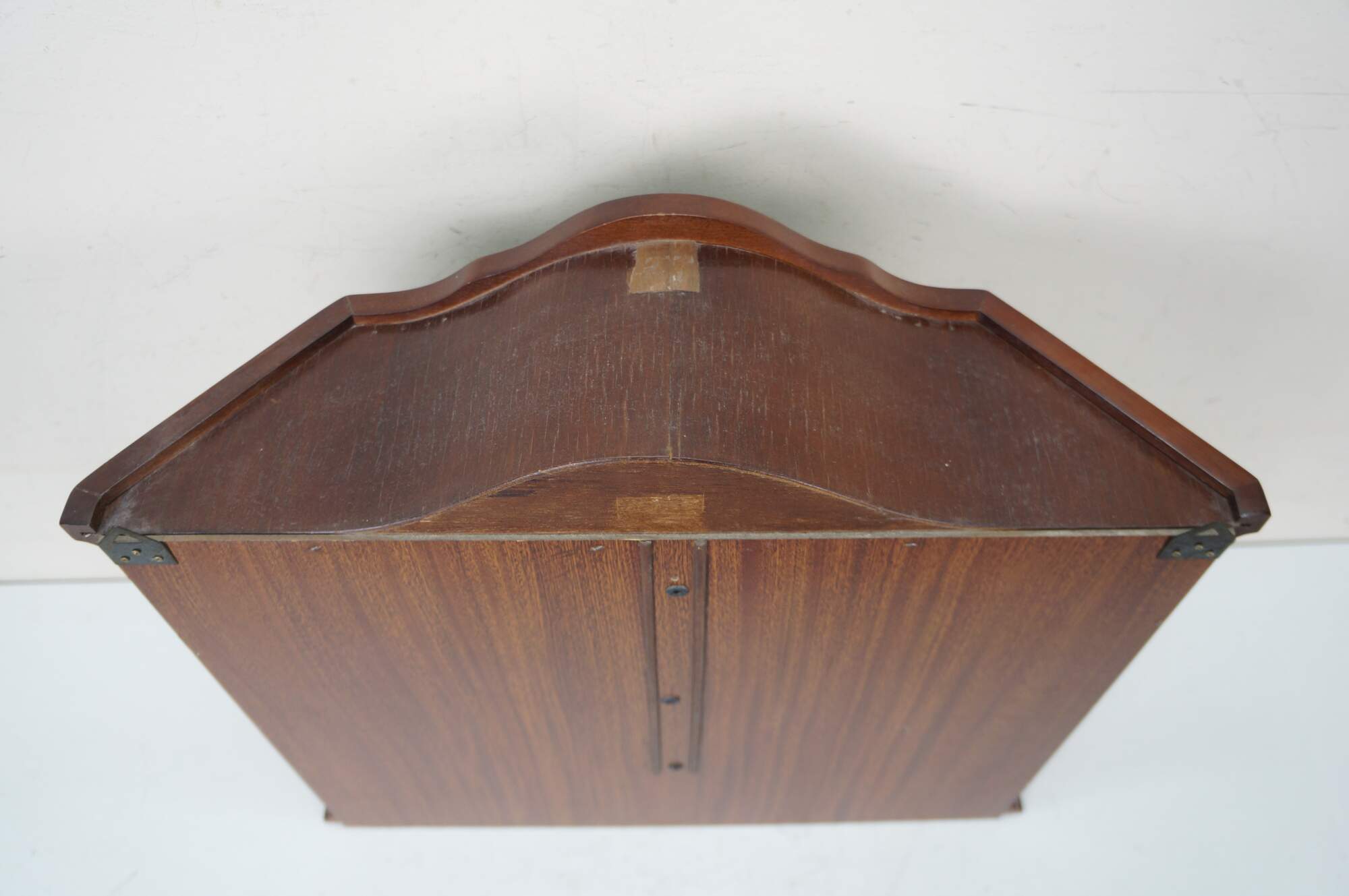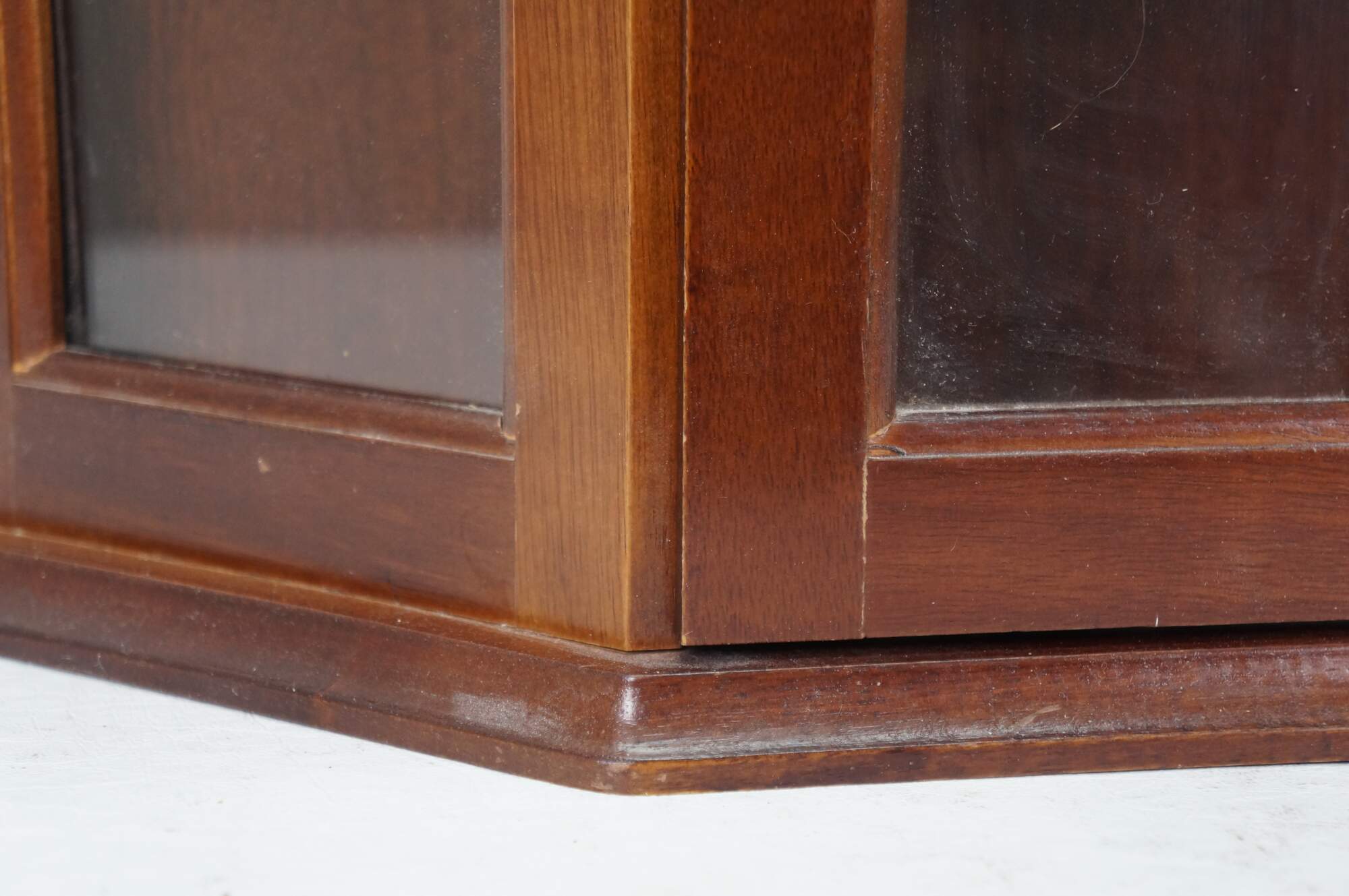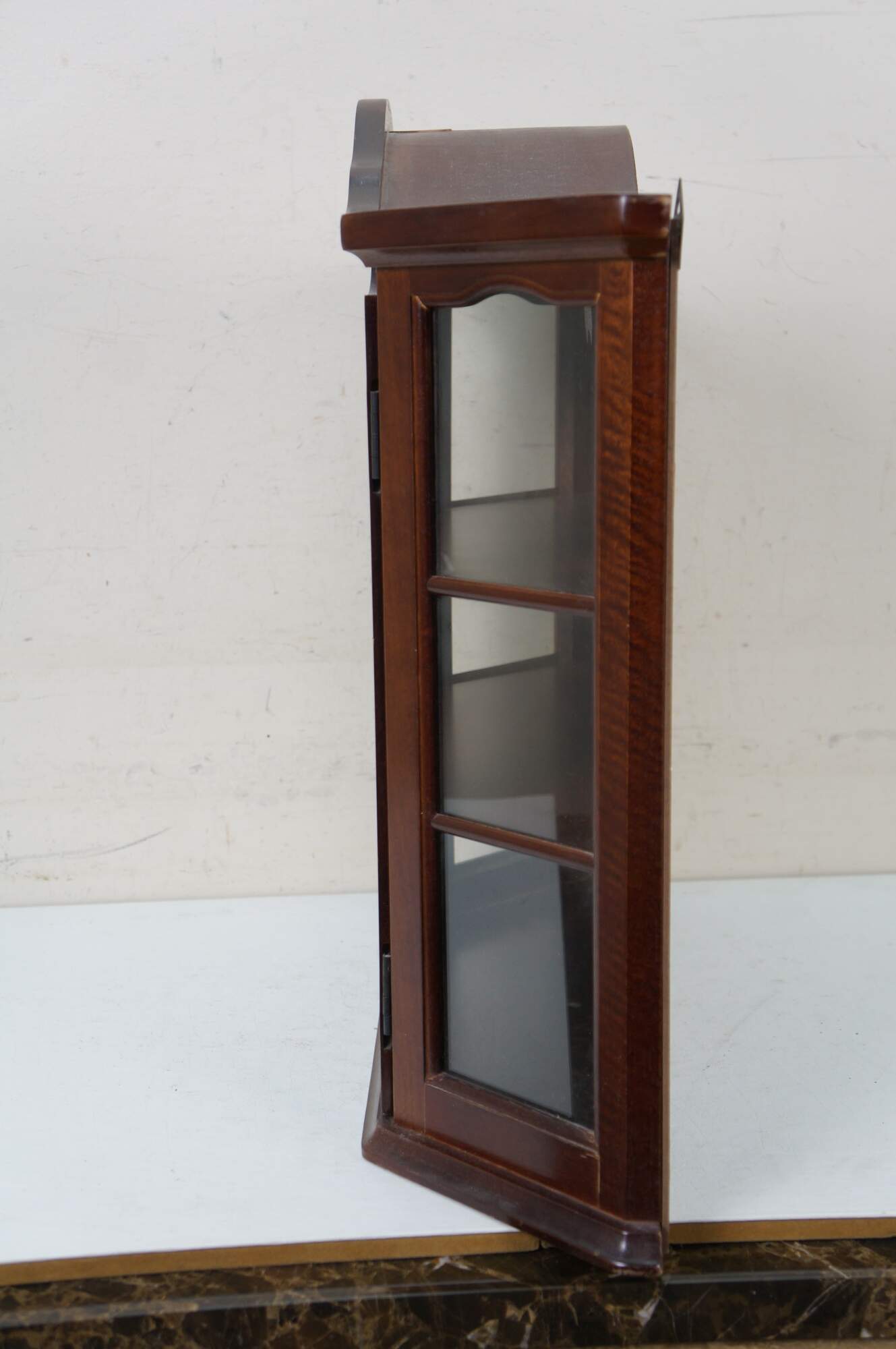 Vintage 20th century mahogany Chippendale style curio / display cabinet featuring a three sided glass front, arch top, and three interior shelves. Back of cabinet is fitted with slots to accomodate wiring for lights.