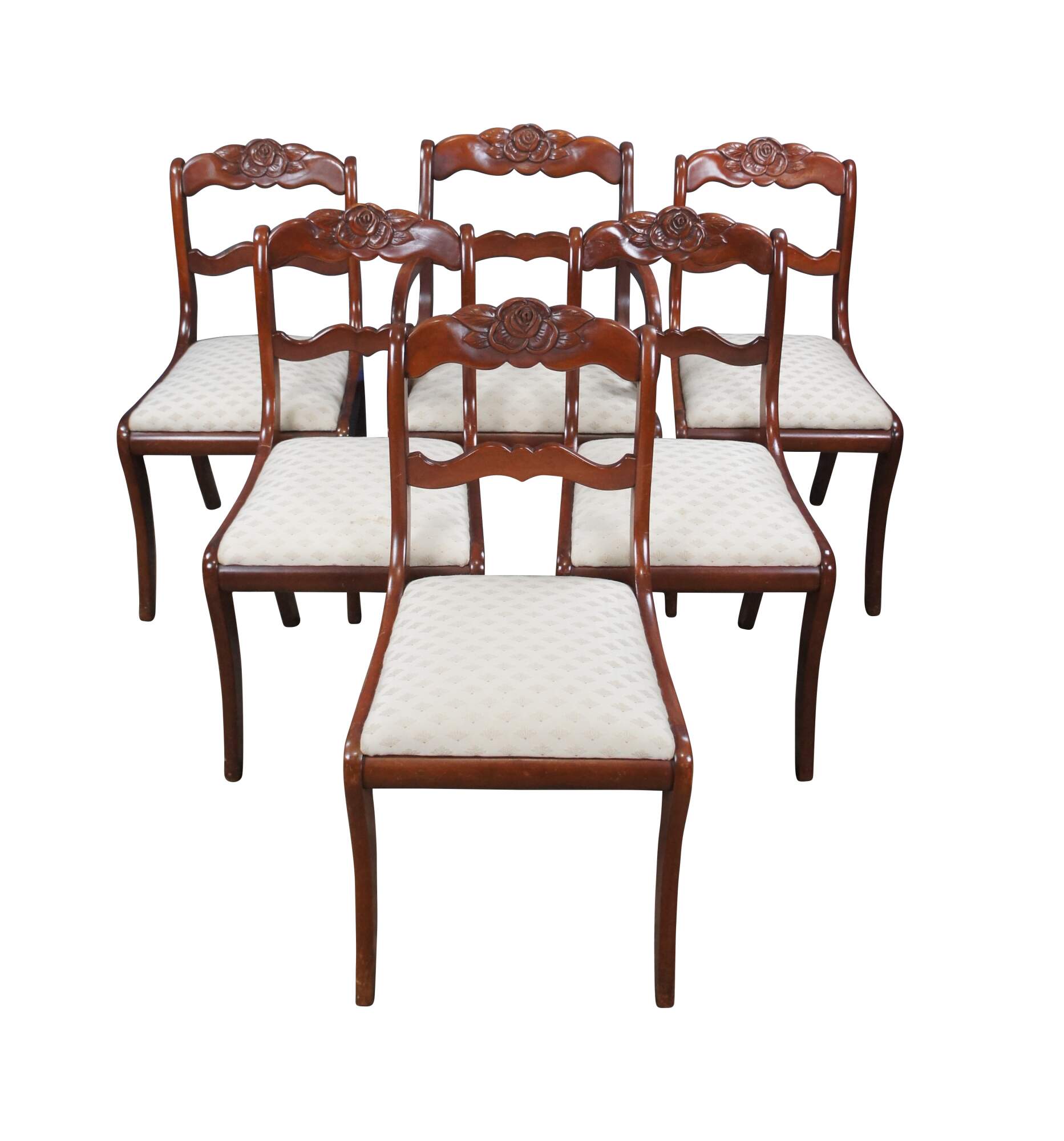 6 Willett Duncan Phyfe Wildwood Cherry Rose Medallion Dining Chairs