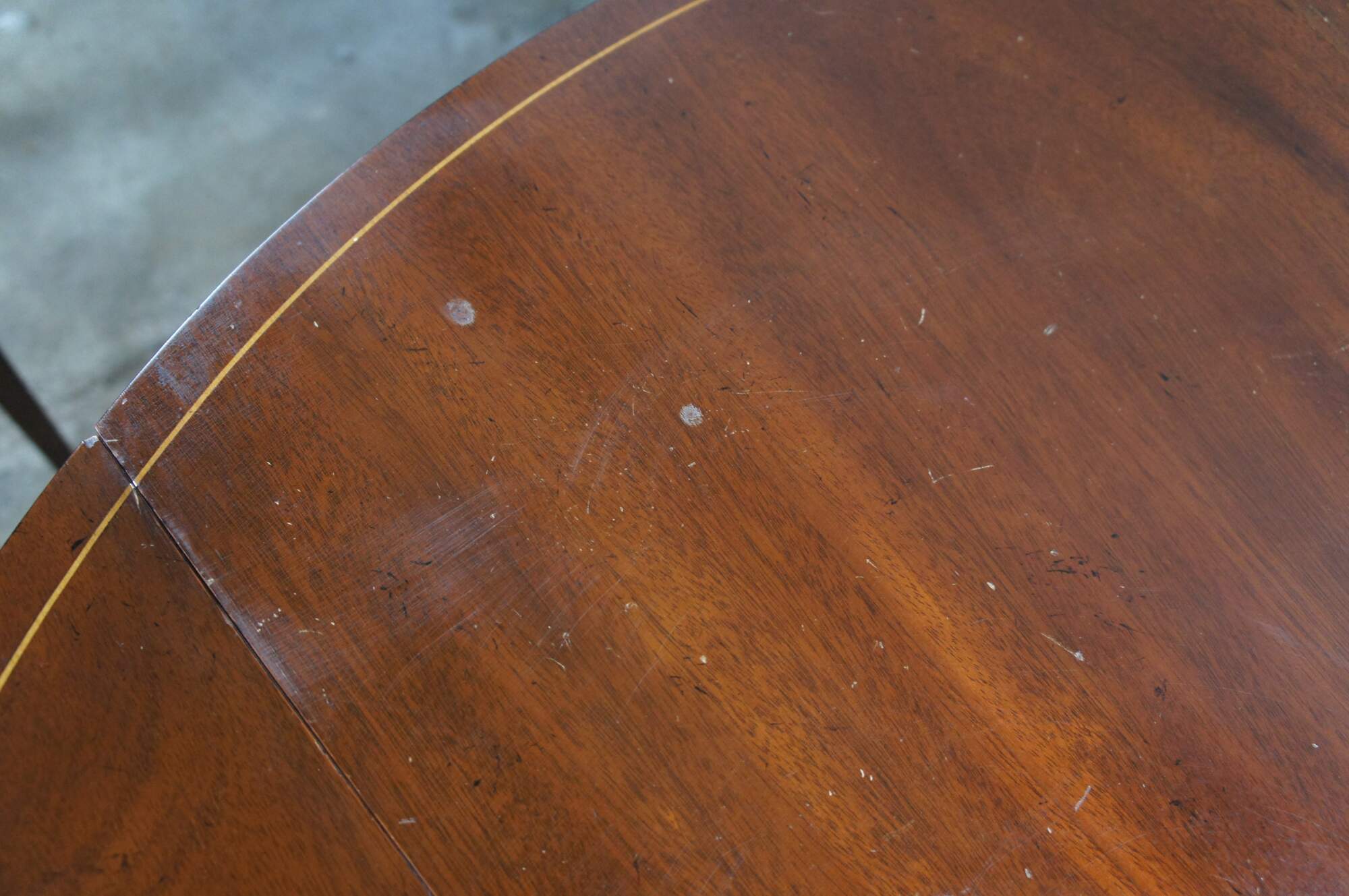 Structurally solid, wear and distressing, marking / scuffing / finish loss, hazing spots to surface.