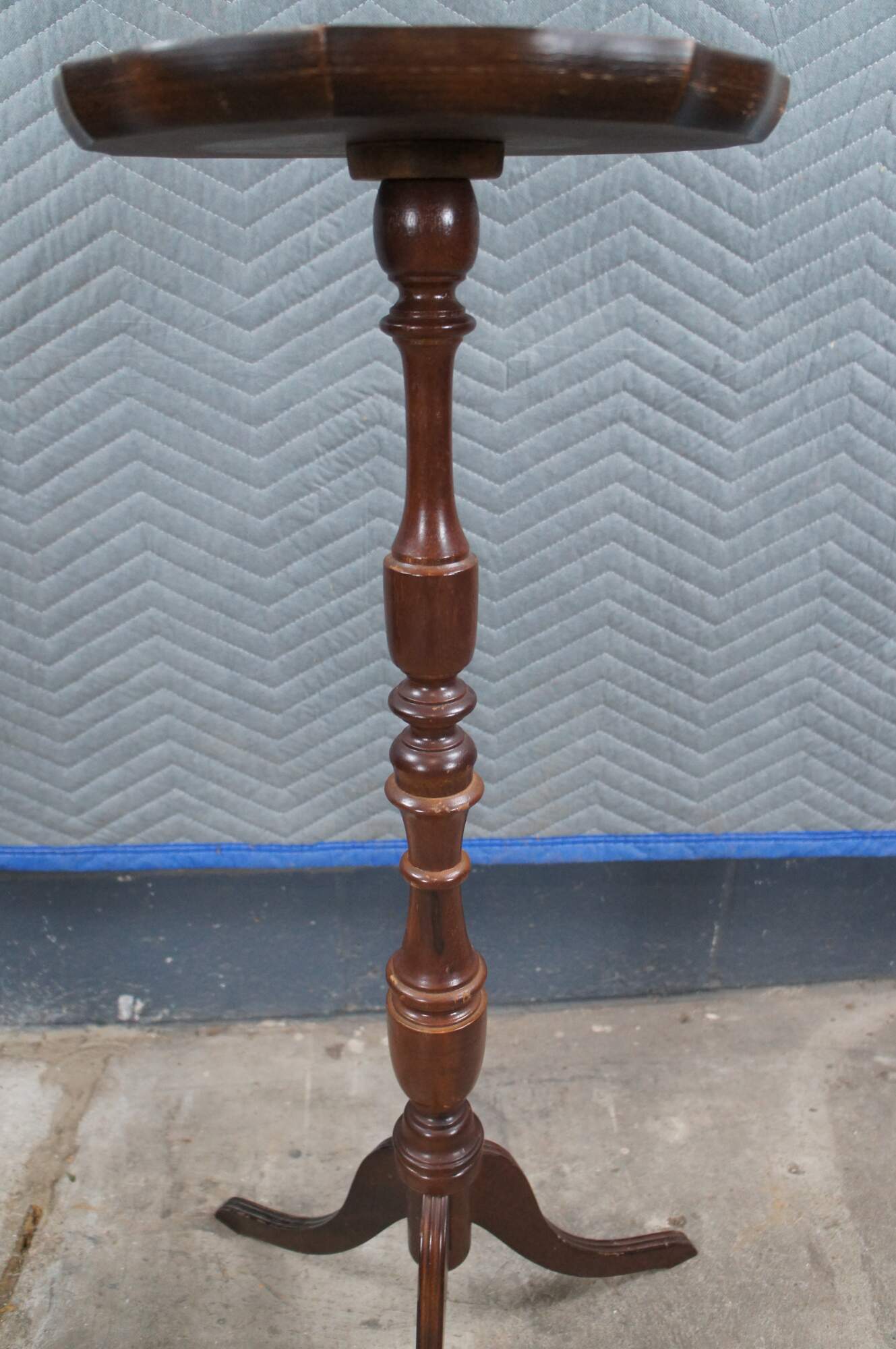 Vintage mahogany plant or candle stand / pedestal featuring Duncan Phyfe and Georgian styling.