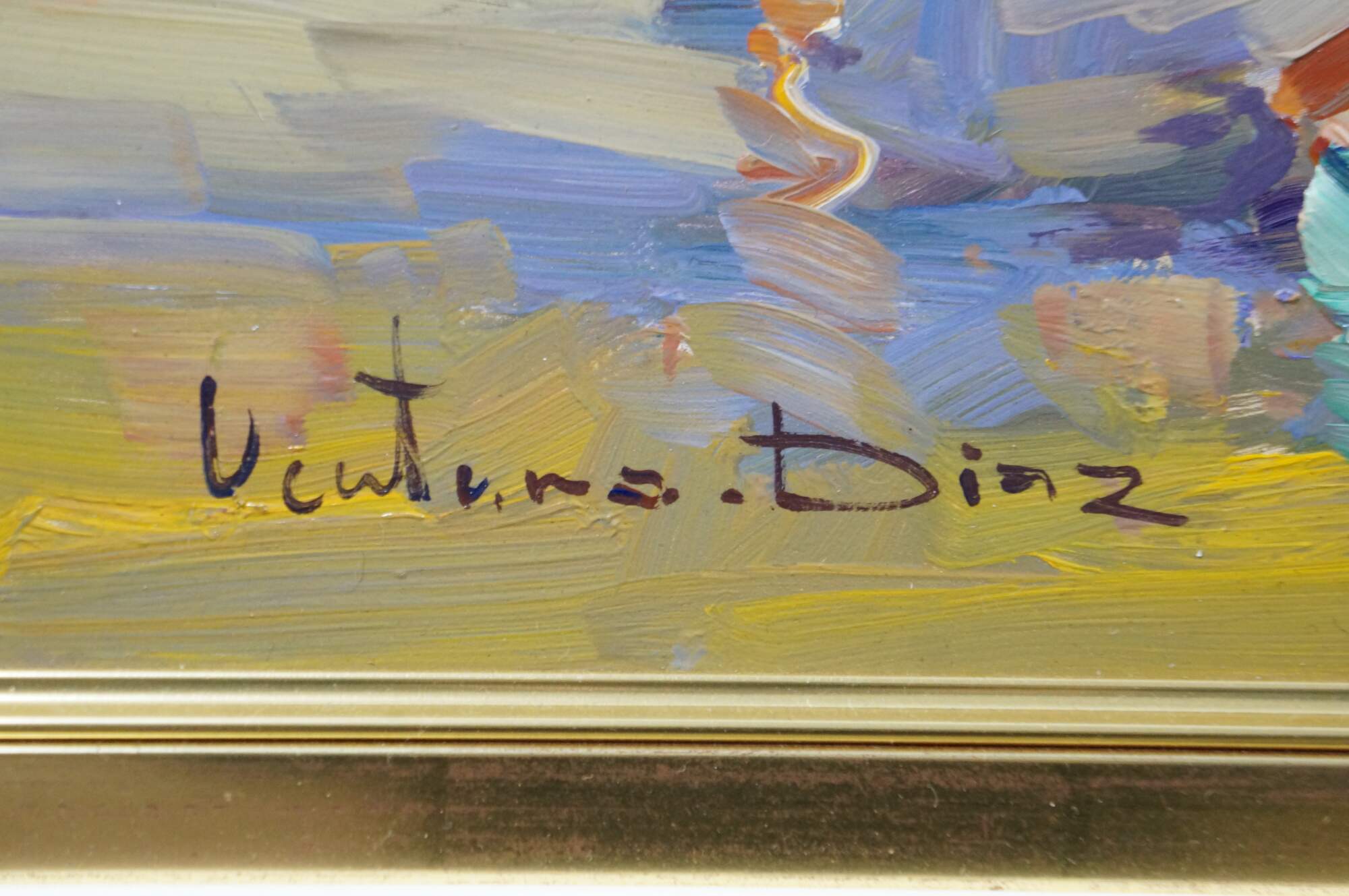 "Born in Alcoy, Alicante, Spain in 1948, Ventura Diaz Studied at the Fine Arts School I Valencia where he achieved brilliant results. His unique impressionistic style of landscapes and seascapes are softly portrayed with realism. For his subjects, Diaz usually travels to find inspiration in nature’s landscape. He prefers to paint in a relaxed style, impressionistically portraying the life of his native Spaniards. Although Diaz has the training and the ability to paint a more complex and pretentious painting, he states that he is full of human virtue and does not want to create paintings that have a calculated attitude." (Source: Thornwood Gallery)