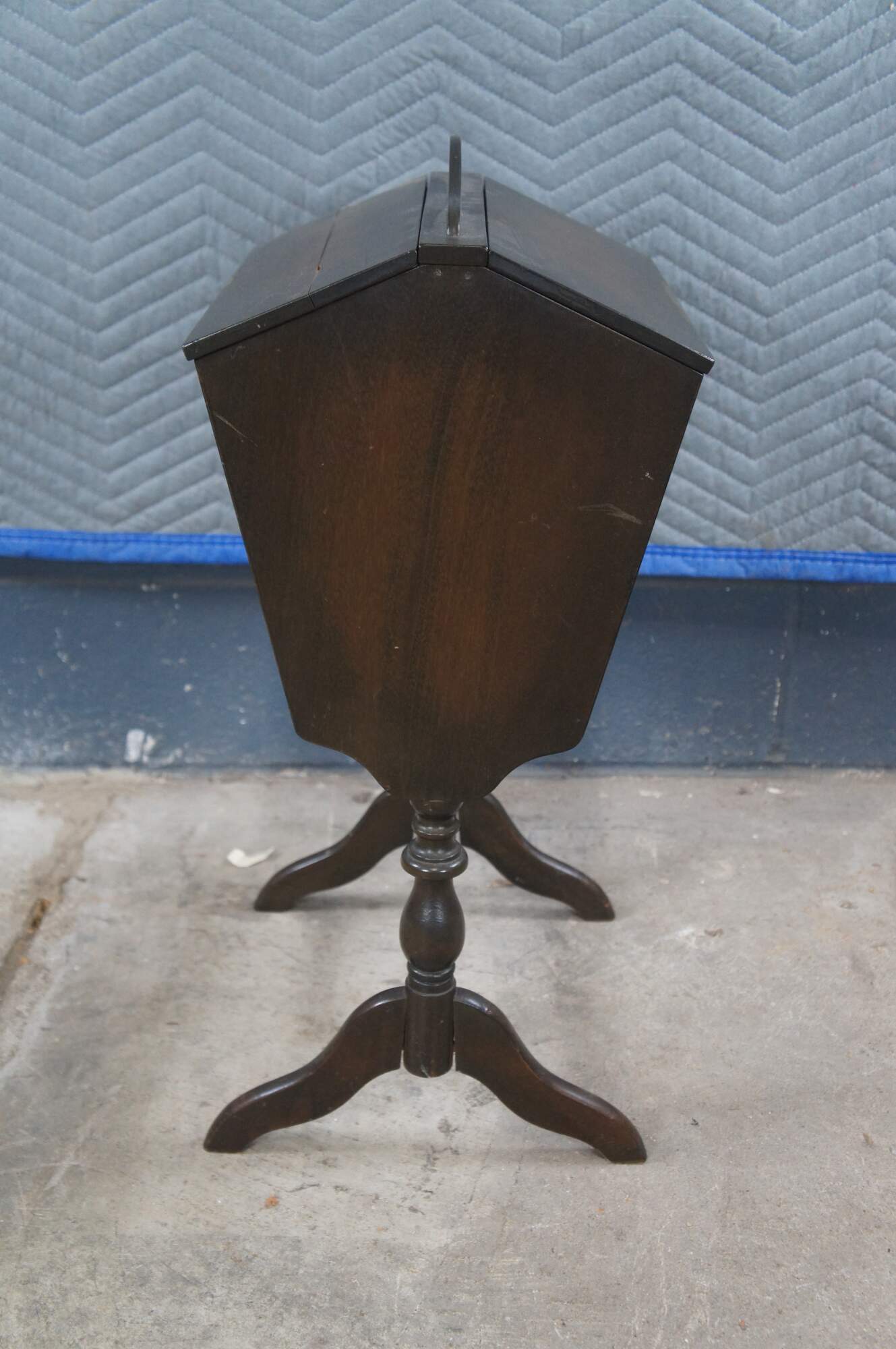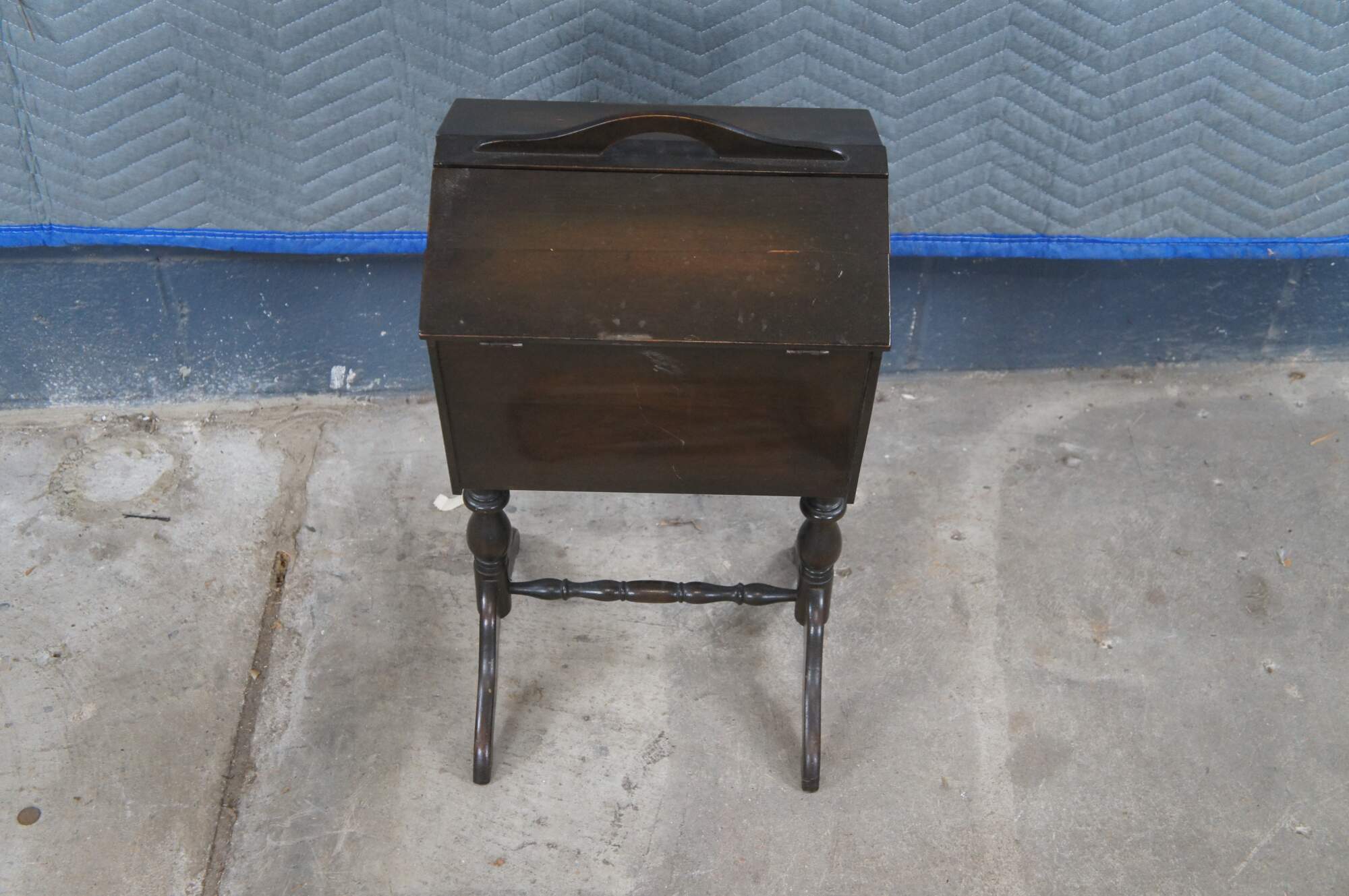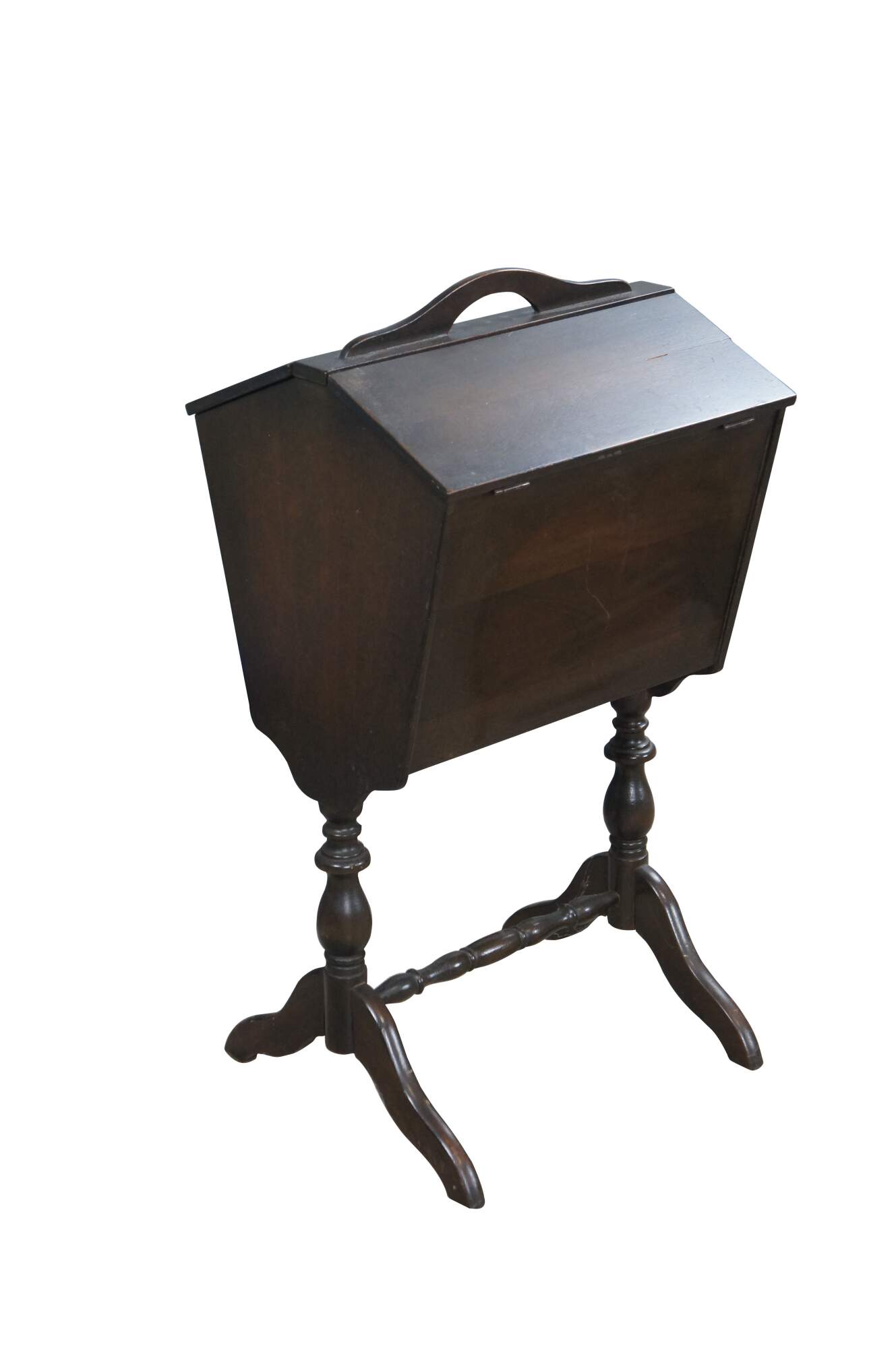 Antique Early American style sewing box / basket / cabinet on stand