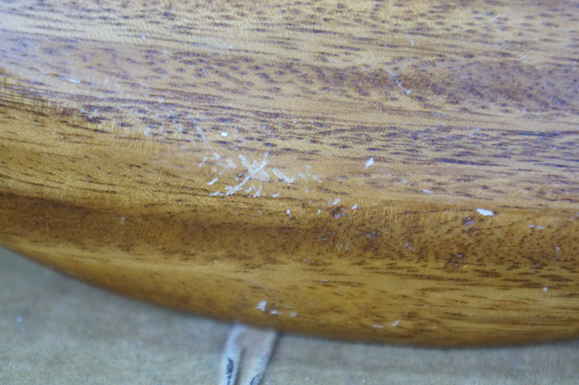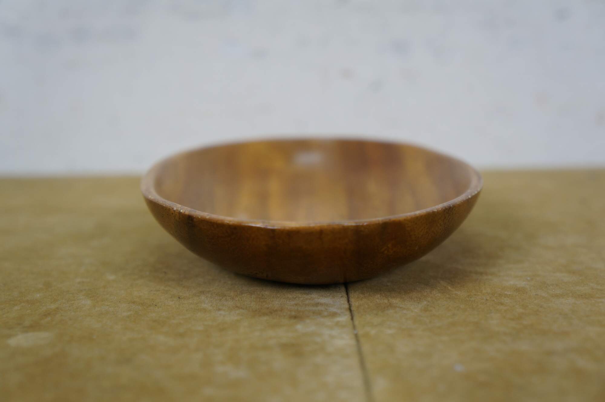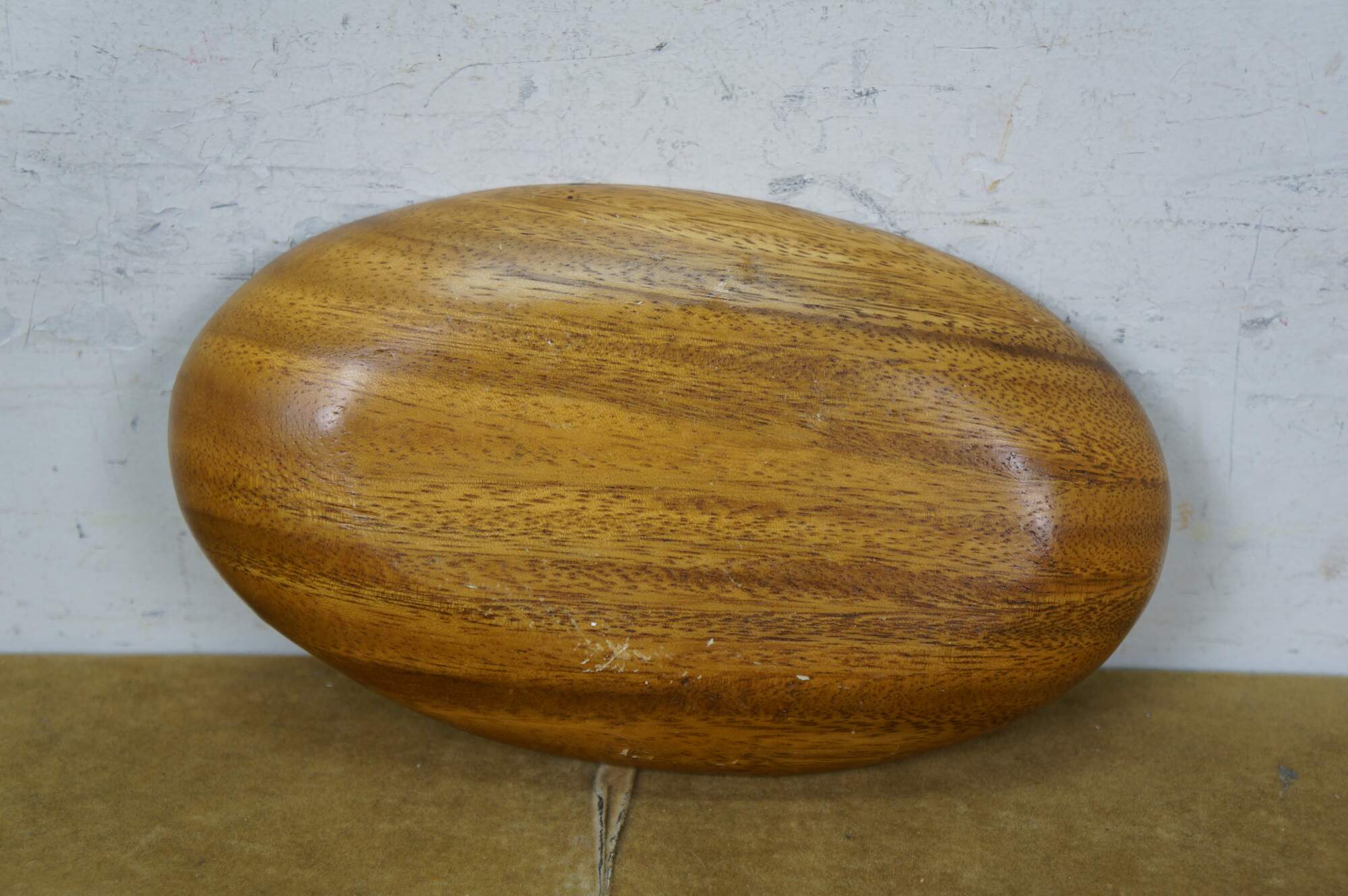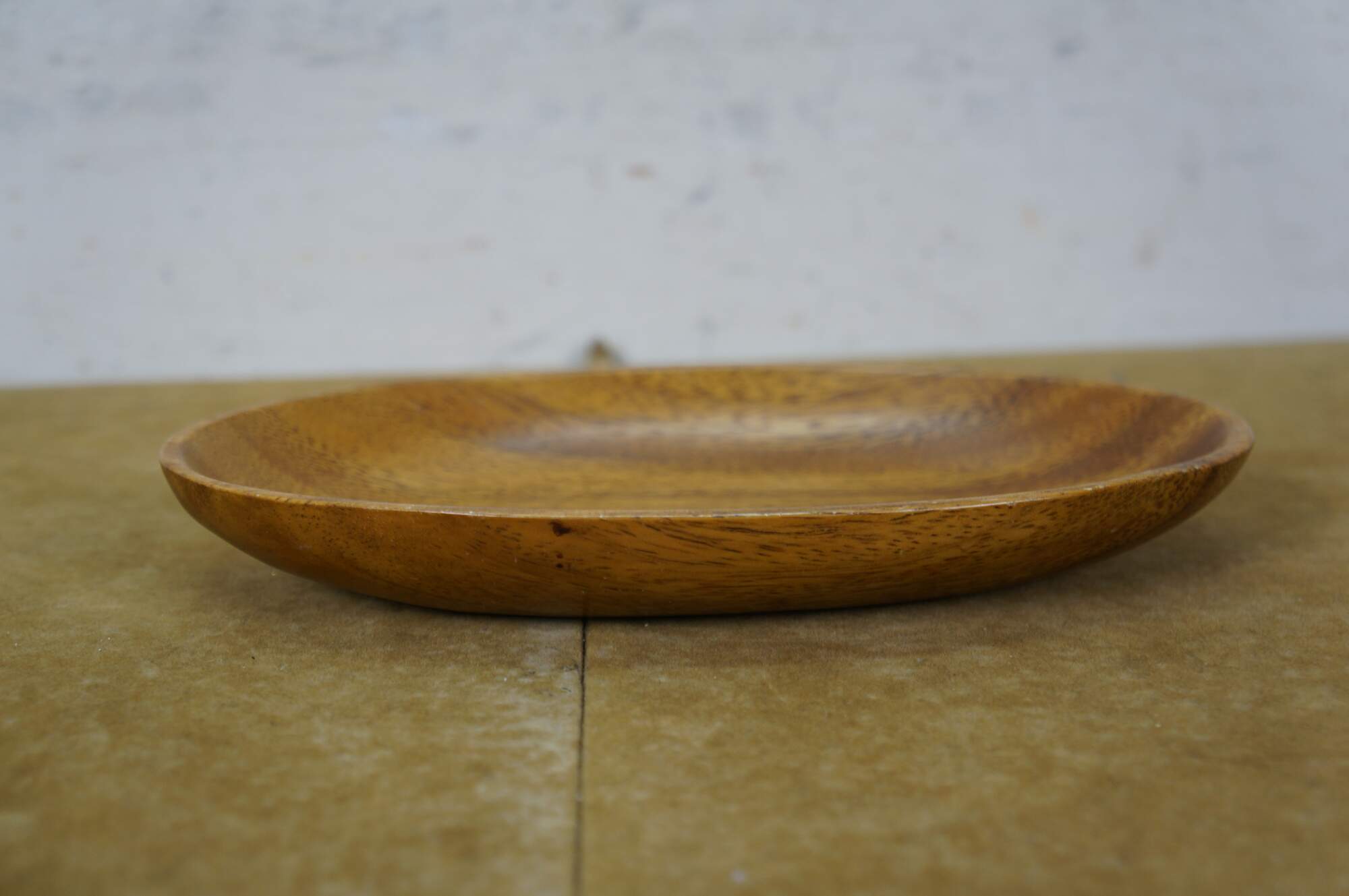 Set of six acacia wood oval salad / fruit plates / snack trays. Un-branded.