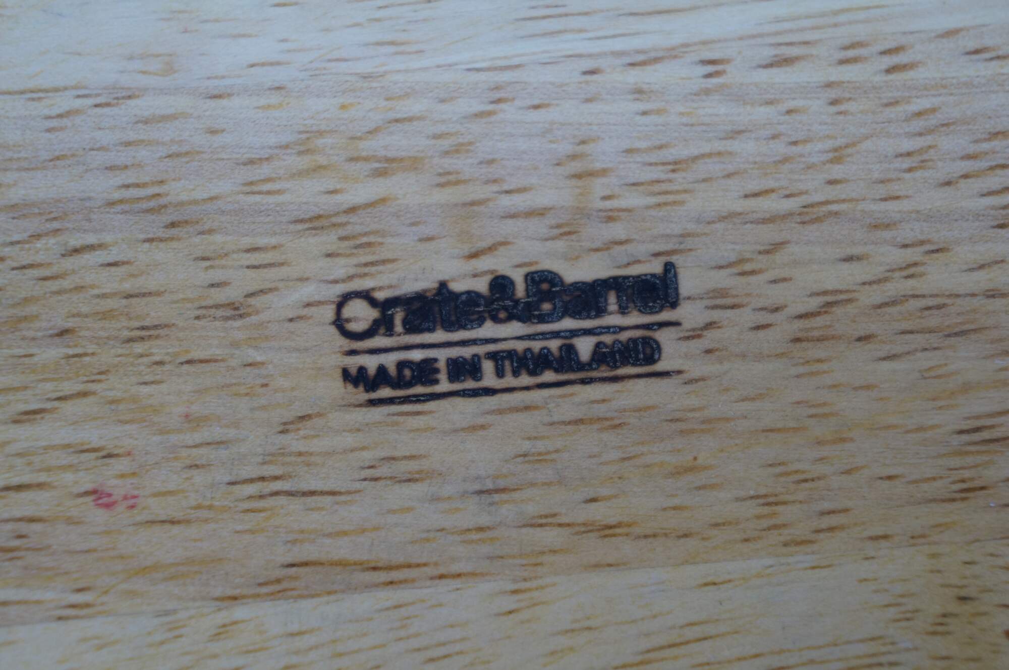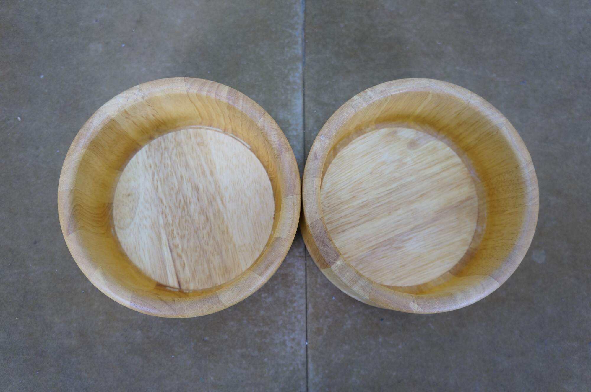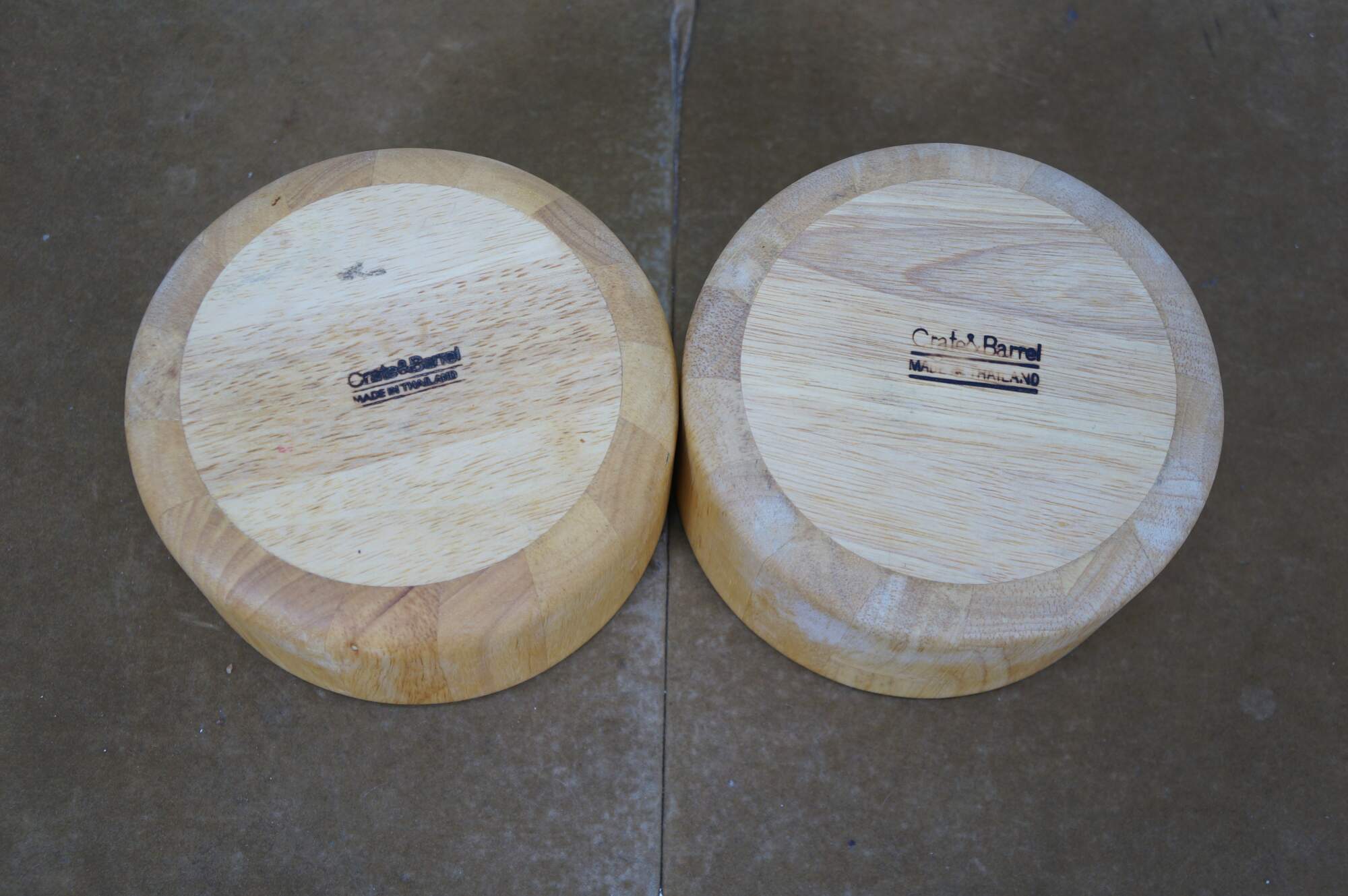 Pair of Crate & Barrel round, straight sided wooden salad bowls. Made in Thailand.