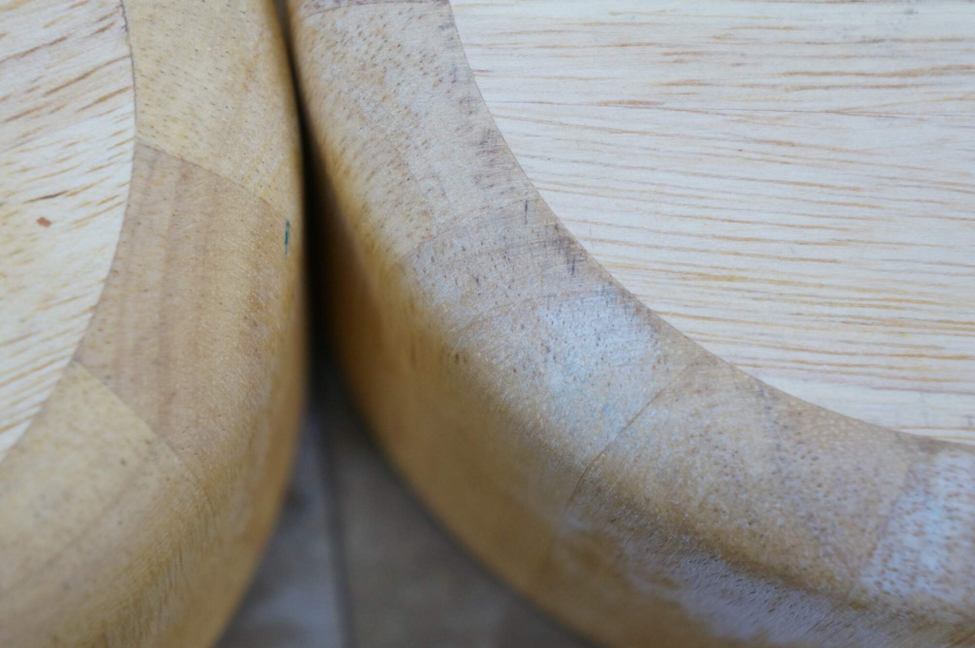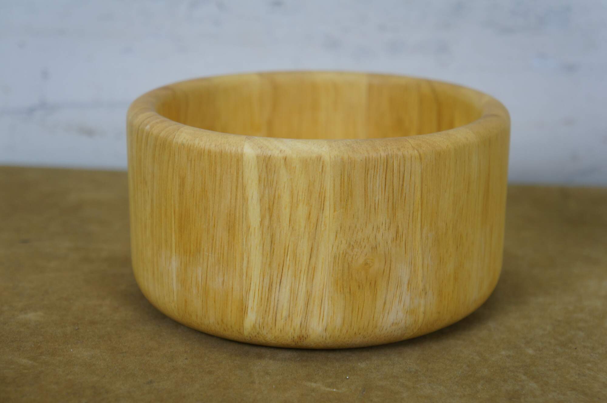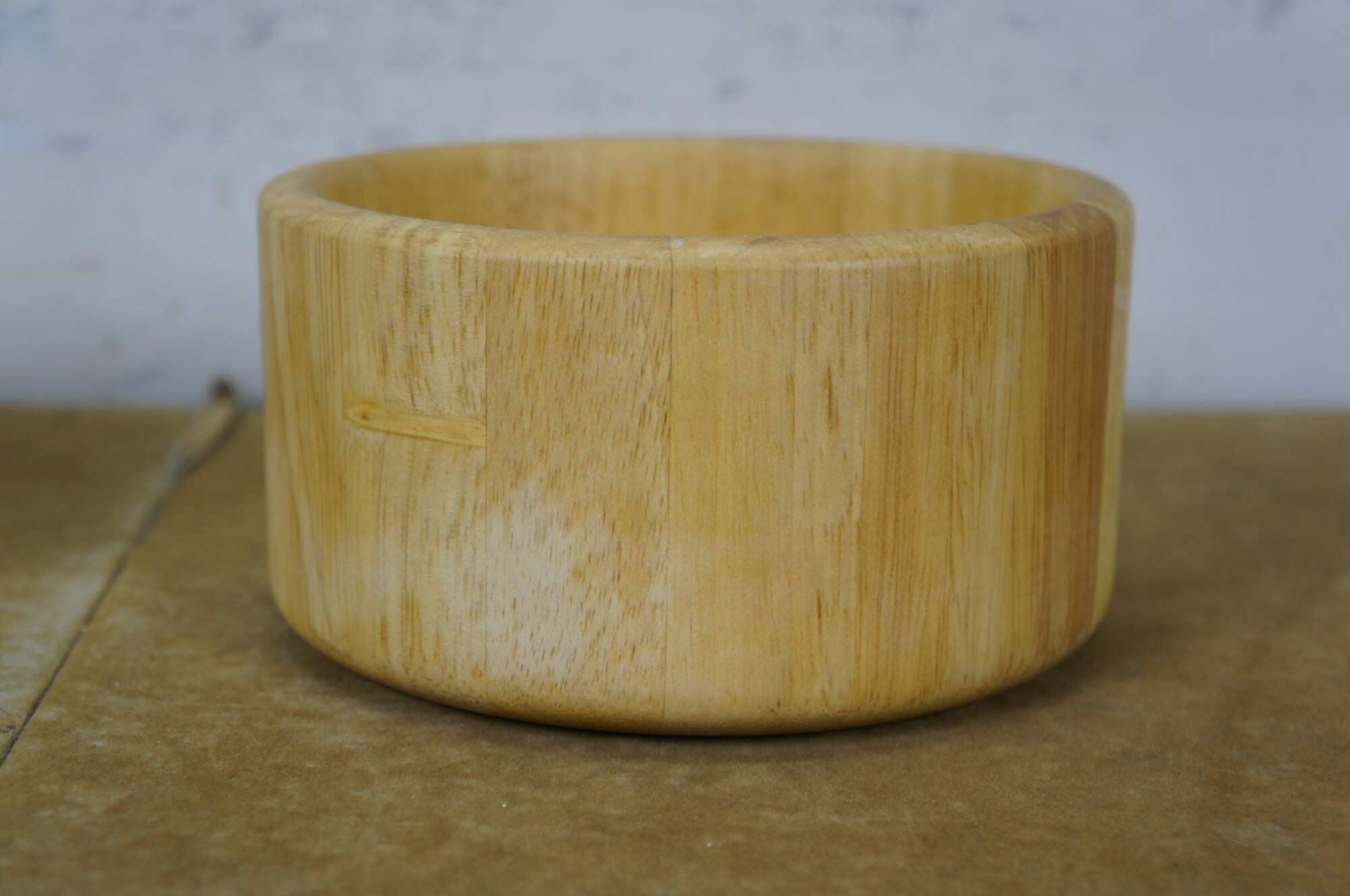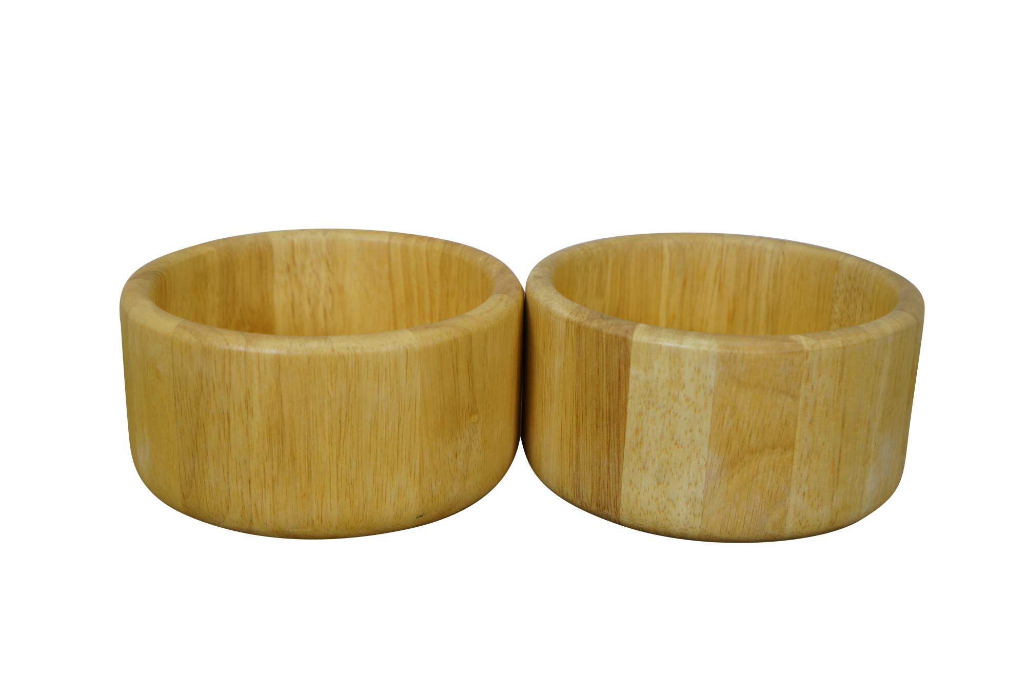 Pair of Crate & Barrel round, straight sided wooden salad bowls. Made in Thailand.