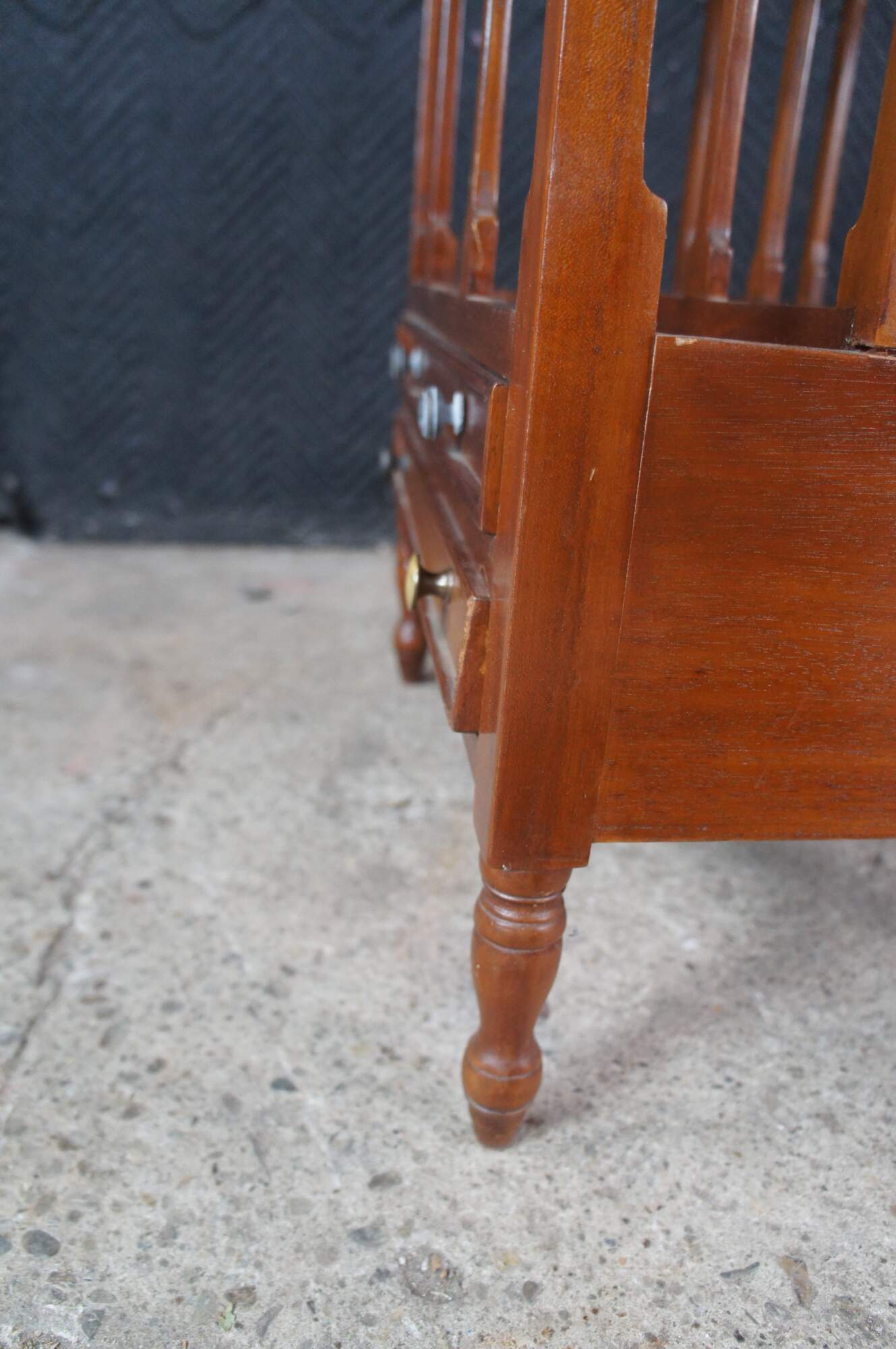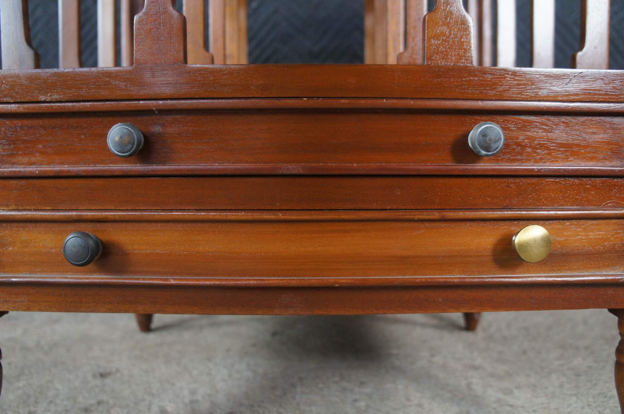 Good Overall; Some marking from use. Missmatched hardware. Corrosion to top two drawer pulls. Lower drawer does not sit perfectly even.