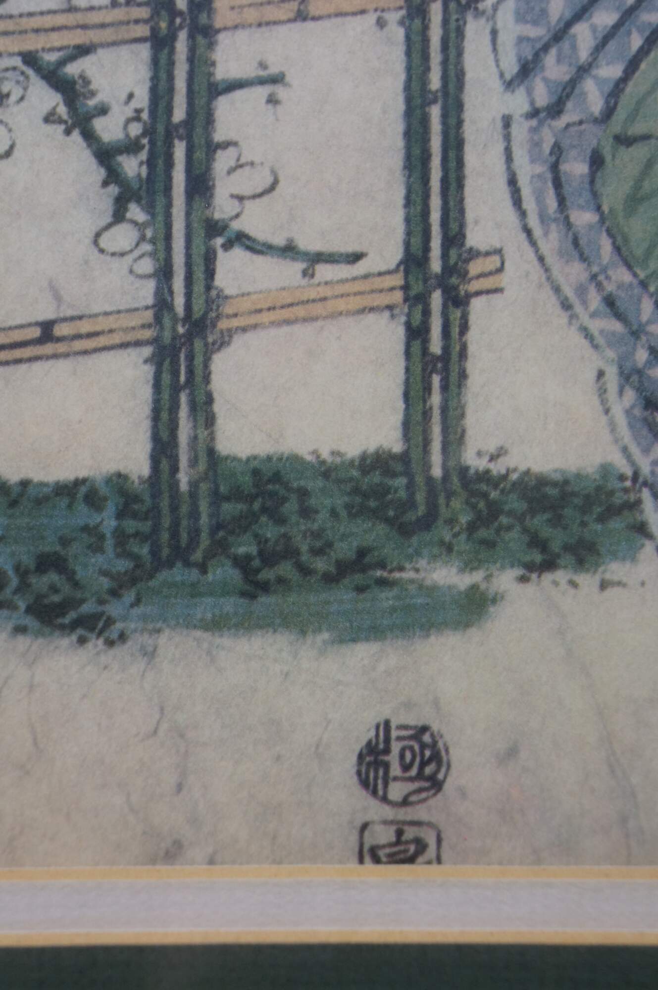 "Kikukawa Eizan (1787 – July 17, 1867) was a designer of ukiyo-e style Japanese woodblock prints. He first studied with his father, Eiji, a minor painter of the Kanō school, and subsequently with Suzuki Nanrei (1775–1844), of the Shijō school. He is believed to have also studied with ukiyo-e artist Totoya Hokkei (1790–1850). He produced numerous woodblock prints of beautiful women (bijin-ga) in the 1830s, but then abandoned printmaking in favor of painting." (Wikipedia)