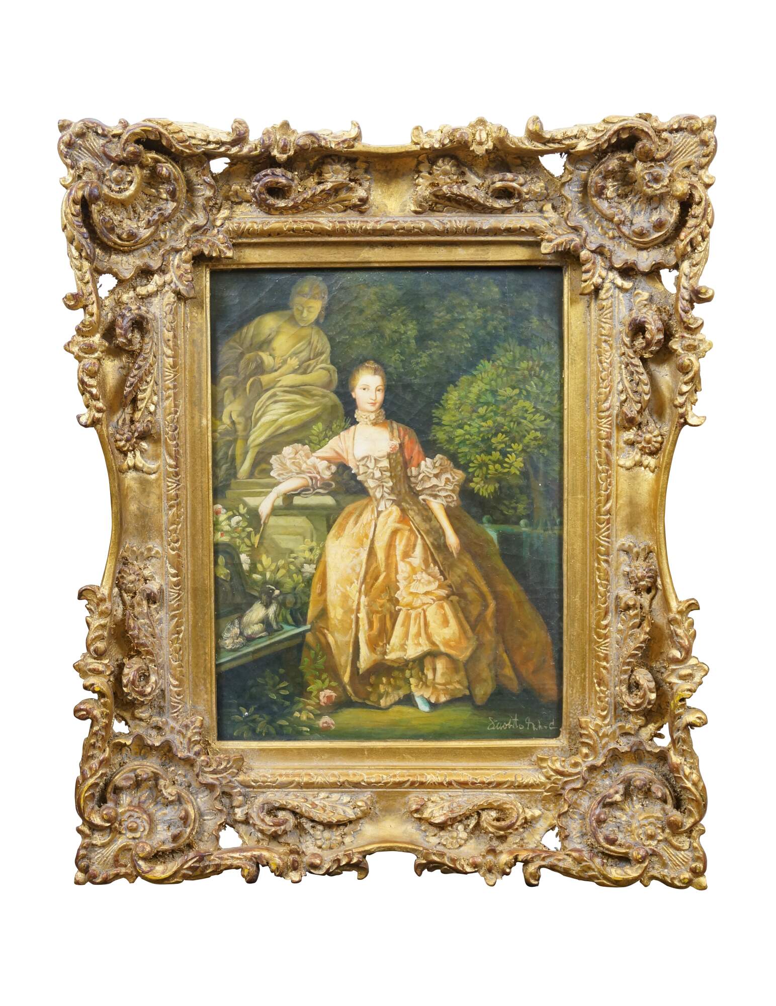 It celebrates her friendship with Louis, offering an exquisite depiction of a beautiful, fashionably dressed woman.