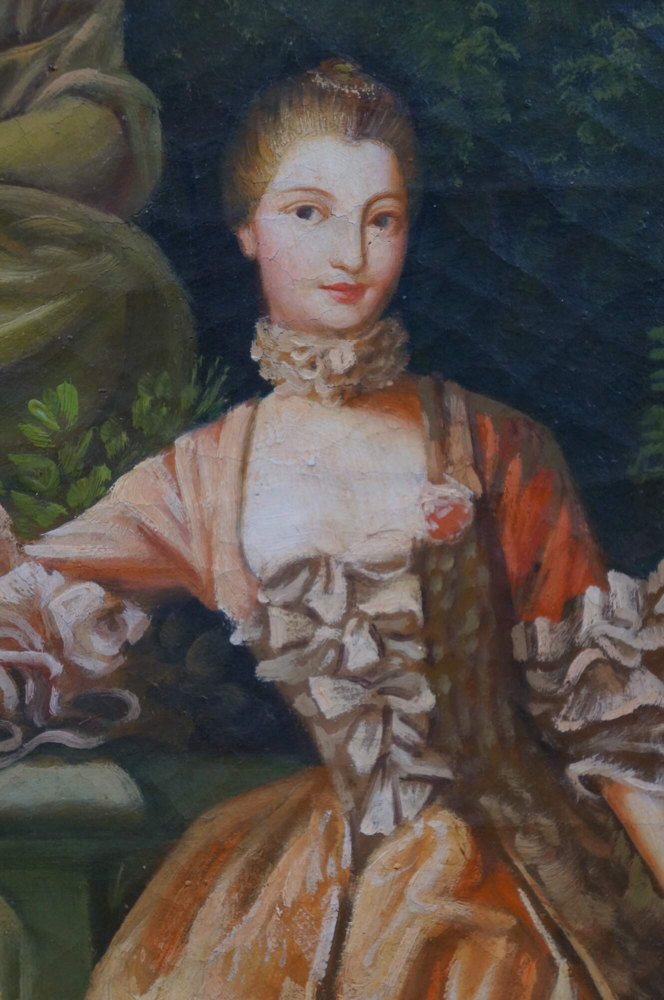 The portrait’s setting evokes the shared love of gardening between Madame de Pompadour and the King, recalling the park at Bellevue, her most splendid country estate.