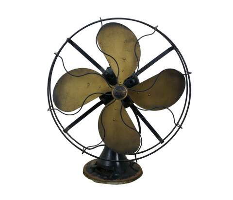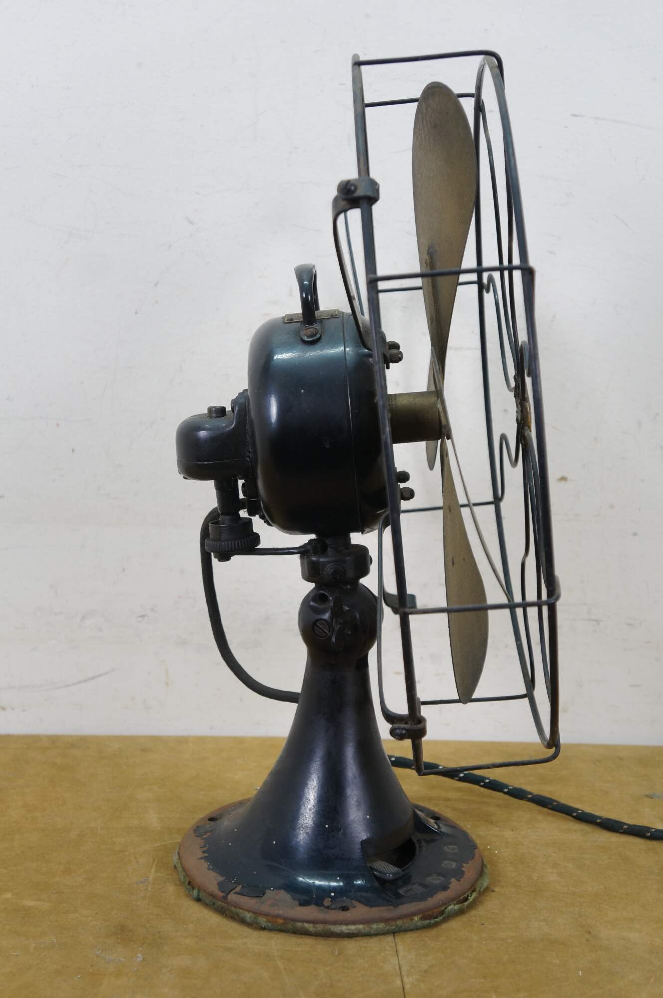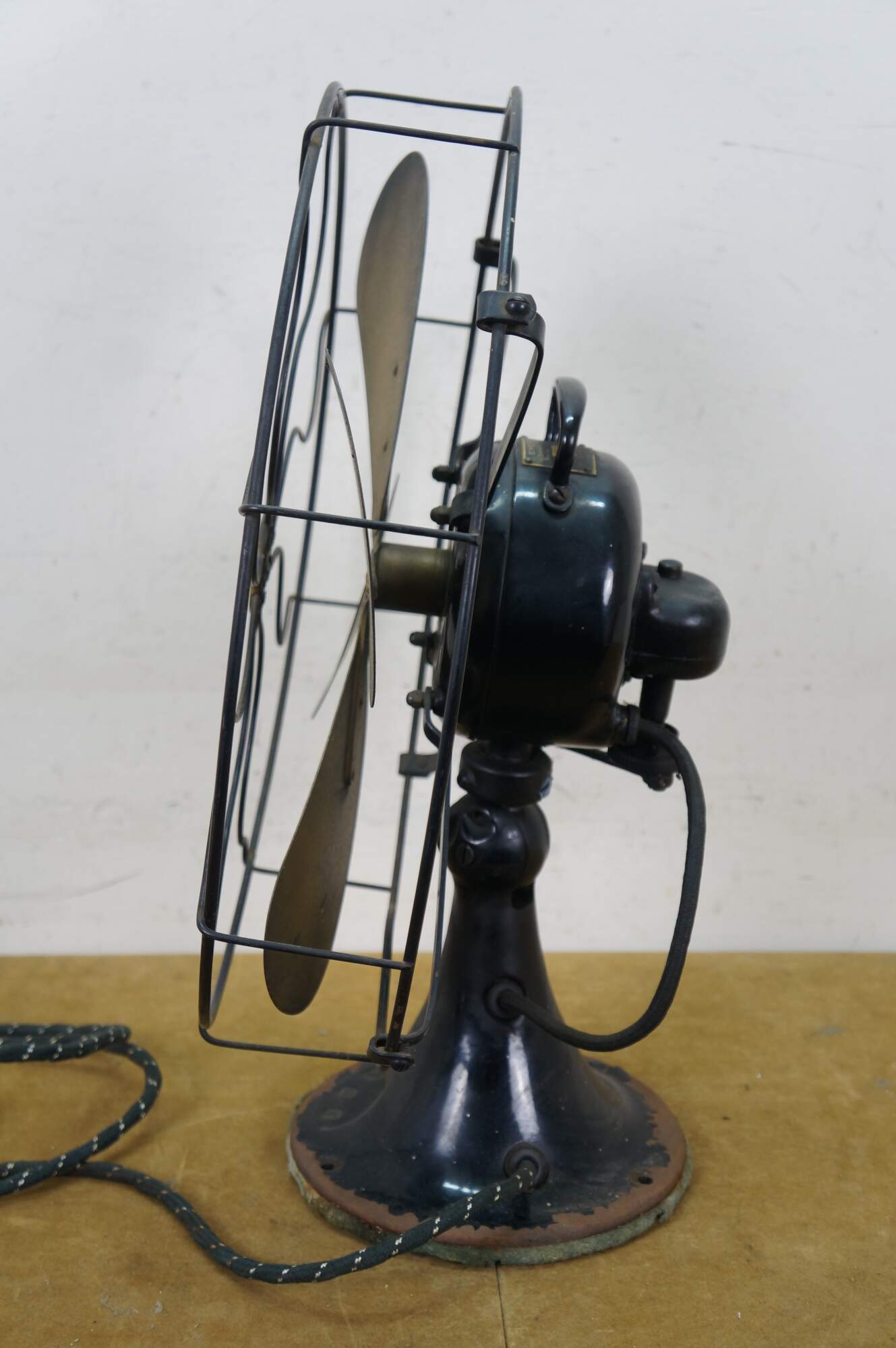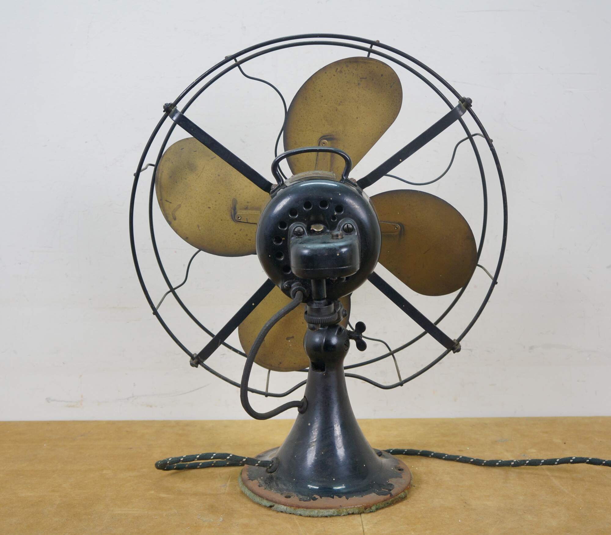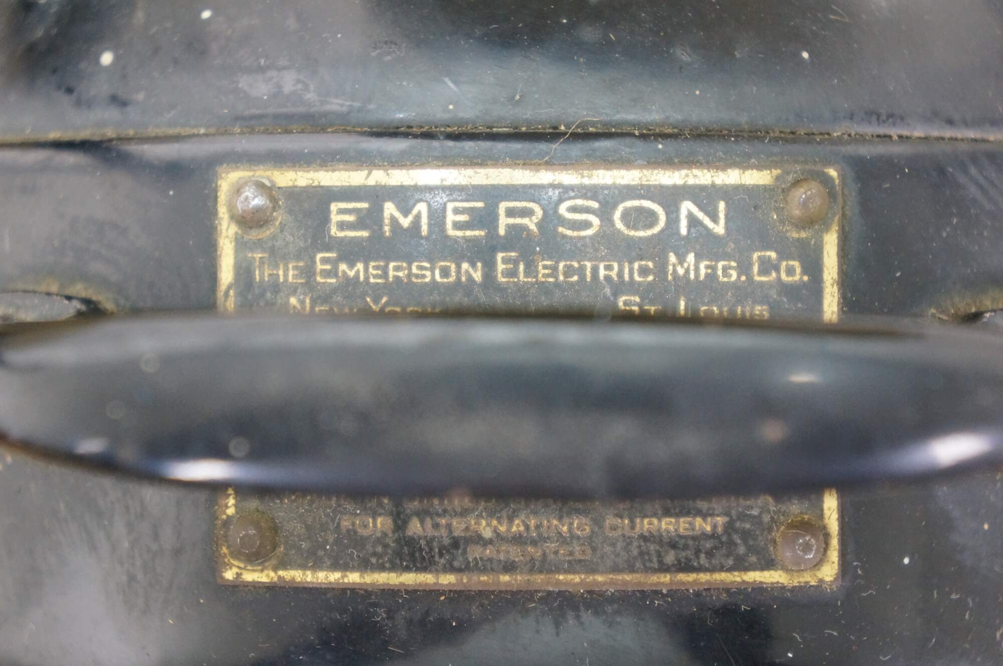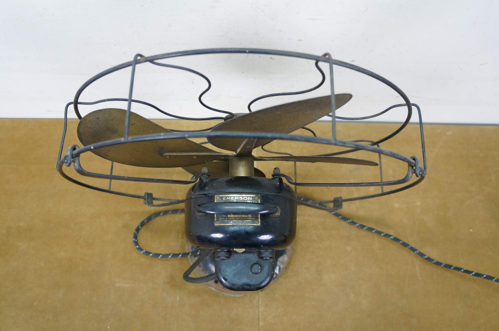 Circa 1920's Emerson 16 inch three speed desk fan with black enameled body and brass fan blades. The Emerson Electric Mfg Co - New York / St Louis - Volts 110 - Type 29648 - Cycles 60 - Speed xxx - No T56574 - Made in the United States of America for Alternating Current.