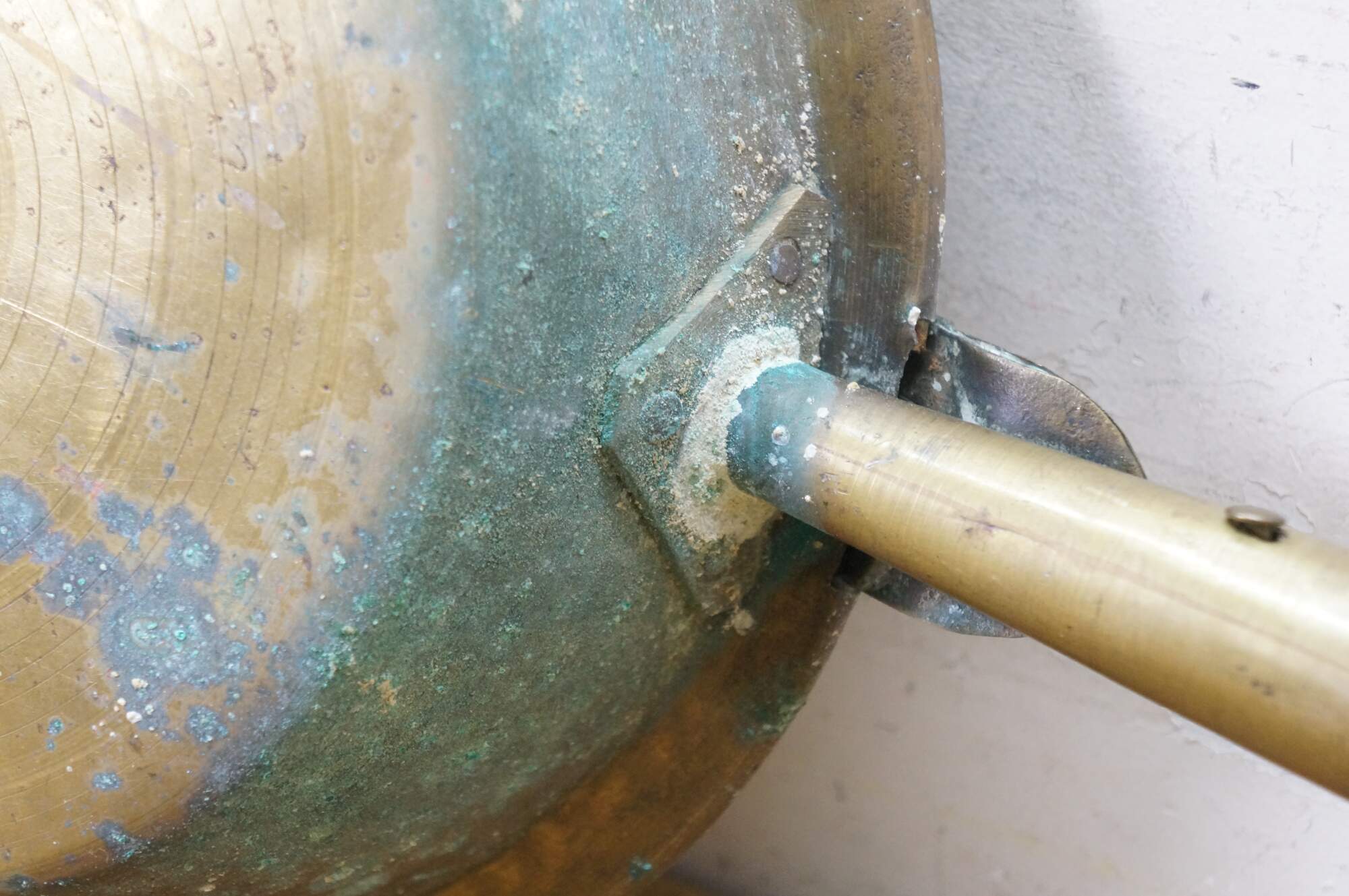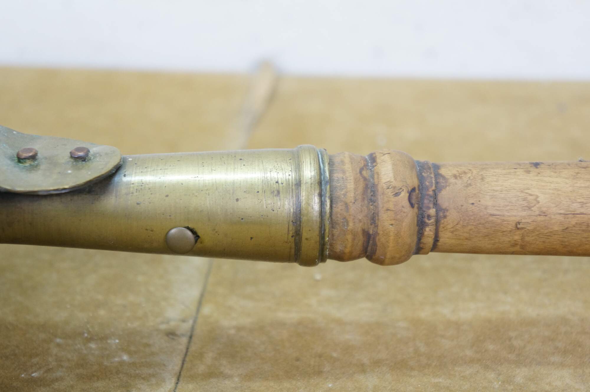 Antique Brass Floral Etched Bed Warmer Warming Pan Long Wood Handle 44"