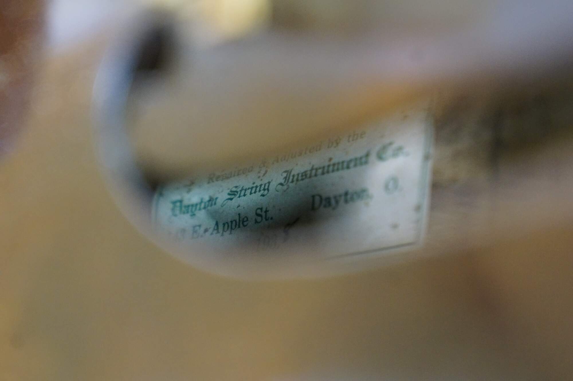 Antique Nicolaus Amatus Cremonen Hieronymi violin. Label reads: Nicolaus Amatus Cremonen Hieronymi / xxx Antonij Nepos Fecit 16xx. C.F. Albert chin rest - Pat'd Feb 23, 1875. John Juzek bridge. Repaired and Adjusted by the Dayton String Instrument Co, Dayton, Ohio, 1938. Includes one bow and hard sided case; no key. Made of maple.