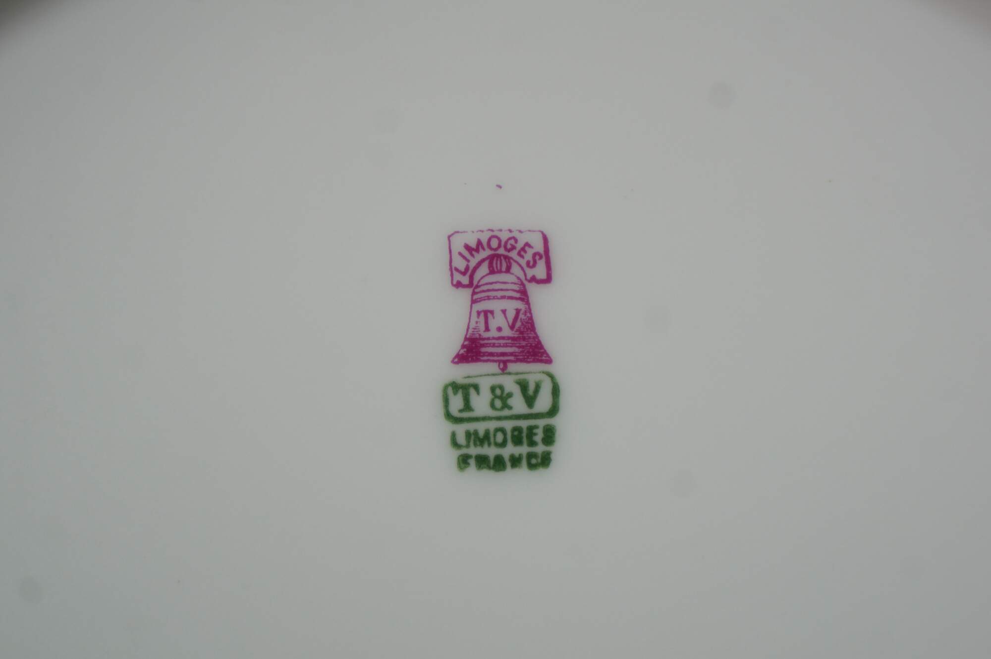 "Tressemanes & Vogt - Montjovis district, Limoges, Limousin, France - Hersteller / Manufacturer - John Vogt (1815-1906) was born in Germany to a family of porcelain and glass retailers. In 1840 he opened an import house in New York, then in the 1850's an office in Limoges where he began decorating porcelain for export. His first son Charles Vogt (d1886) and his nephew Frederic Dose (d1908) joined the New York company in 1865 and traded as Vogt & Dose, which also had a decorating studio in New York. Dose took over in 1886 then was succeeded by John Vogt's second son, Gustave, whose son Charly in turn managed the New York operations. This closed in 1931. Meanwhile, Gustave Vogt (1849-1937), had already taken over the Limoges branch by 1870 and became partners with Emilien Tressemanes in the early 1880's. In 1891 they purchased two small porcelain factories, in the suburb of Montjovis, Limoges. As Tressemanes & Vogt, they made high quality whiteware for export to the USA; distributed no doubt, through their New York office. Tressemann retired in 1907 and Gustave Vogt became sole owner and changed the name to Porcelaine Gustave Vogt. In 1919 Martial Raynaud bought the company and continued using the T&V mark as well as his own Raynaud mark. Raynaud porcelain remains in business today." (Stein Marks)
