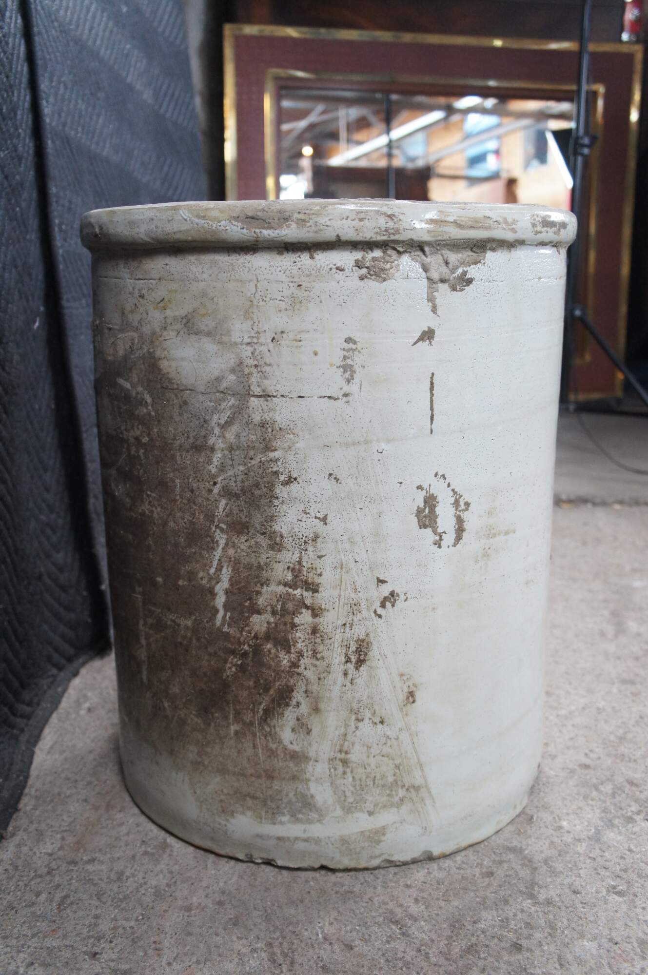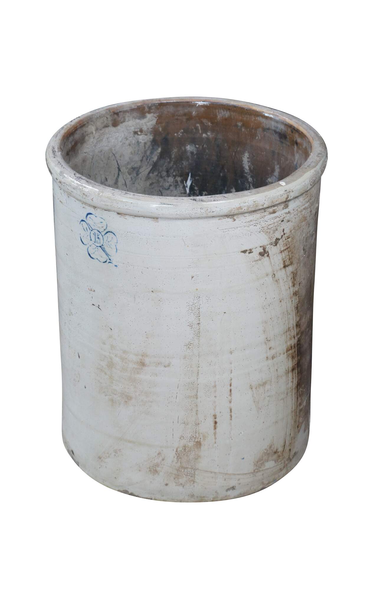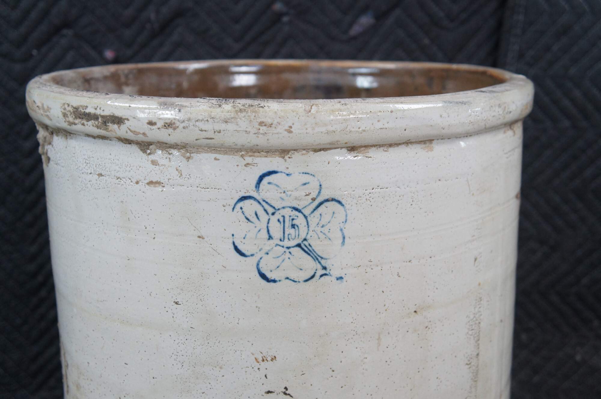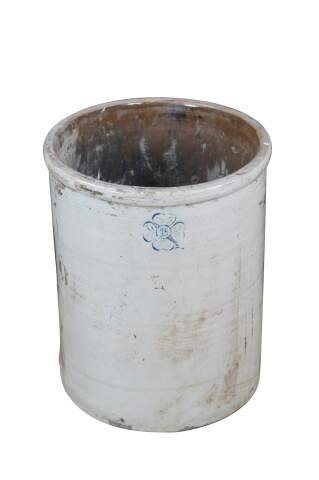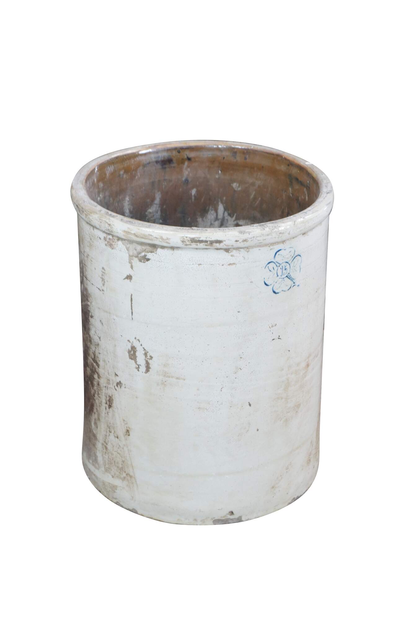 Antique Alabama Miller Pottery 15 Gallon Stoneware Crock. Features their signature clover leaf along the front.