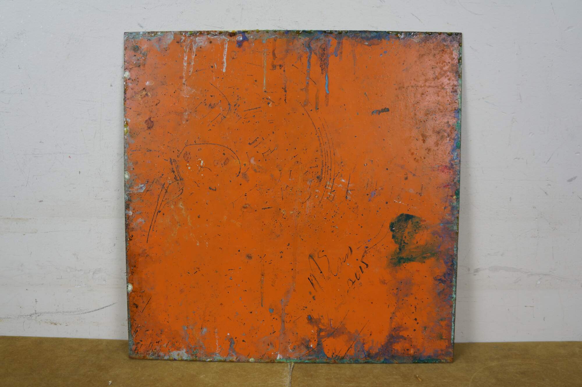 2015 Mike Elsass Abstract Modern Textured Metal Rust Art Plaque Panel 16"