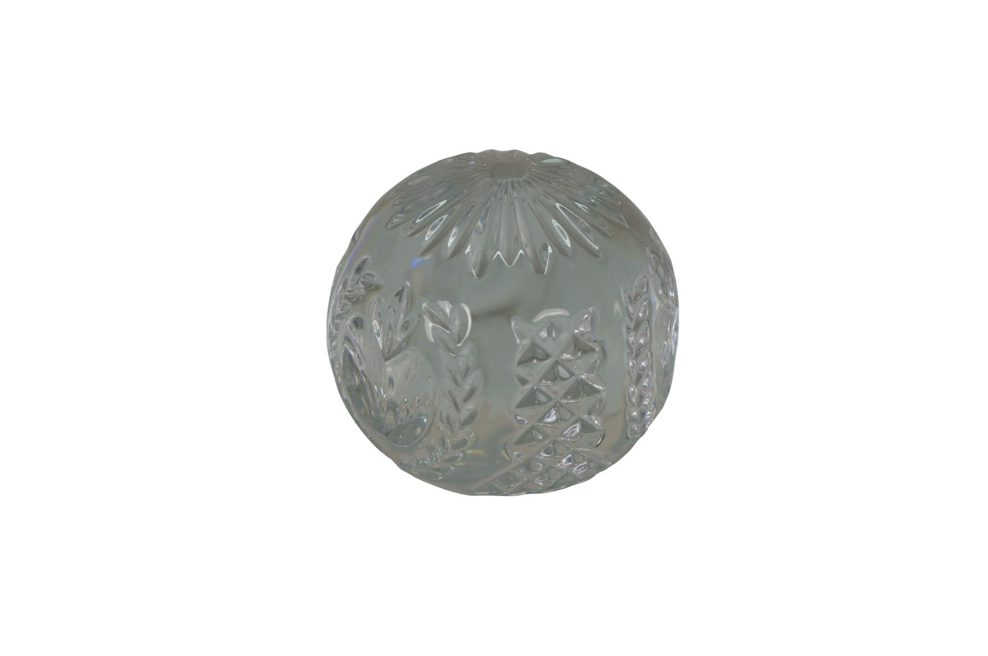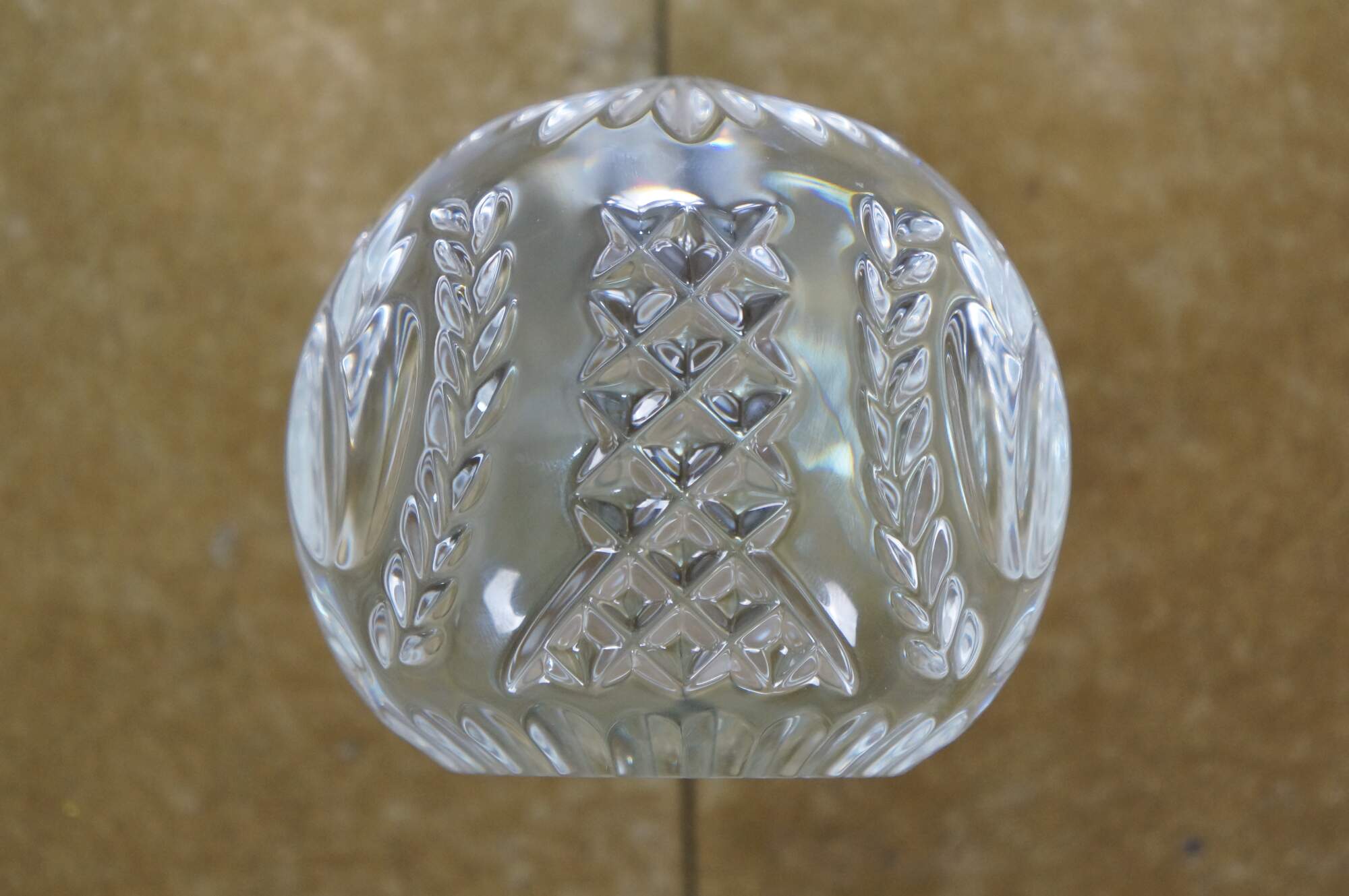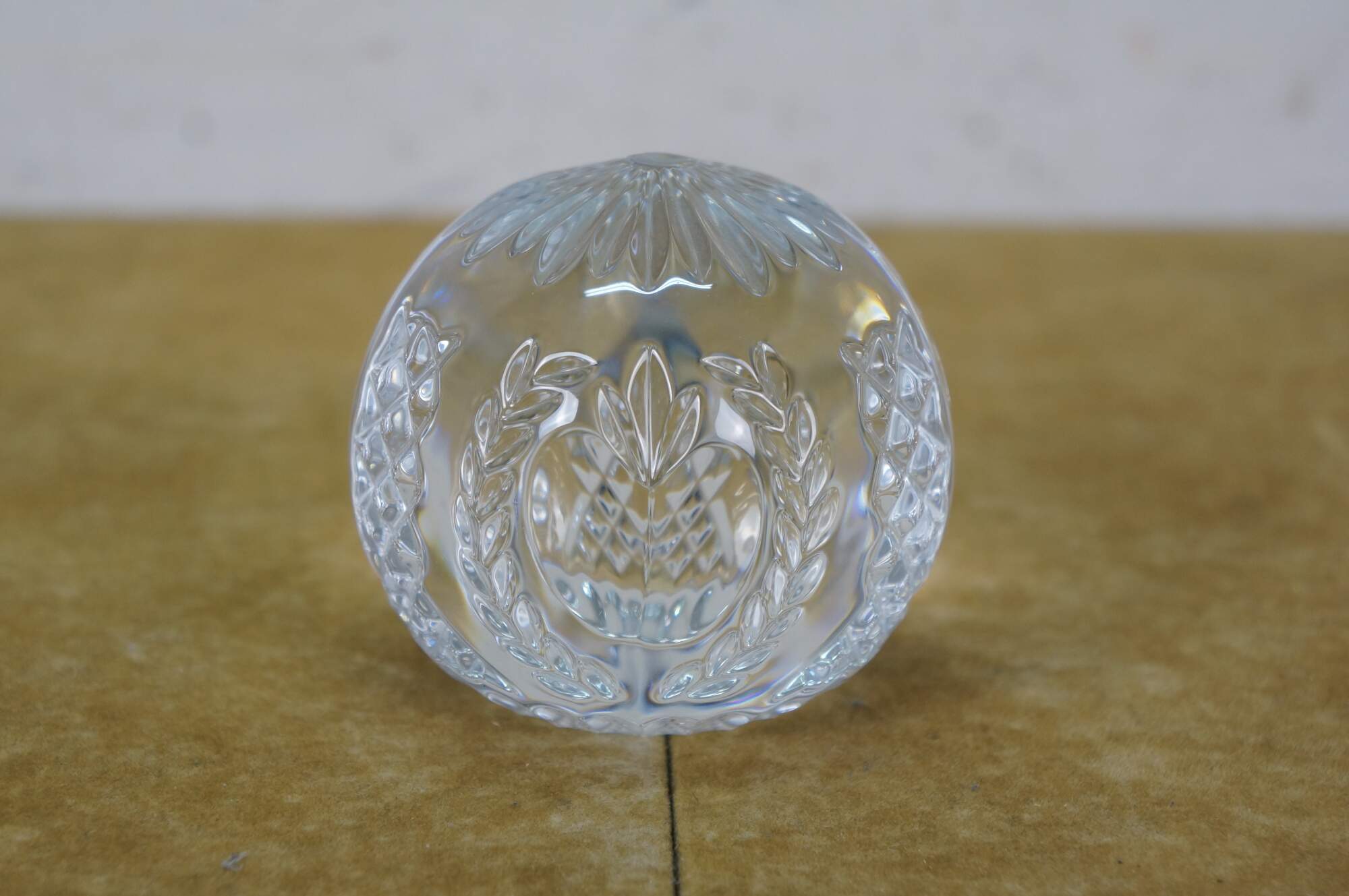Vintage Waterford clear cut crystal 2001 Times Square "Hope for Abundance" New Year's paperweight. Ball / orb shaped figurine cut with apples framed in laurel wreaths.