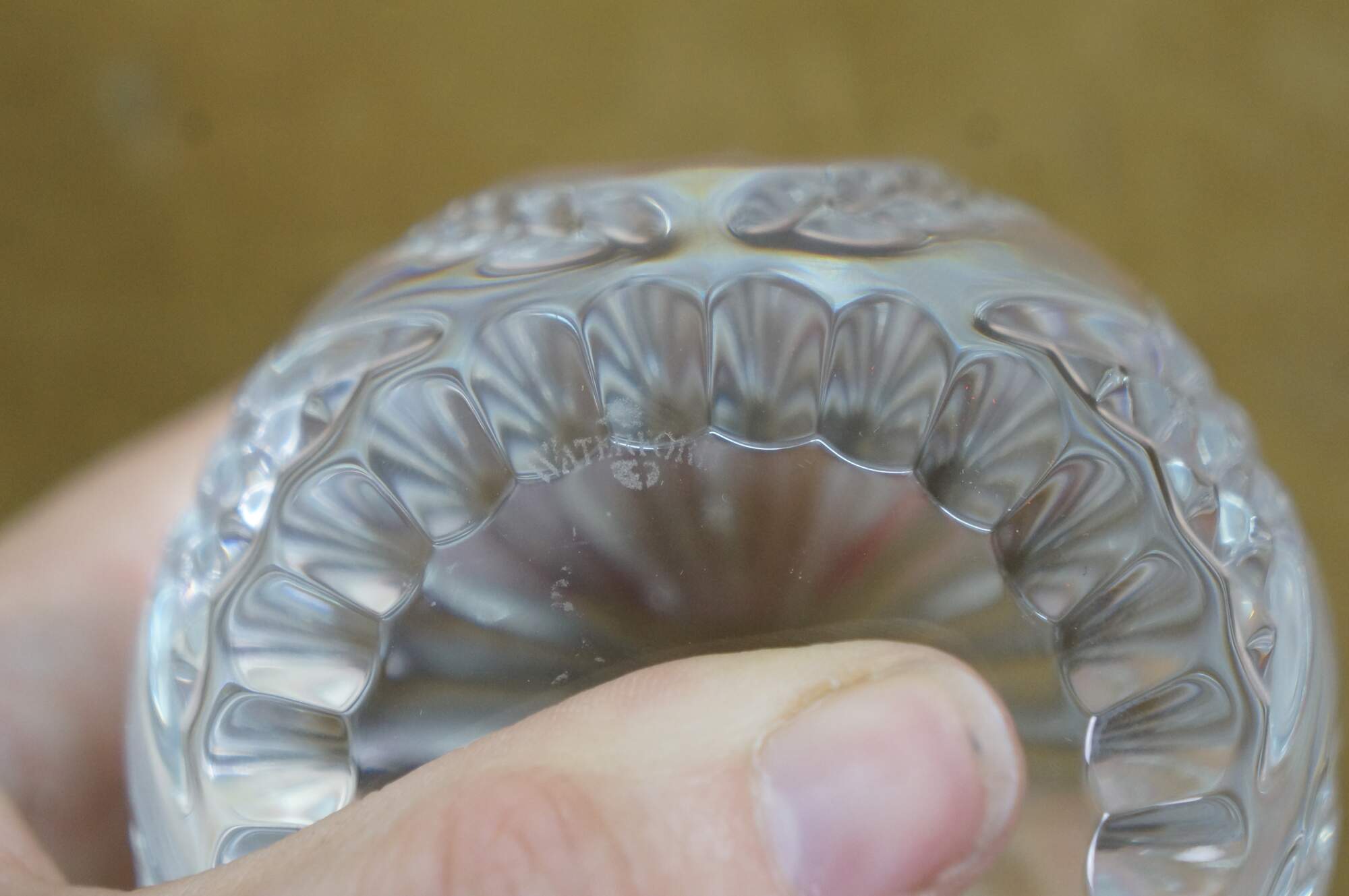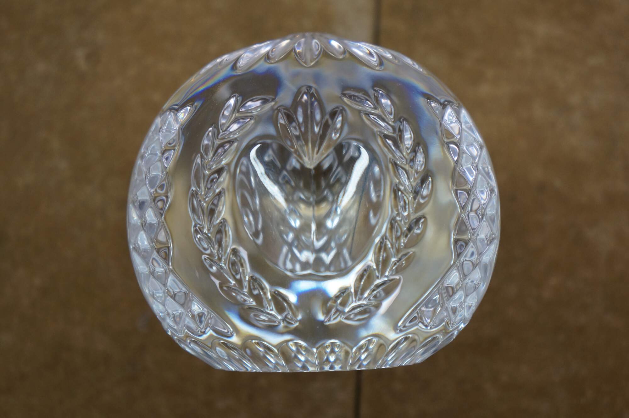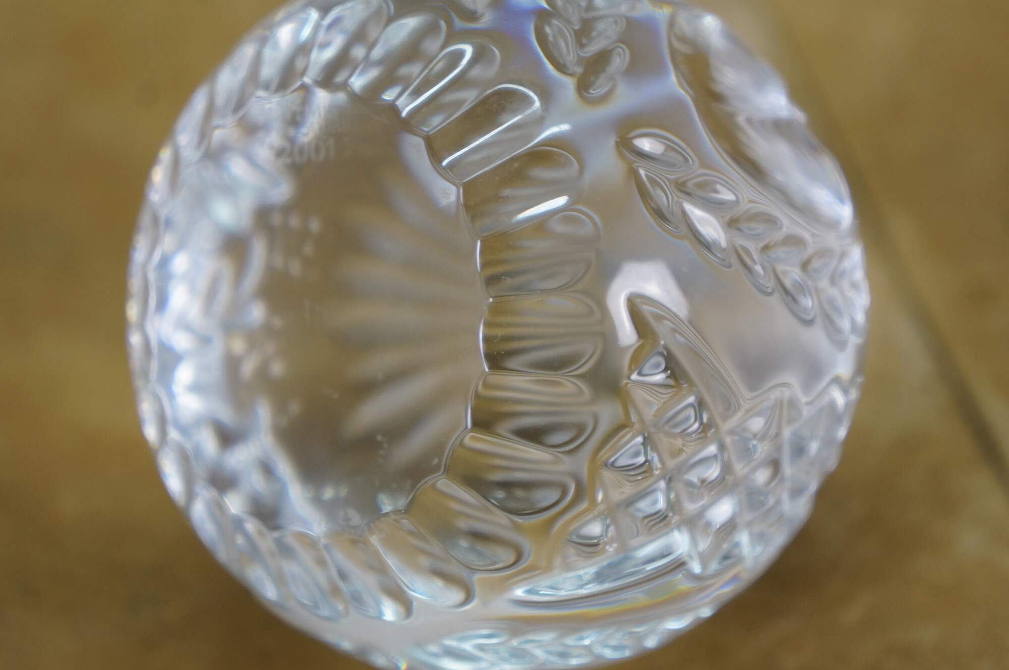 Vintage Waterford clear cut crystal 2001 Times Square "Hope for Abundance" New Year's paperweight. Ball / orb shaped figurine cut with apples framed in laurel wreaths.