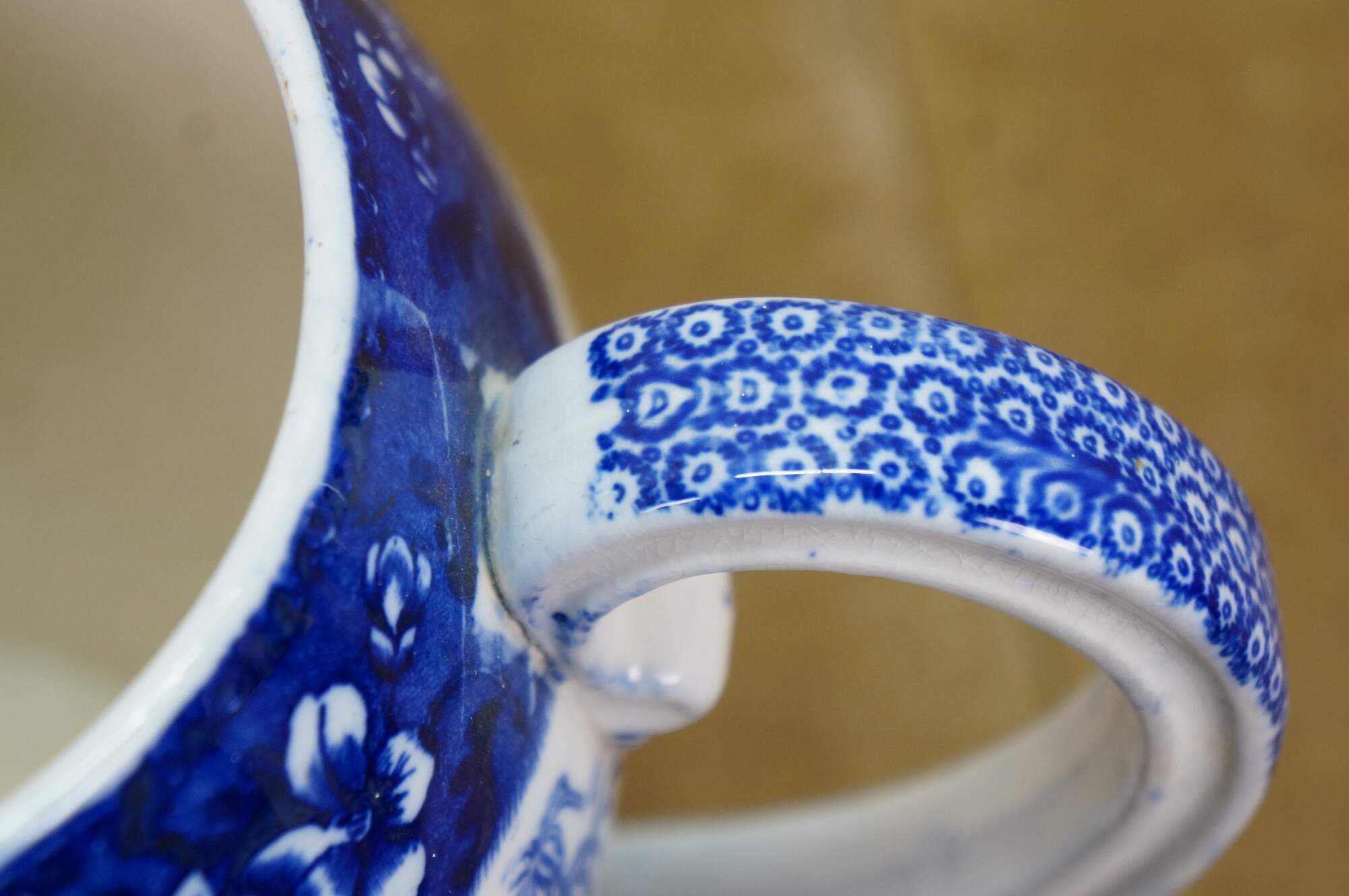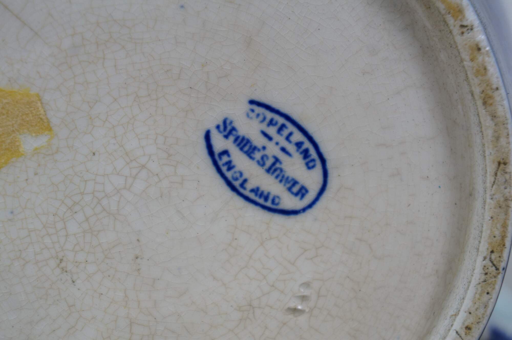"Spode is an English brand of pottery and homewares produced in Stoke-on-Trent, England, founded by Josiah Spode (1733–1797) in 1770. In 1776 he completed the purchase of what became the Spode factory until 2008. Spode perfected the technique for transfer printing in underglaze blue on fine earthenware in 1783–1784 – a development that led to the launch in 1816 of Spode's Blue Italian range, which has remained in production ever since. The company is credited with developing, around 1790, the formula for fine bone china that was generally adopted by the industry. Josiah Spode's son, Josiah Spode II, successfully marketed English bone china. The business was carried on through his sons at Stoke until April 1833. Messrs Spode were succeeded in the same business in c. 1833 by Copeland and Garrett, who often used the name Spode in their marks. In particular these are called 'Late Spode' and include productions of the so-called 'Felspar porcelain'. They also produced other kinds of bone china, earthenware, parian, etc. The partnership continued in this form until 1847. After 1847 the business continued until 1970 as W.T. Copeland and sons, and again the term 'Spode' or 'Late Spode' continued in use alongside the name of Copeland. Under the name 'Spode Ltd' the same factories and business were continued after 1970. In 2006, the business merged with Royal Worcester. In 2008, the Copeland Spode company went through some financial troubles. It was taken over in 2009 by Portmeirion Group, a pottery and homewares company based in Stoke-on-Trent. The purchase did not include Royal Worcester or Spode manufacturing facilities. Many items in Spode's Blue Italian and Woodland ranges are made at Portmeirion Group's factory in Stoke-on-Trent." (Source: Wikipedia)