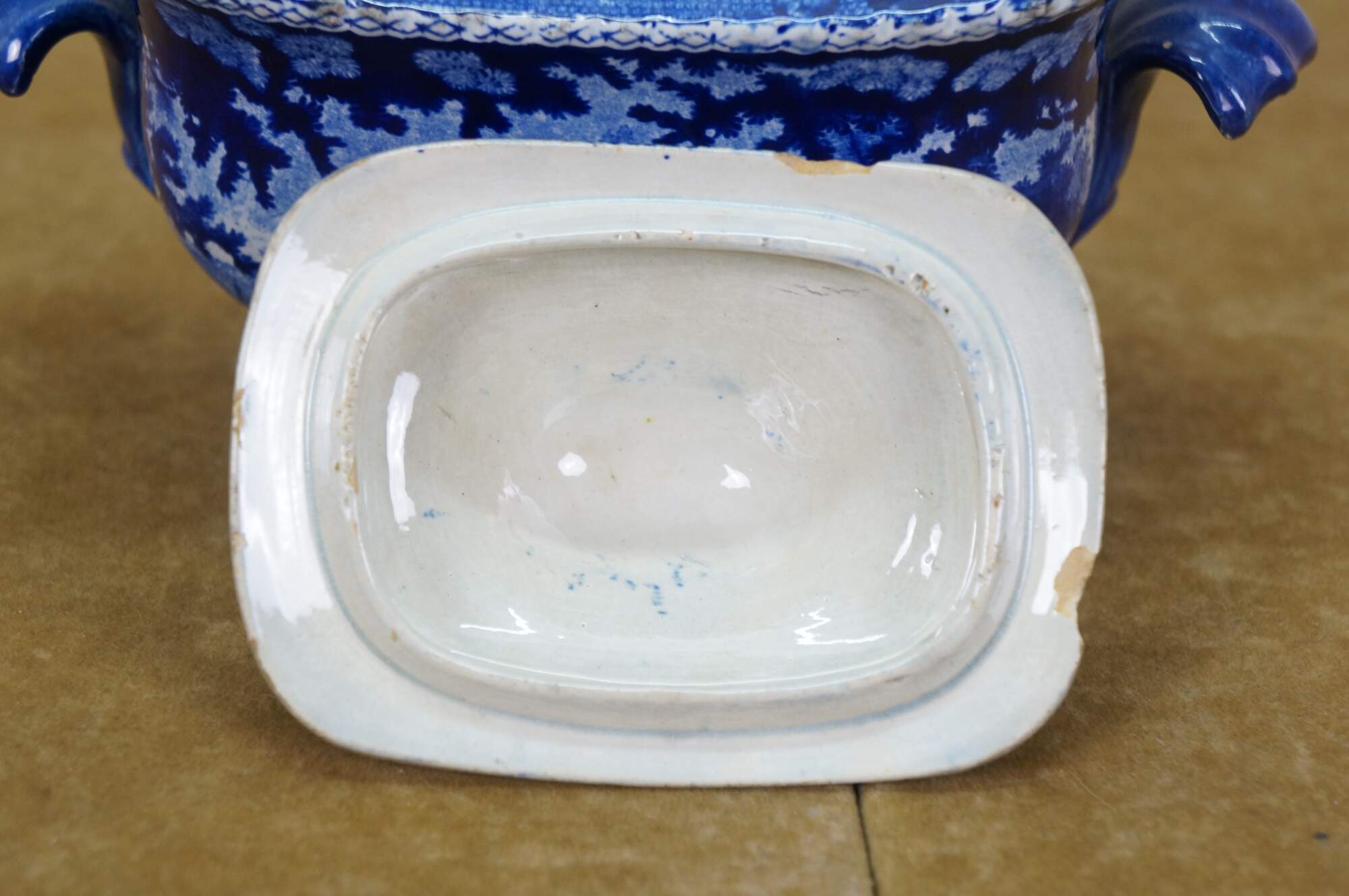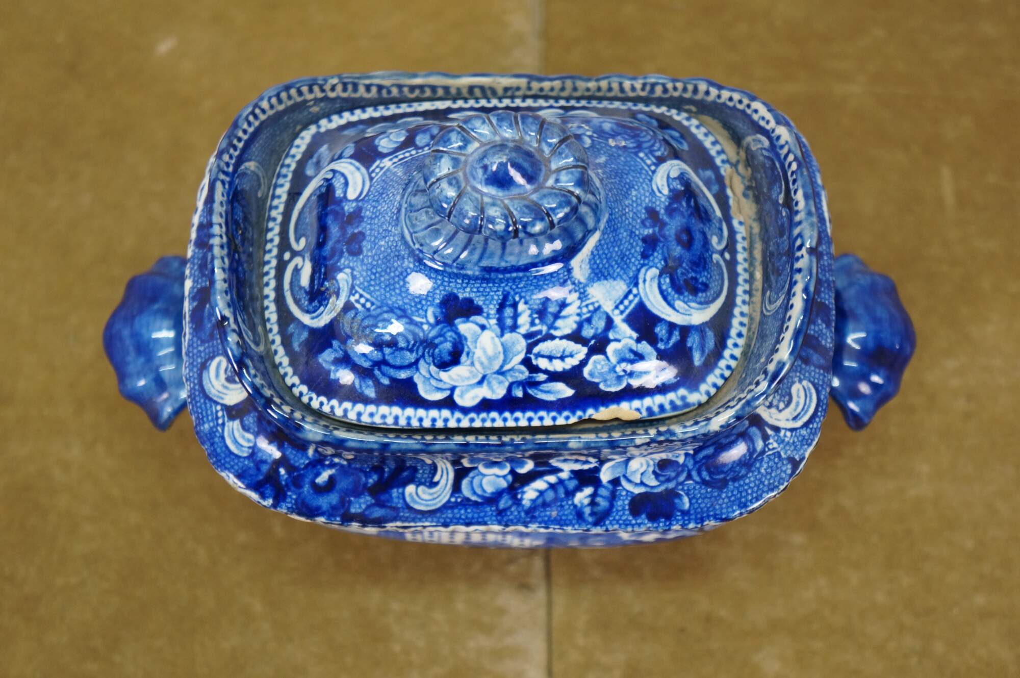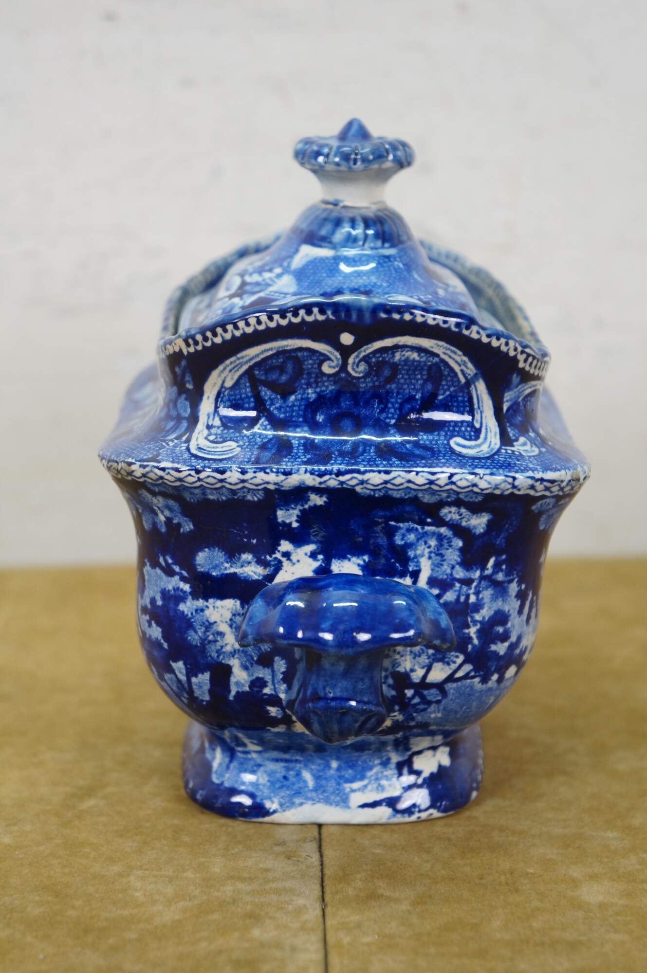 Antique Ironstone Stone China Cobalt Blue & White Lidded Bowl Tureen 8"