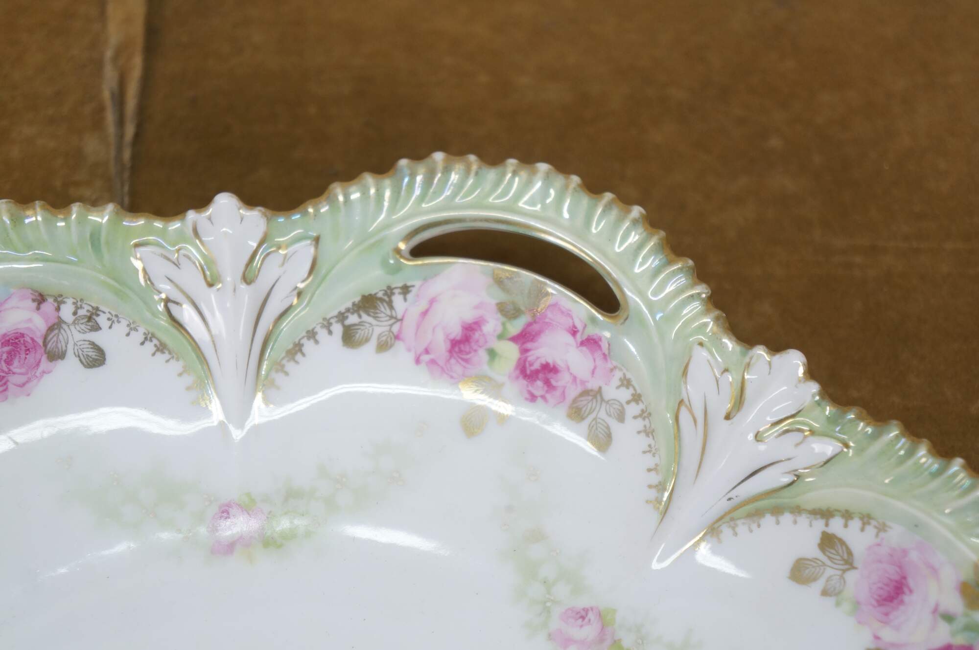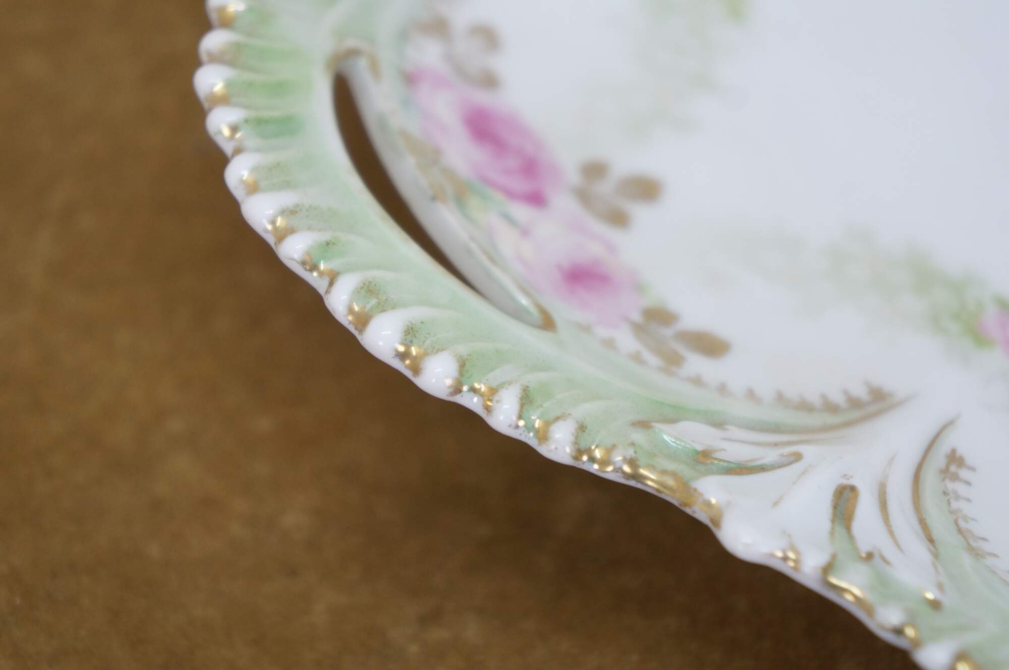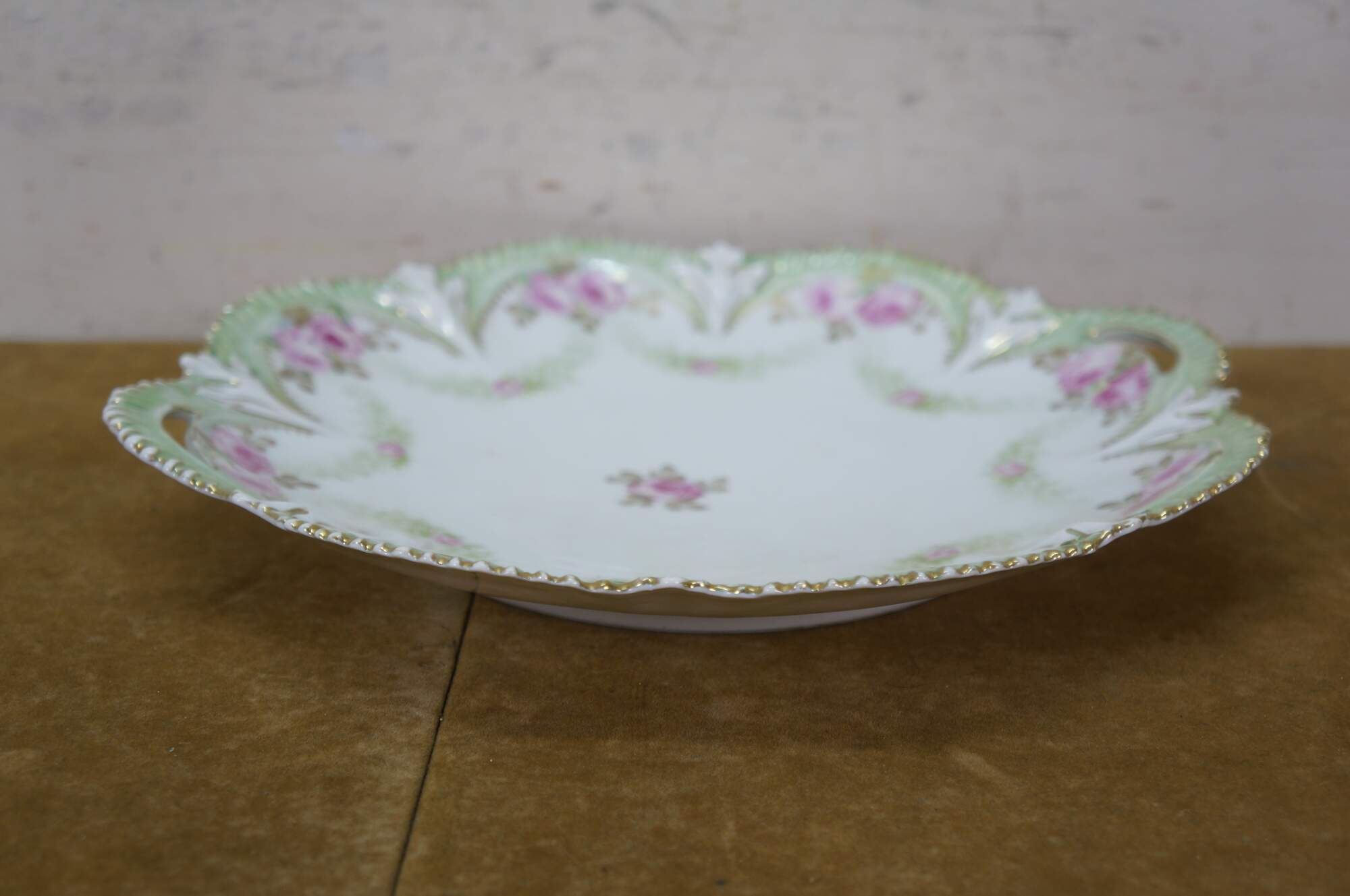 Antique RS Prussia Pink Roses Handled Serving Dish Plate Platter 11"