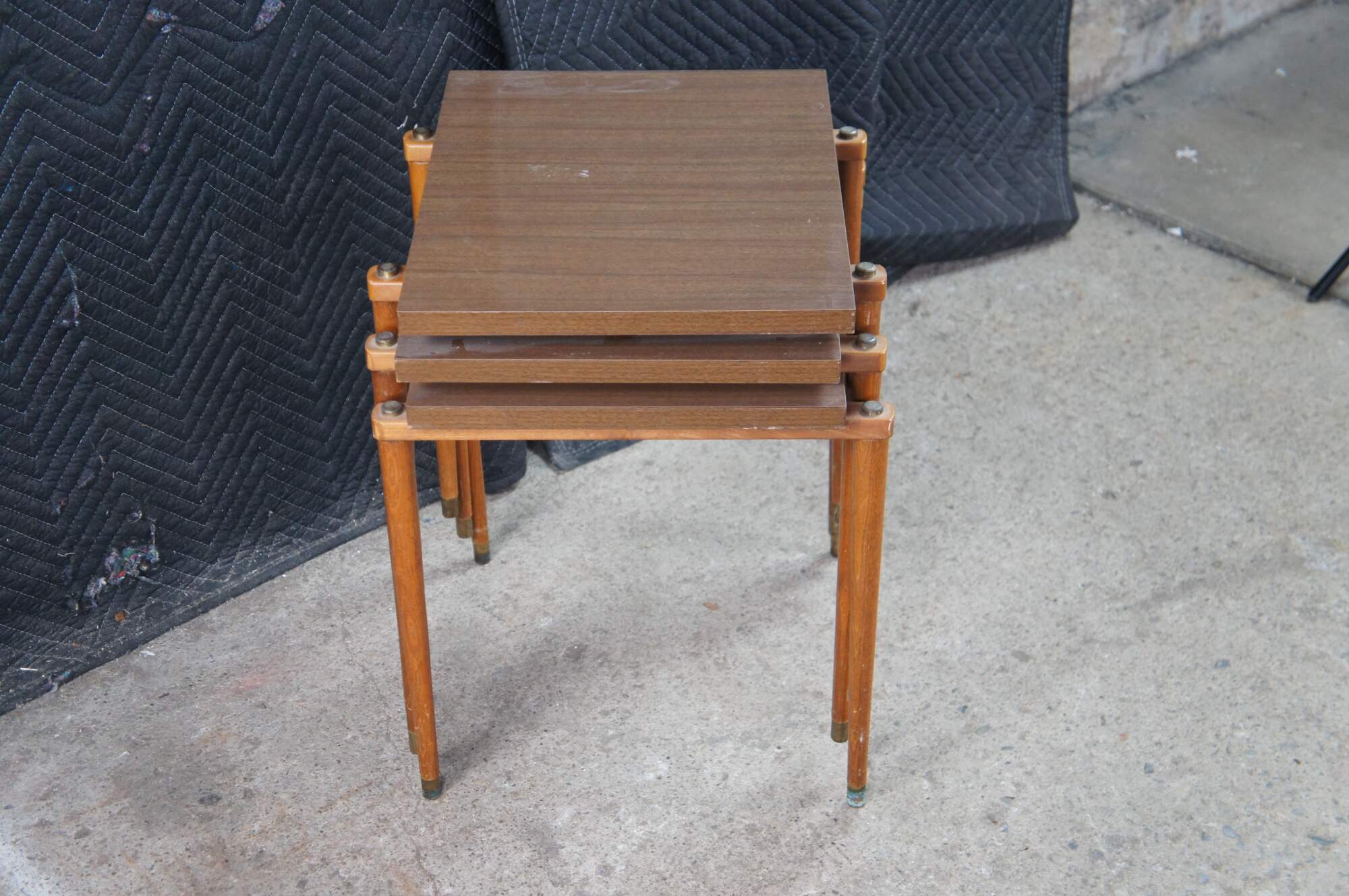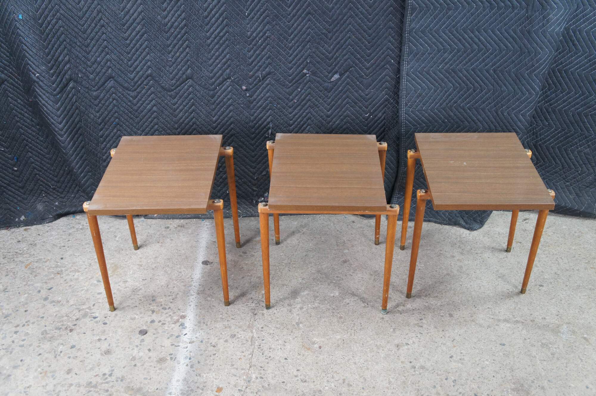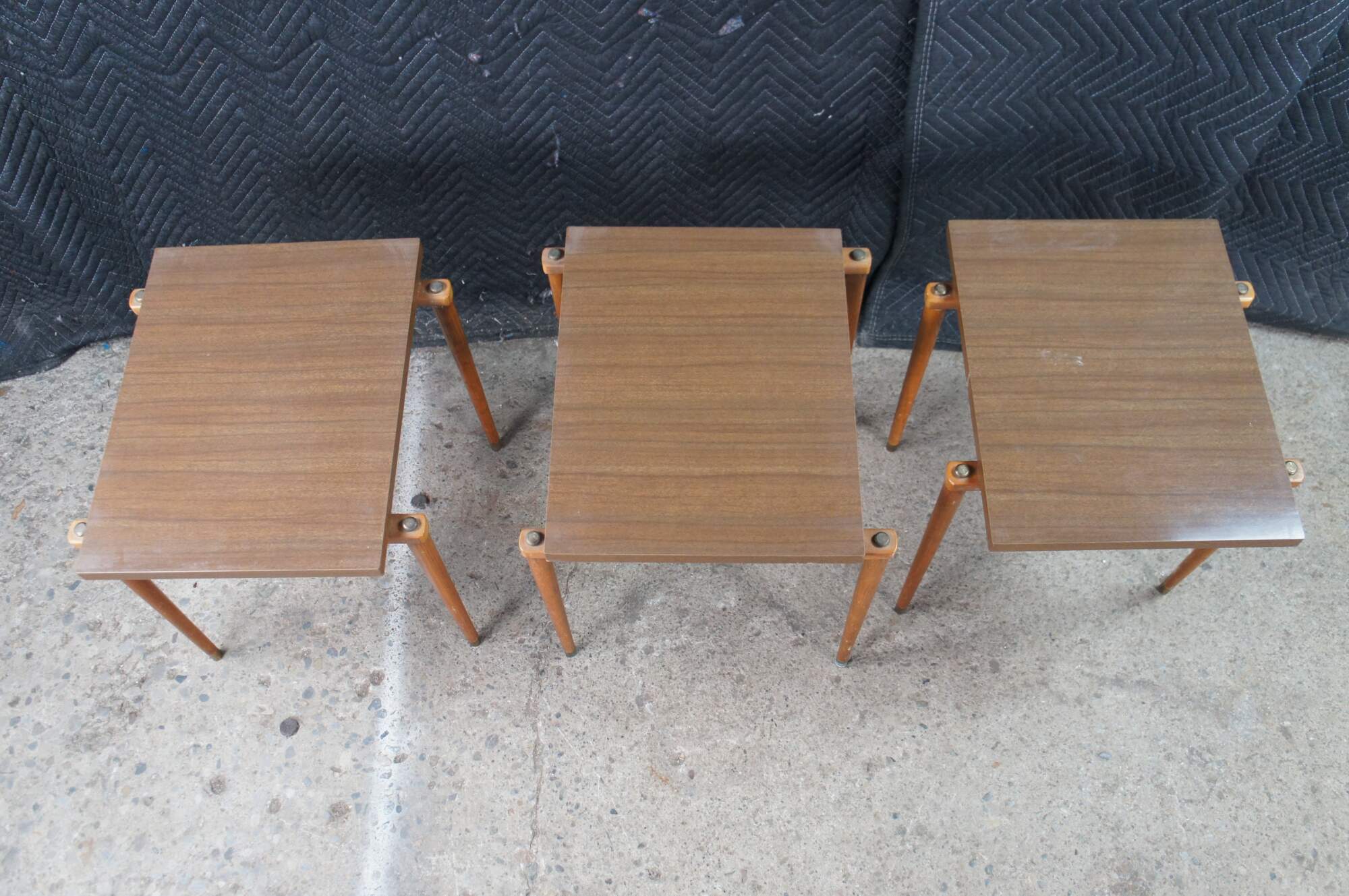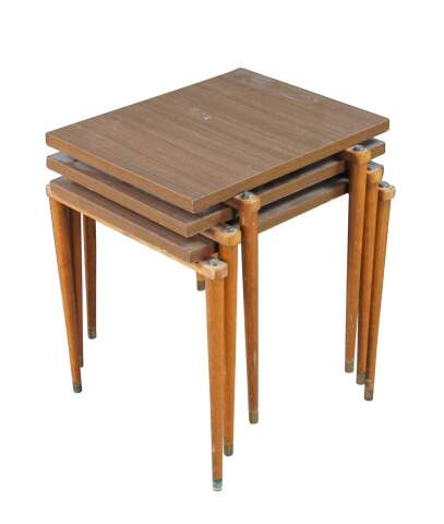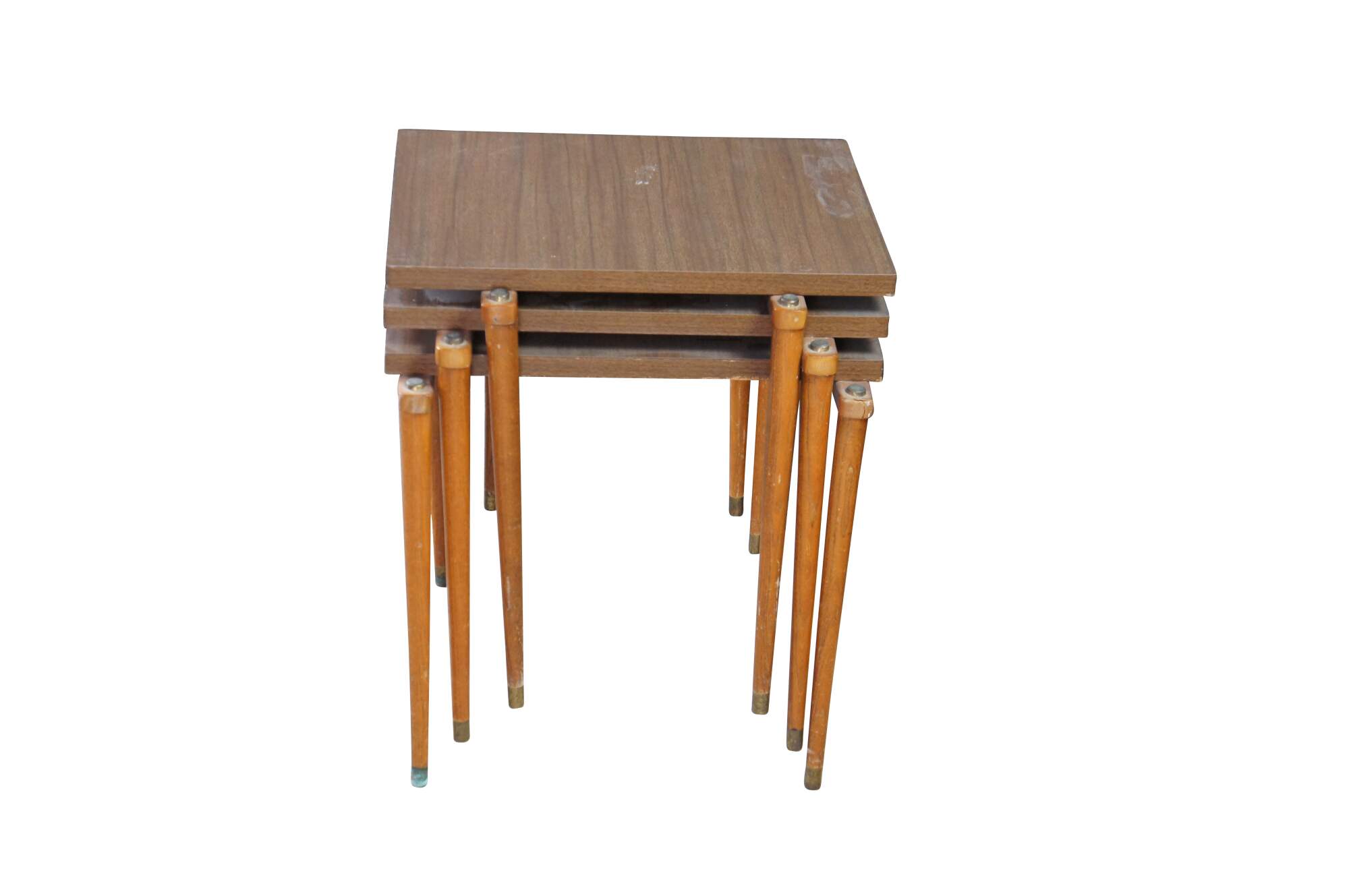 Set of three stacking nesting tables by German Furniture maker Opal Mobel. Made of teak laminate featuring Danish styling, circa 1960s.