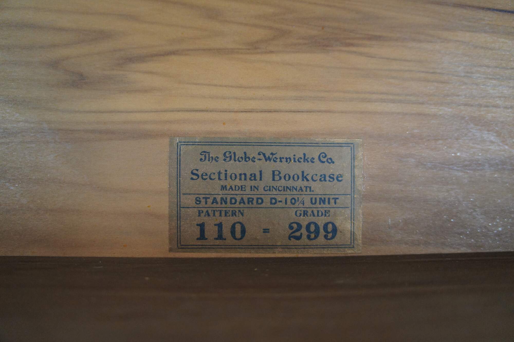 Antique 5 piece Globe Wernicke library lawyer barrister bookshelf / bookcase. Made of quartersawn oak featuring Mission styling with three curio bookshelves and lower drawer. Pattern 110, 112, D12 Grade 299.