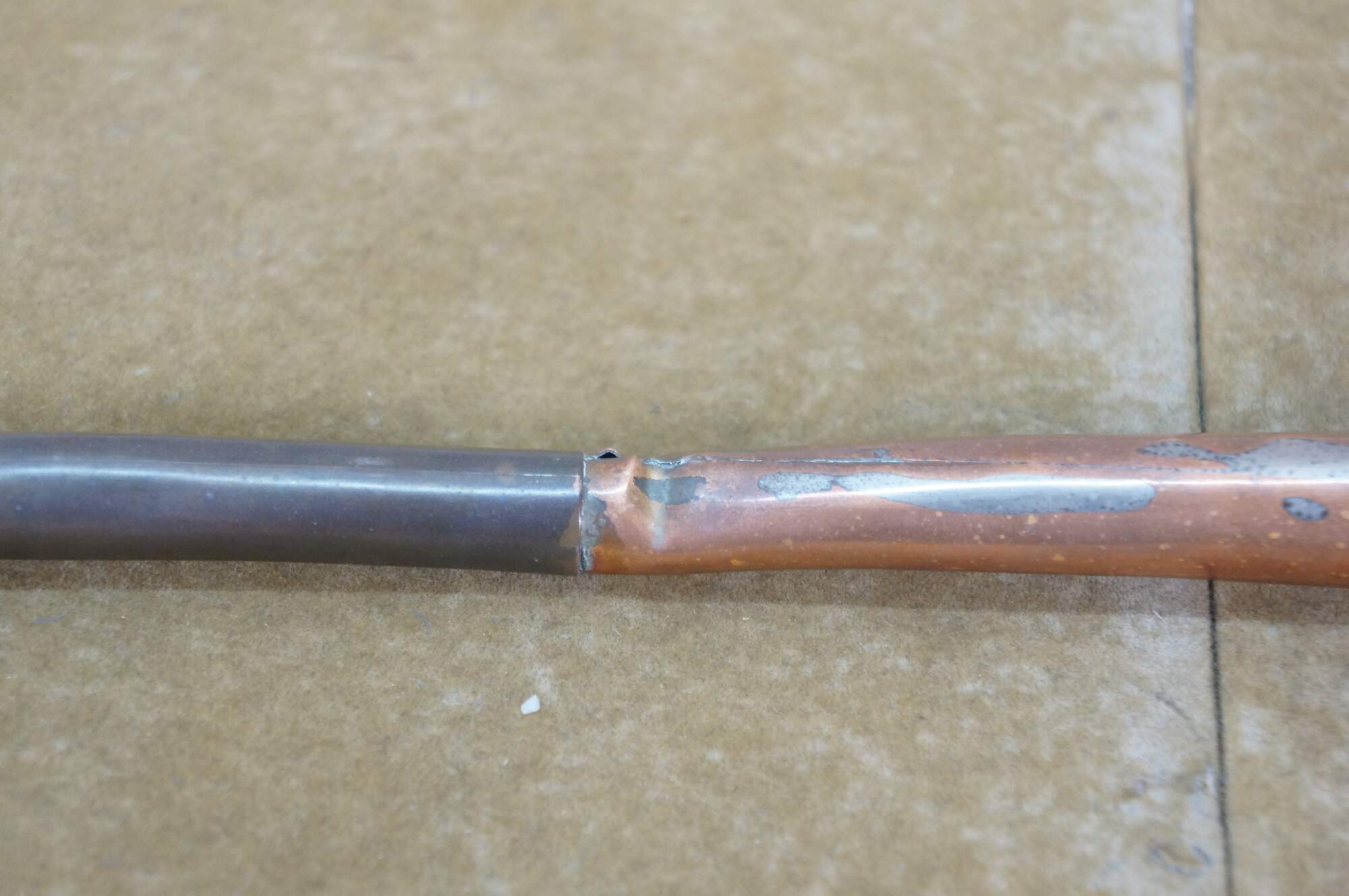 Dent / crack at middle; finish loss; tarnish