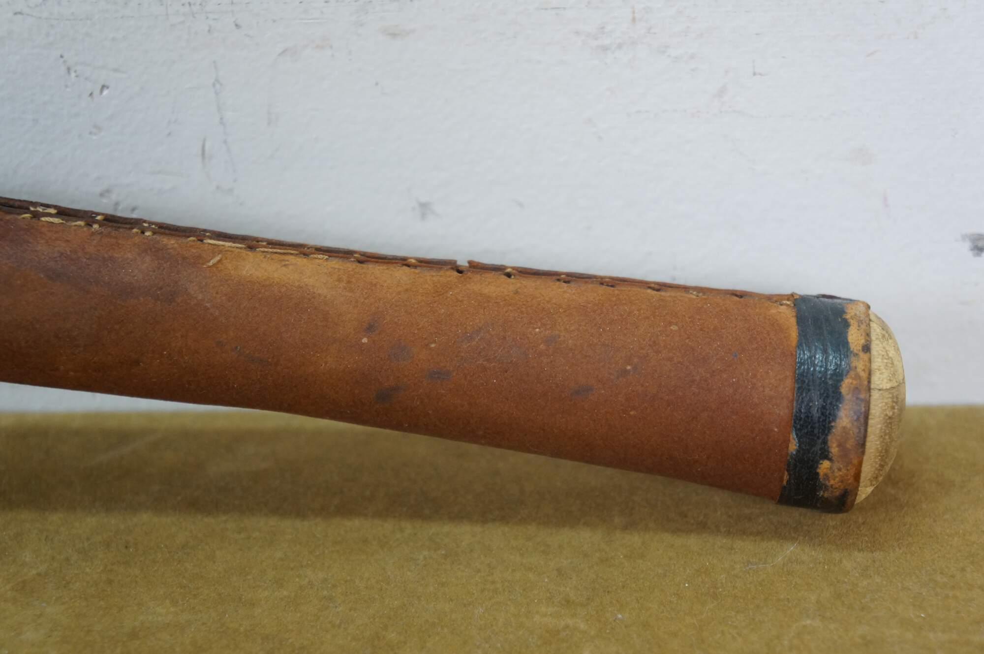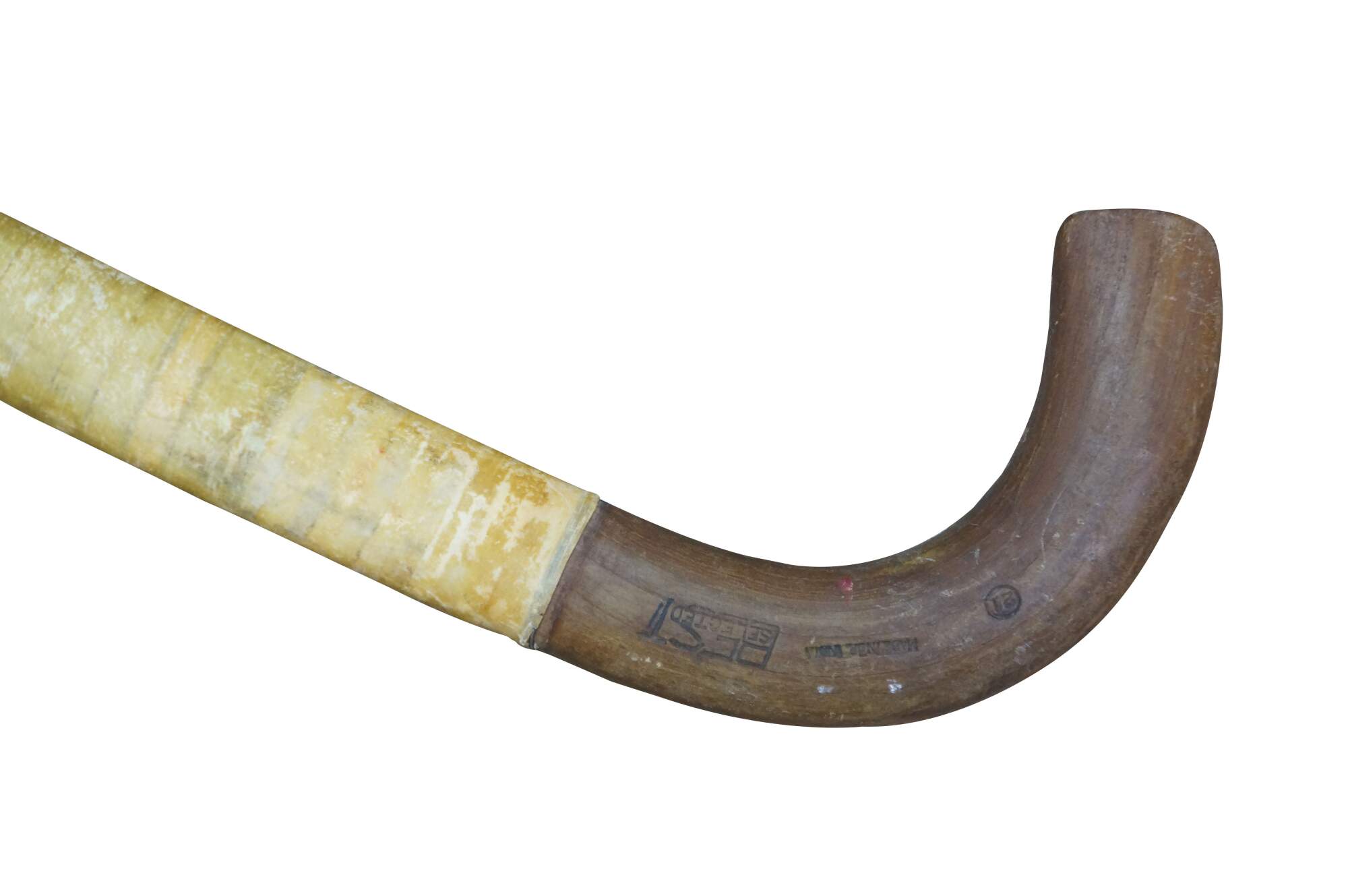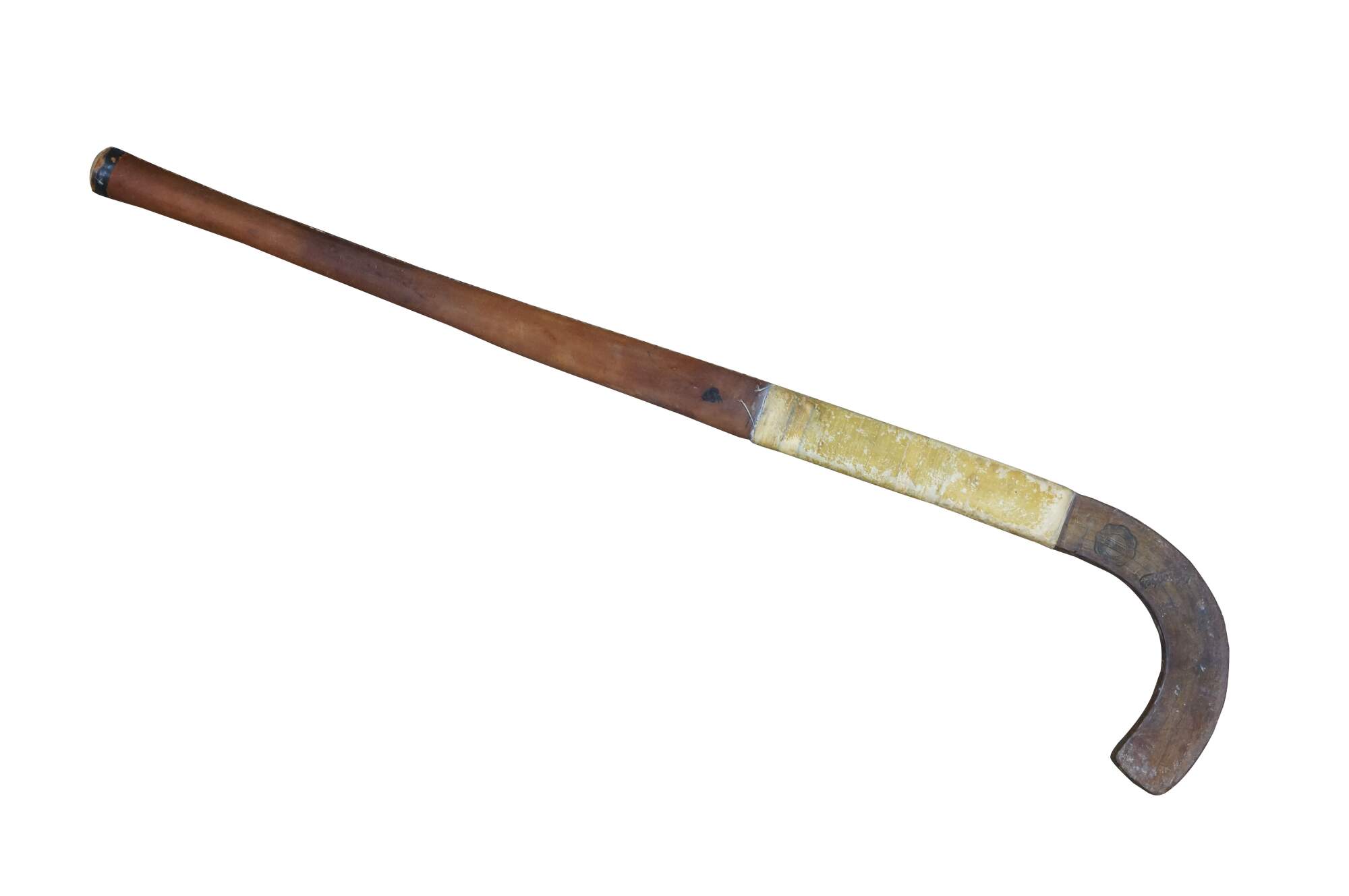 Vintage 20th century wooden field hockey stick with leather wrapped handle.