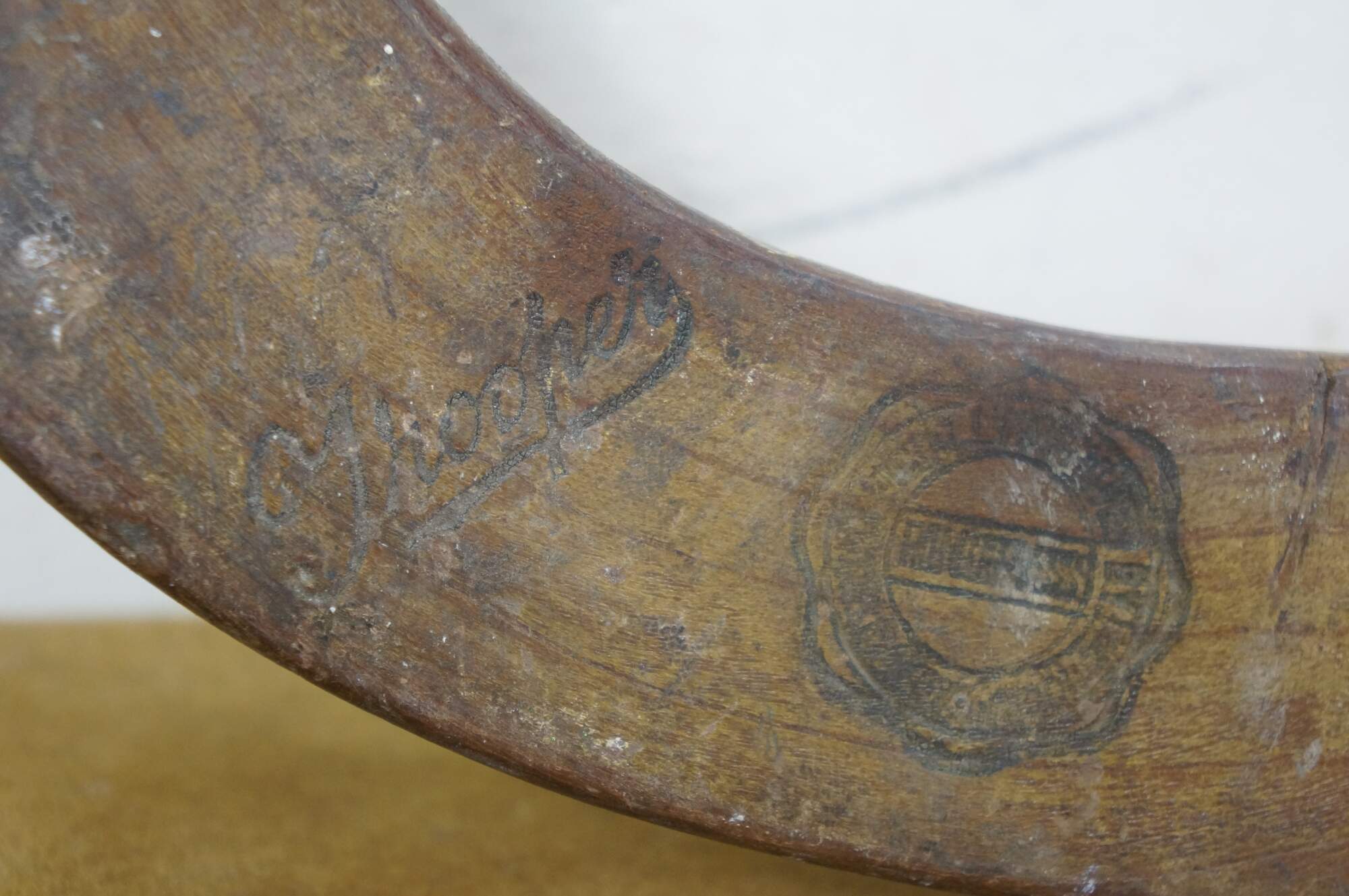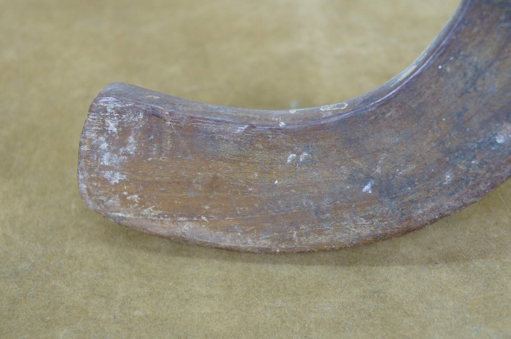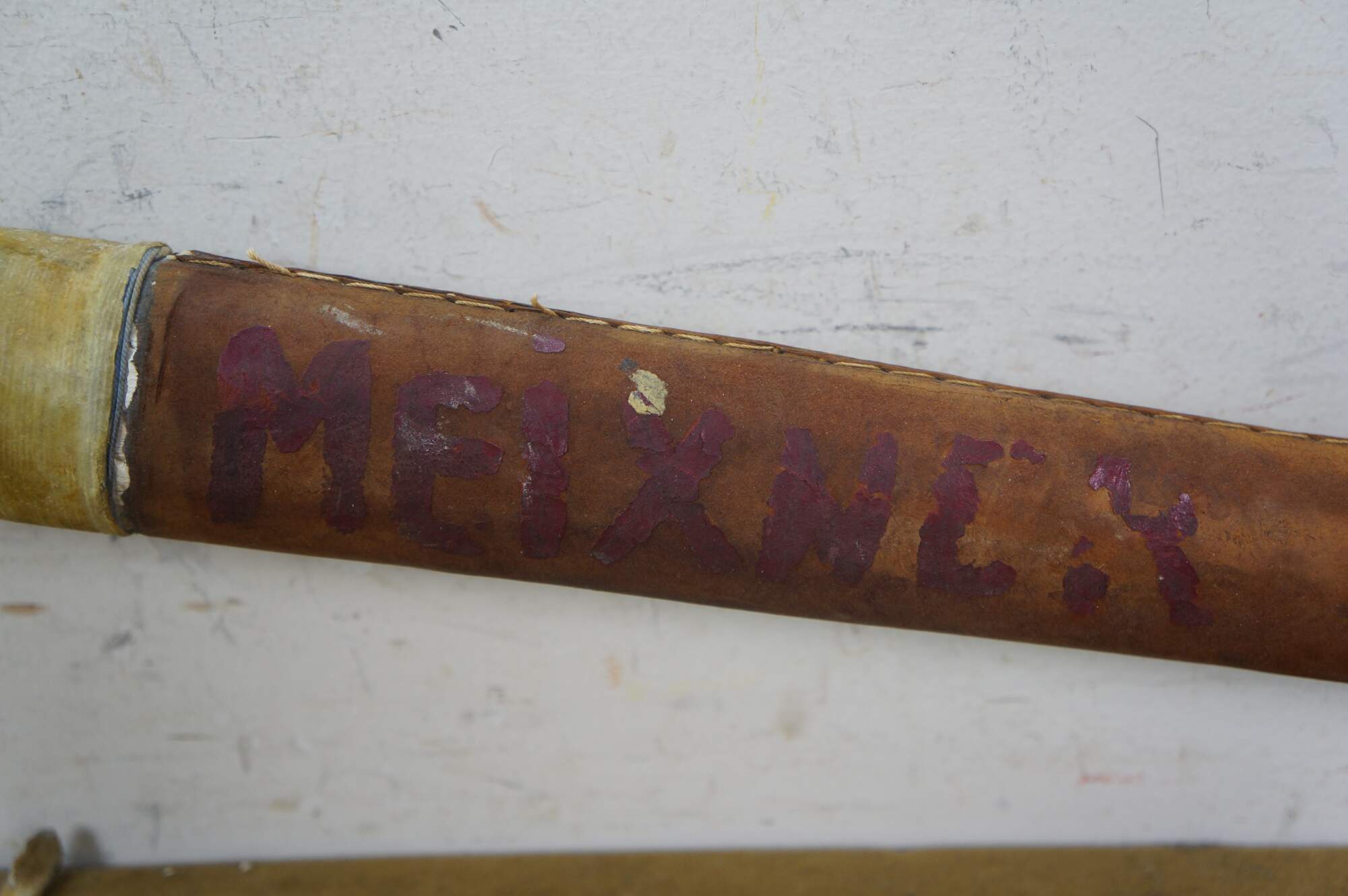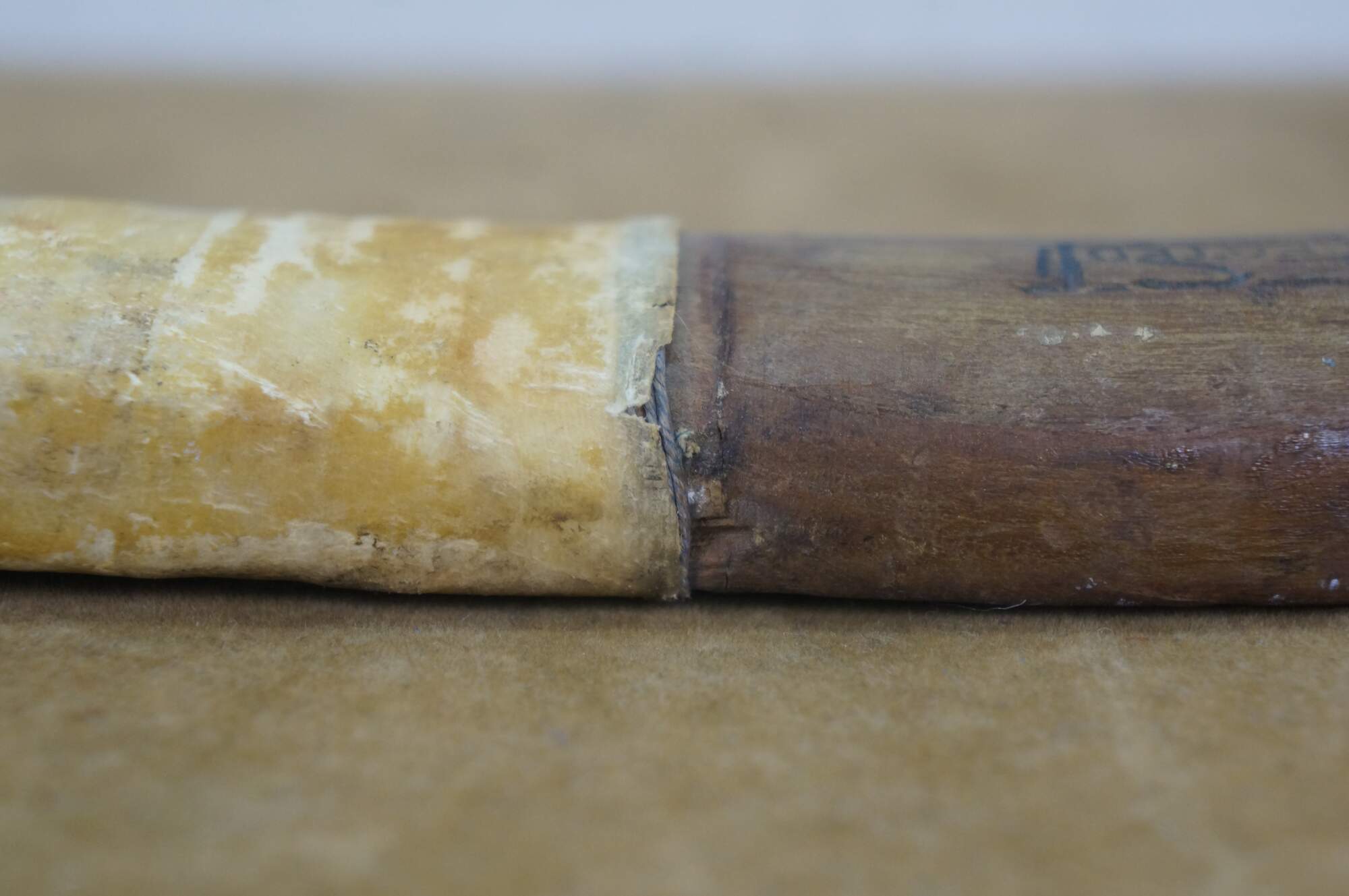 Vintage 20th century wooden field hockey stick with leather wrapped handle.