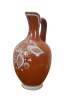 Vintage 20th century Mexican folk art style water pitcher. Made of earthenware ceramic with a rust red / orange glaze and hand painted foliate design in white.