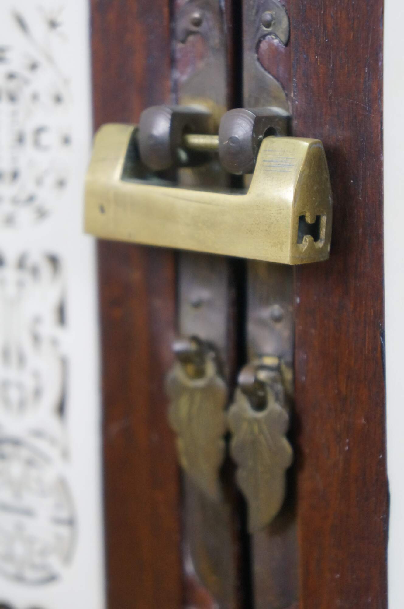 Gentle wear/tarnish to metal; no key but lock can be opened with a small screwdriver