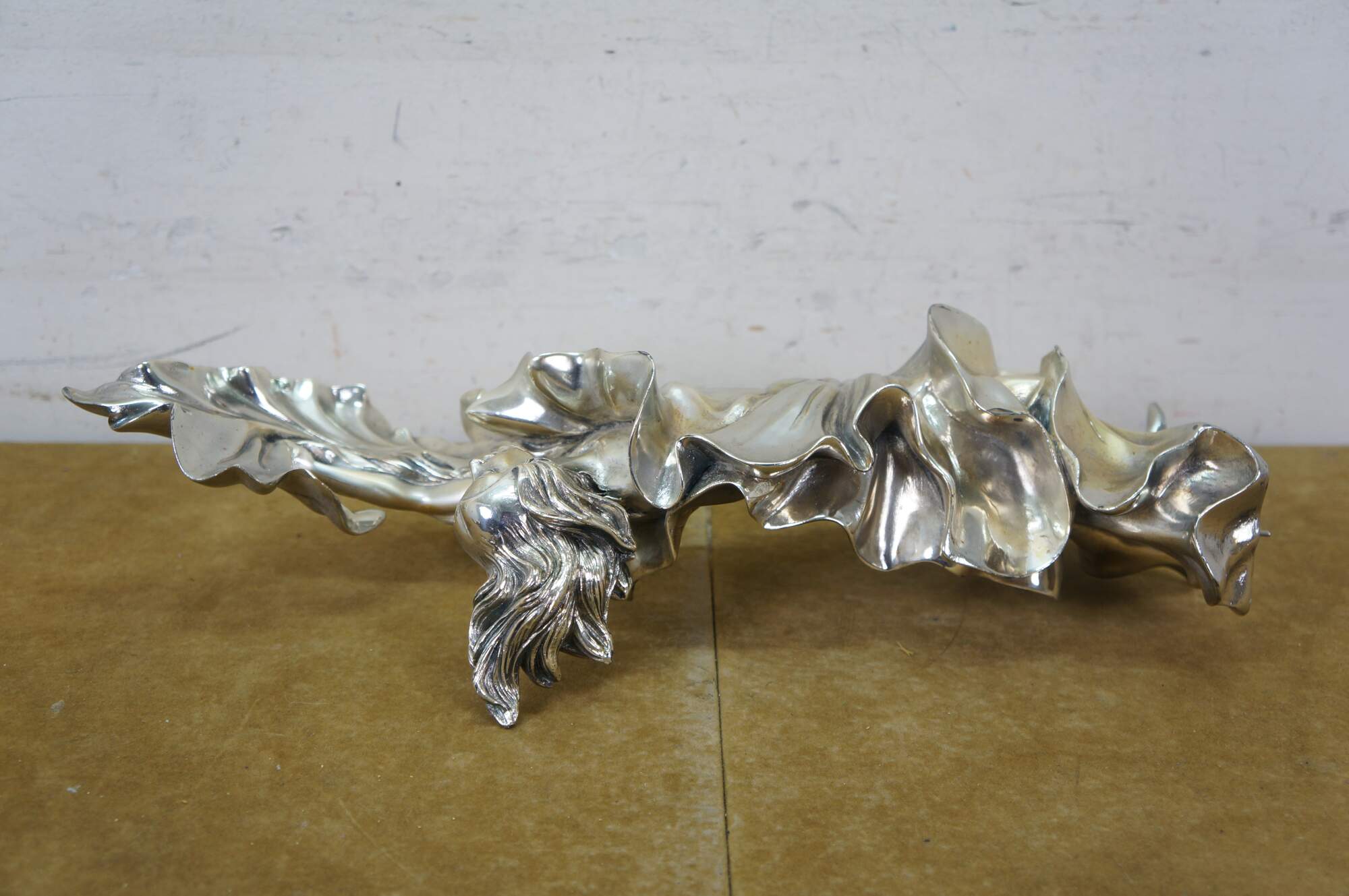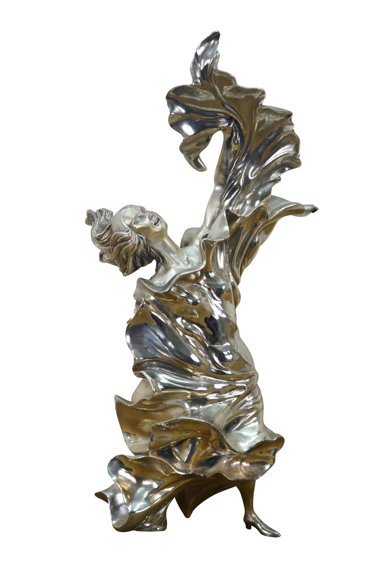 Large vintage Italian Art Nouveau statue / sculpture featuring a woman dancing in billowing fabric. Cast in resin and clad in 925 sterling silver. Marked and signed on base.