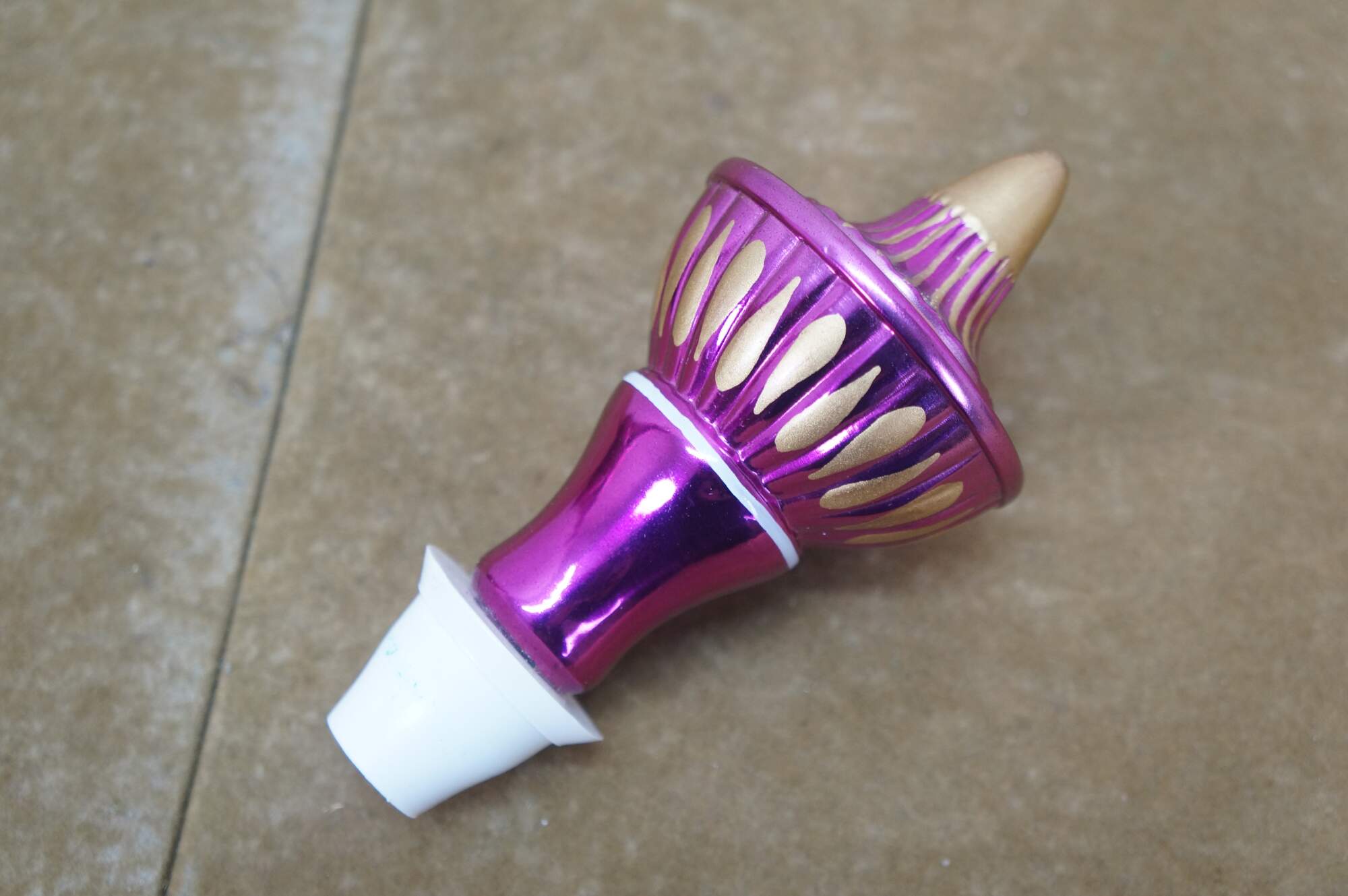 Very rare cast autographed "I Dream of Jeannie" Jeannie (genie) decanter bottle. Mirrored mulberry / purple / pink Middle Eastern inspired bottle hand painted with gold, white, coral and turquoise mimicking the prop used on the show from the Second Season onward, hand crafted and signed by Mario A.C. Della Casa of Della Casa Designs. Autographed at Dragon Con 2010 by Barbara Eden (Jeannie), Larry Hagman (Tony Nelson), and Bill Daily (Capt. Roger Healy). Includes photograph taken by original owner of the three actors at their Dragon Con panel.