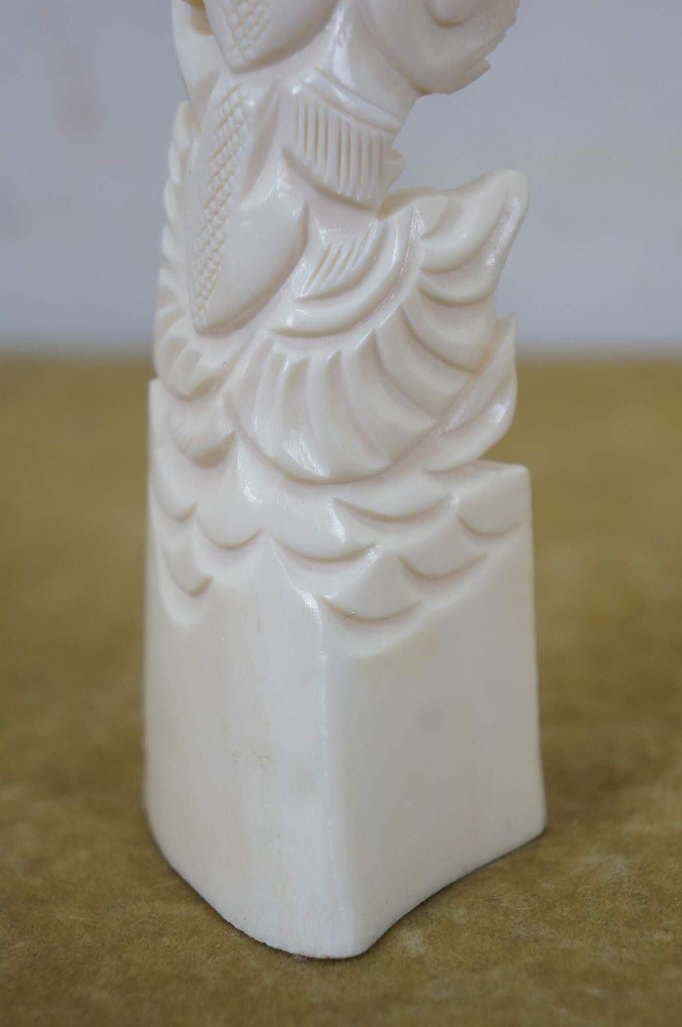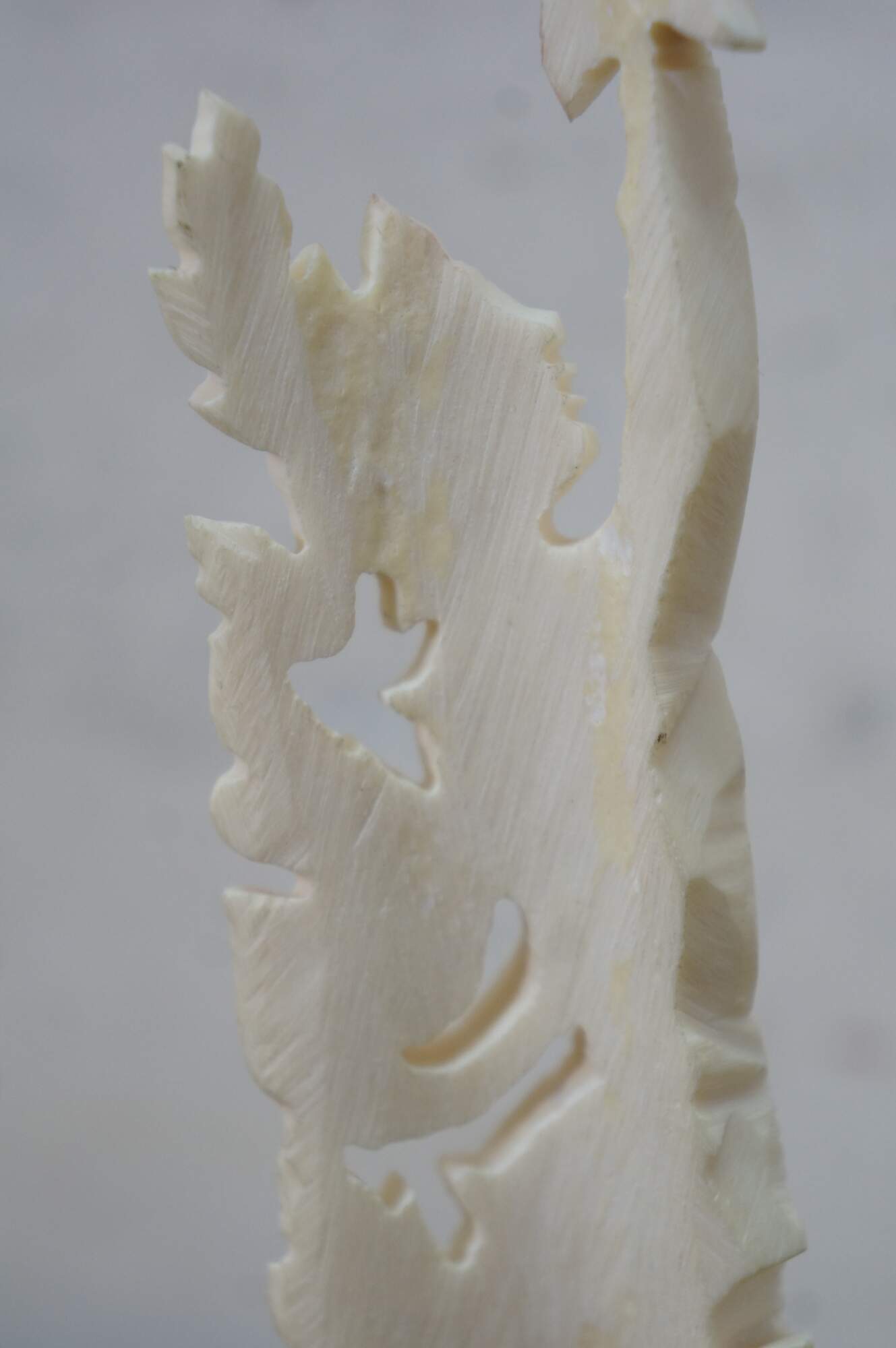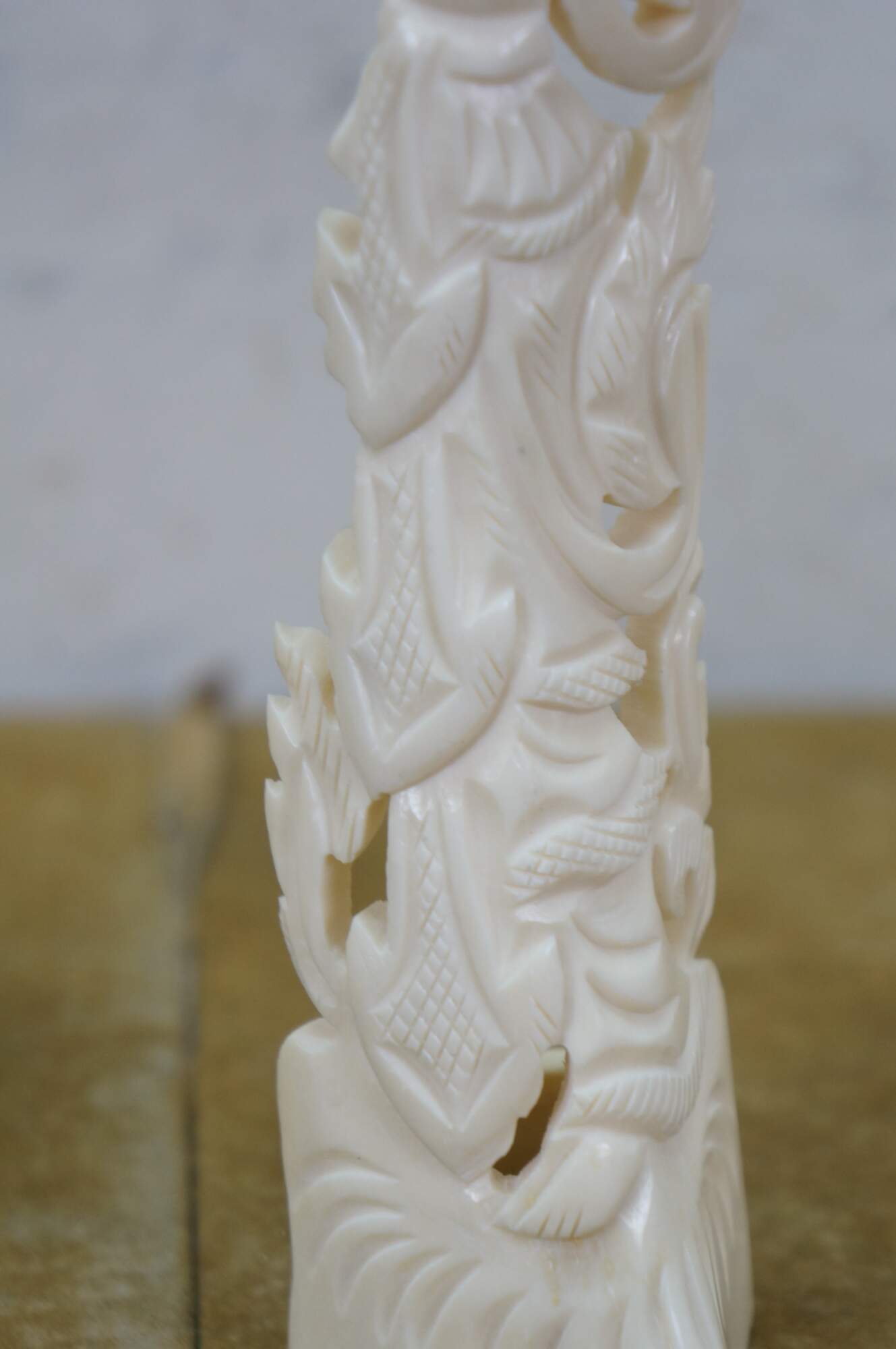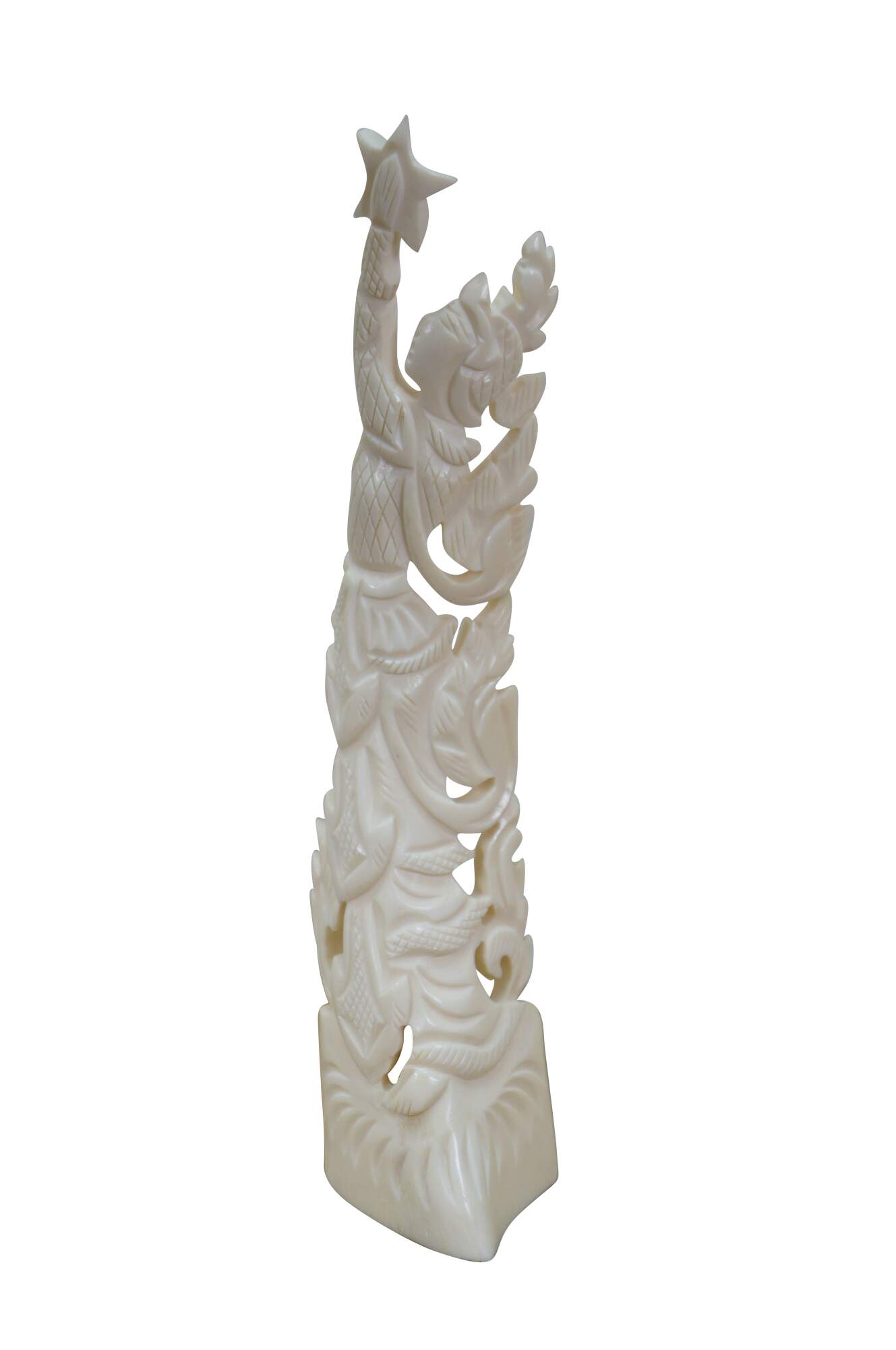 Mid to late 20th century pair of Indonesian dancing god / goddess "totem" sculptures / figurines / tree toppers. Hand carved from the bones of a cow.