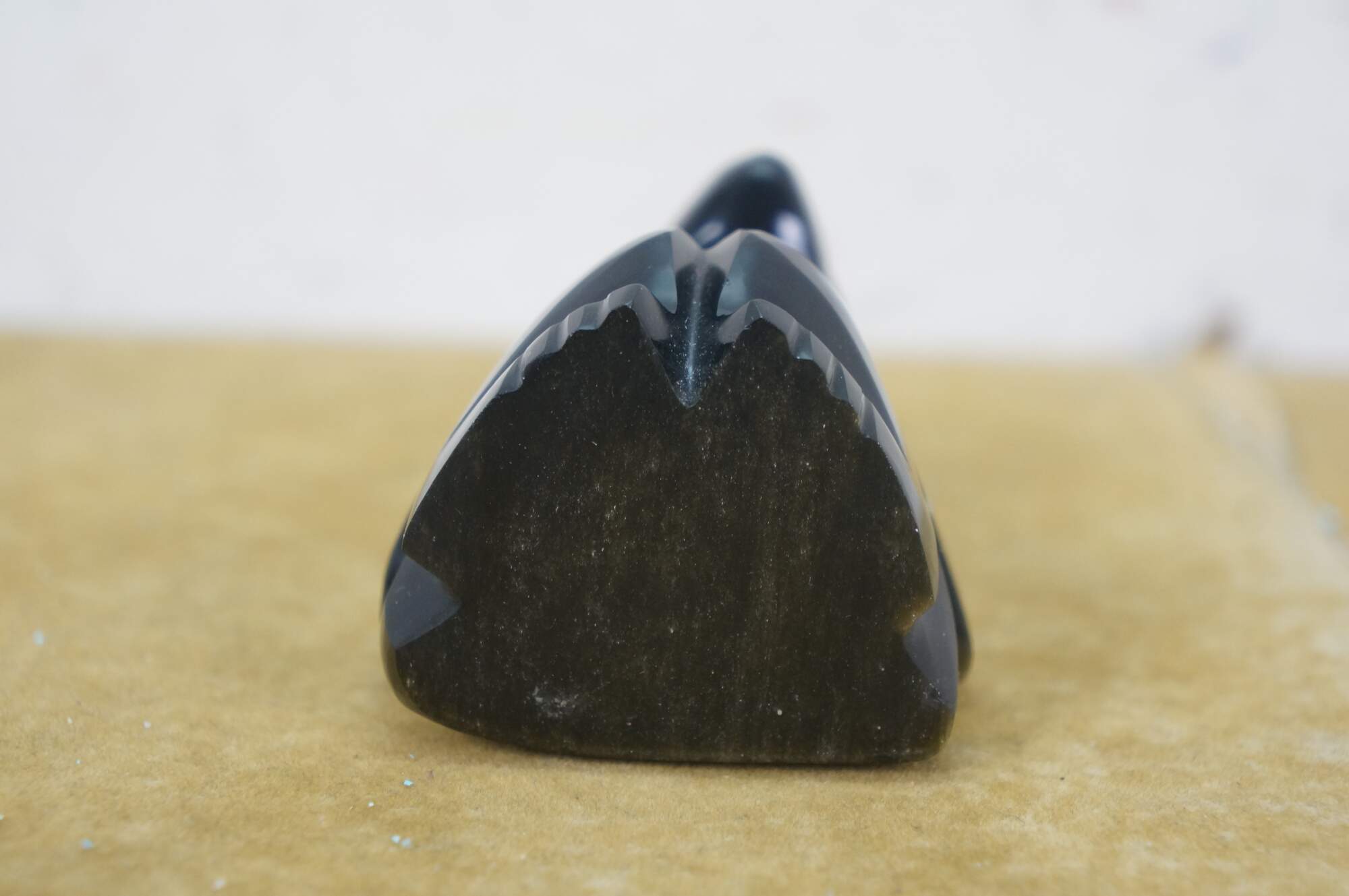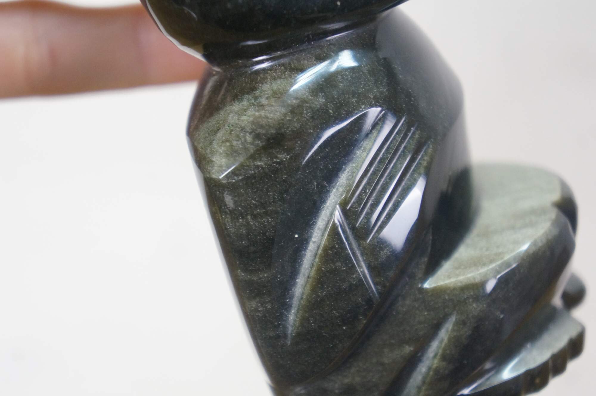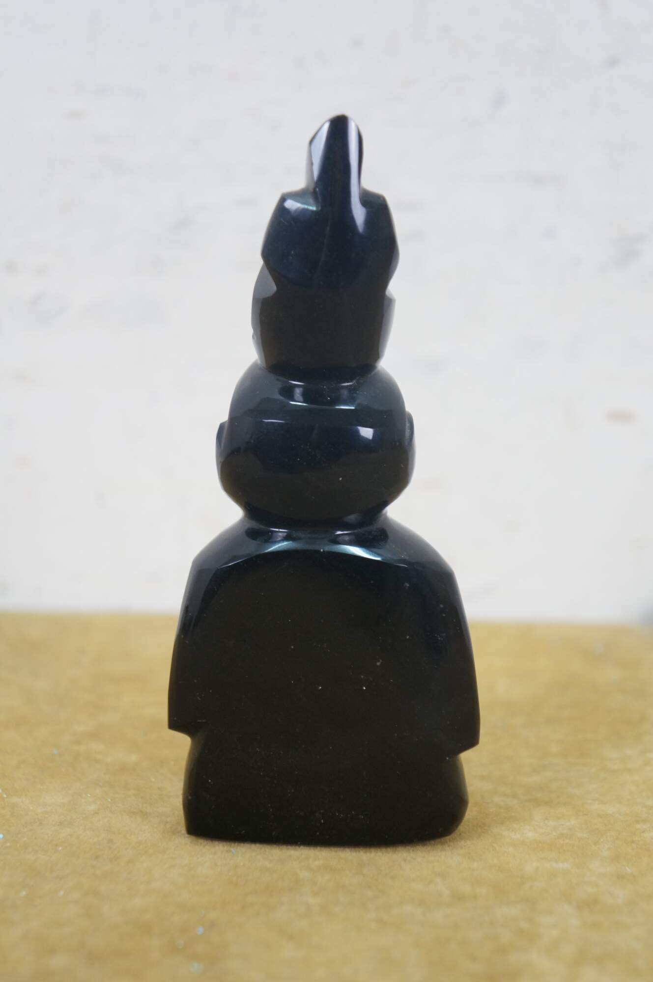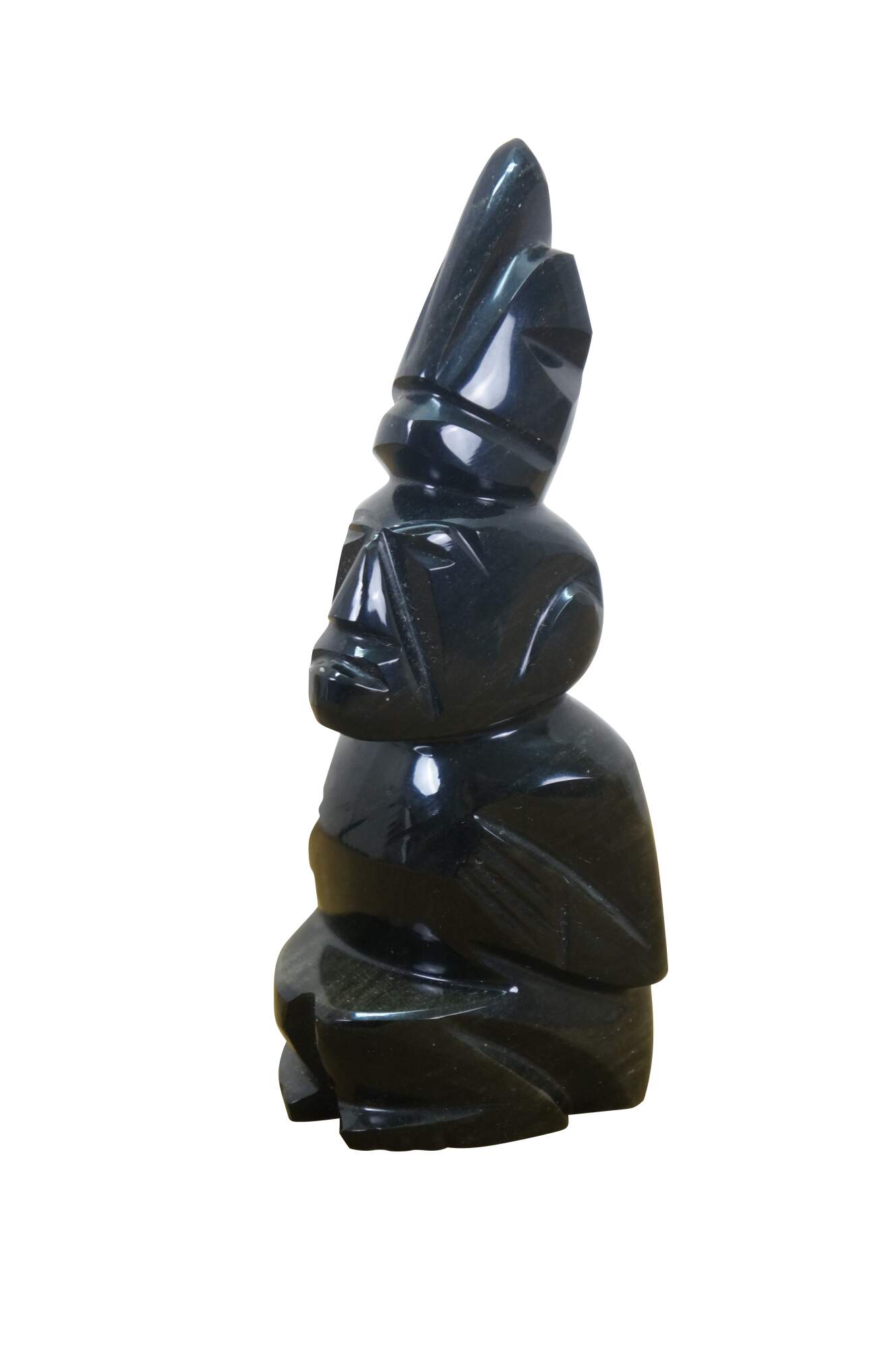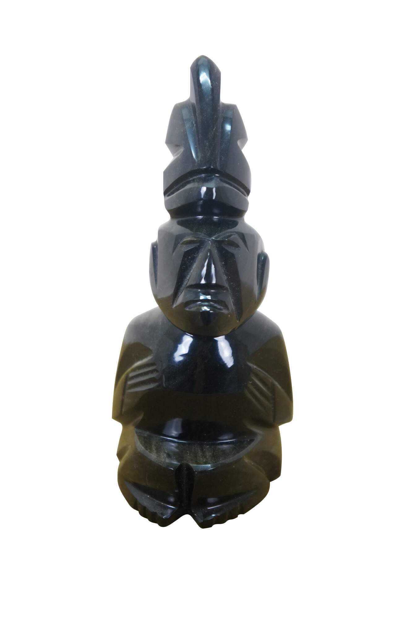 Late 20th century hand carved black obsidian figurine in the shape of a Mayan / Aztec seated figure with headdress.