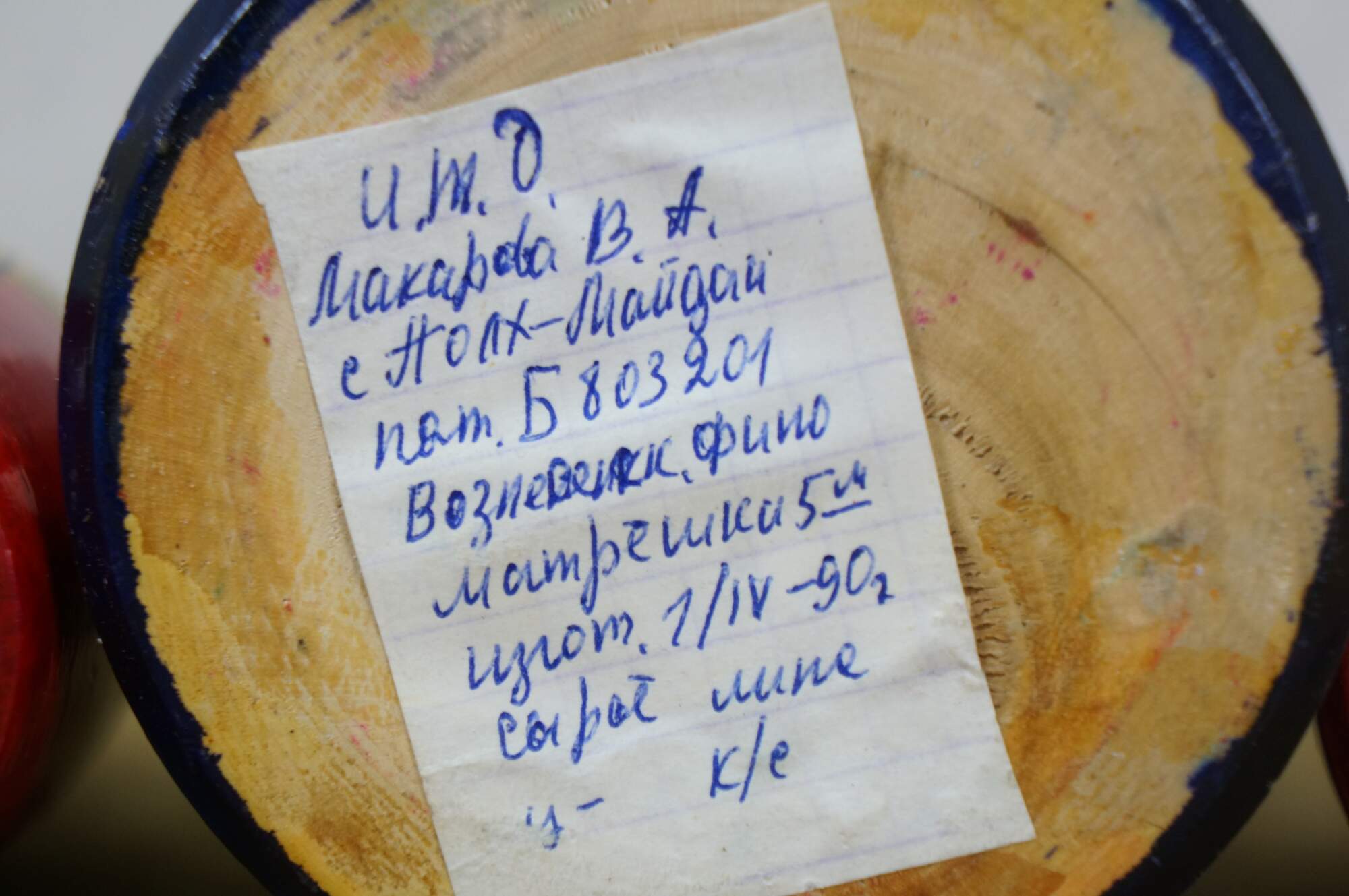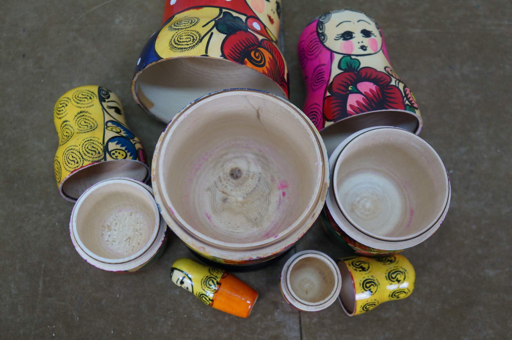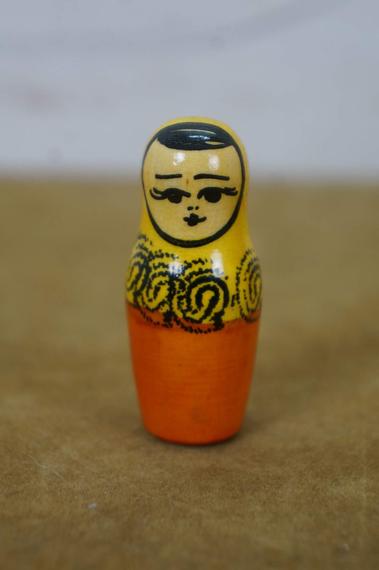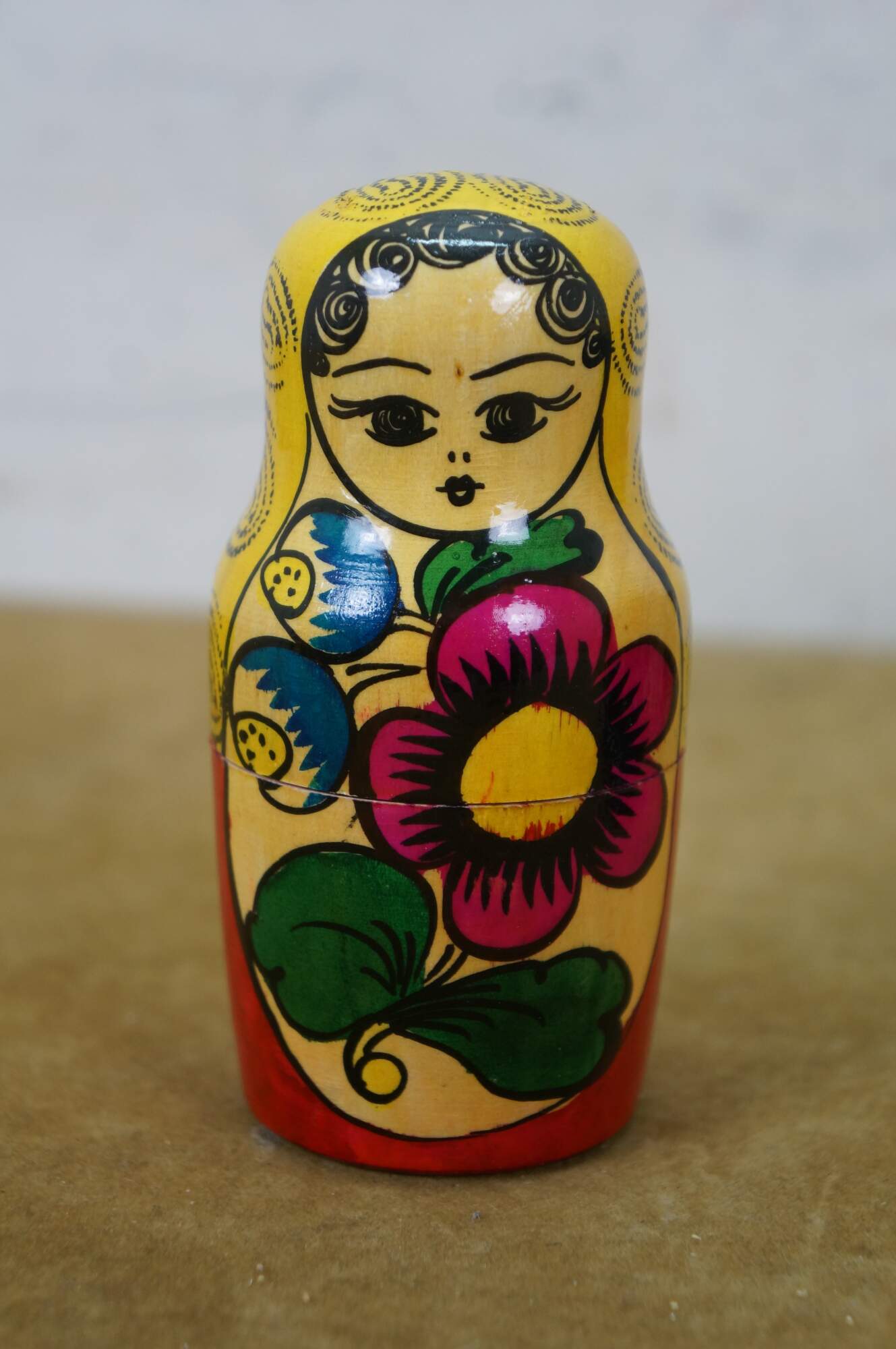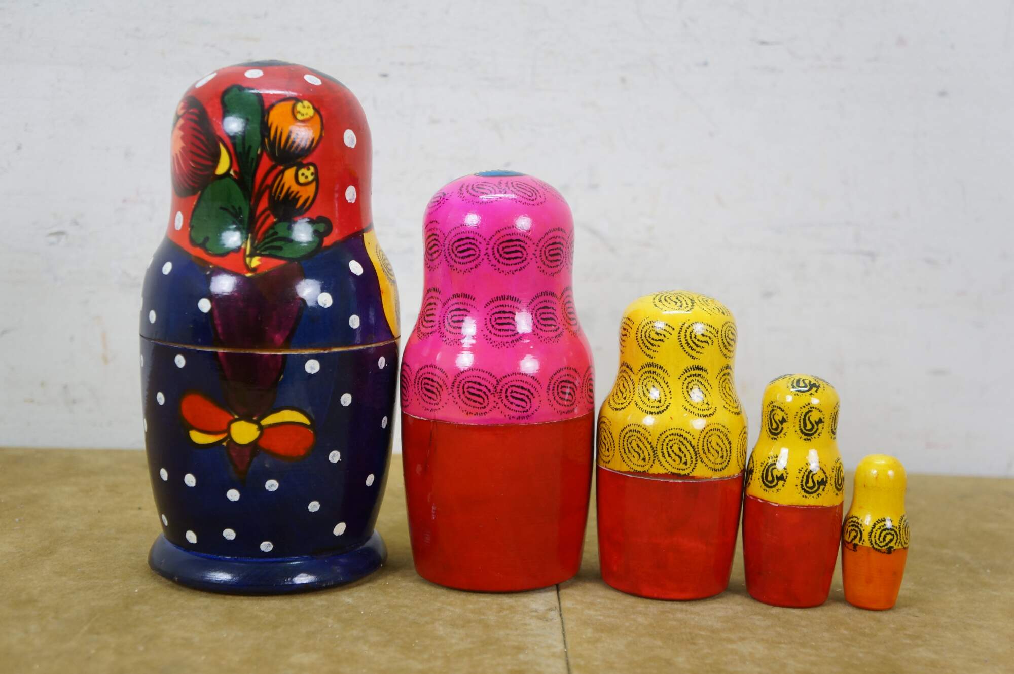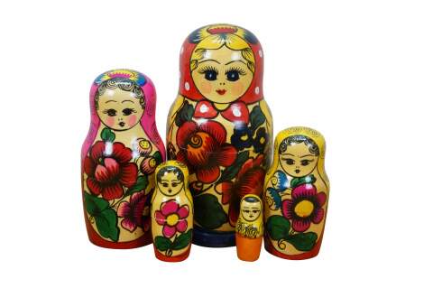 Mid to late 20th century Russian wooden matryoshka / nesting doll with five graduated folk art styled figures.