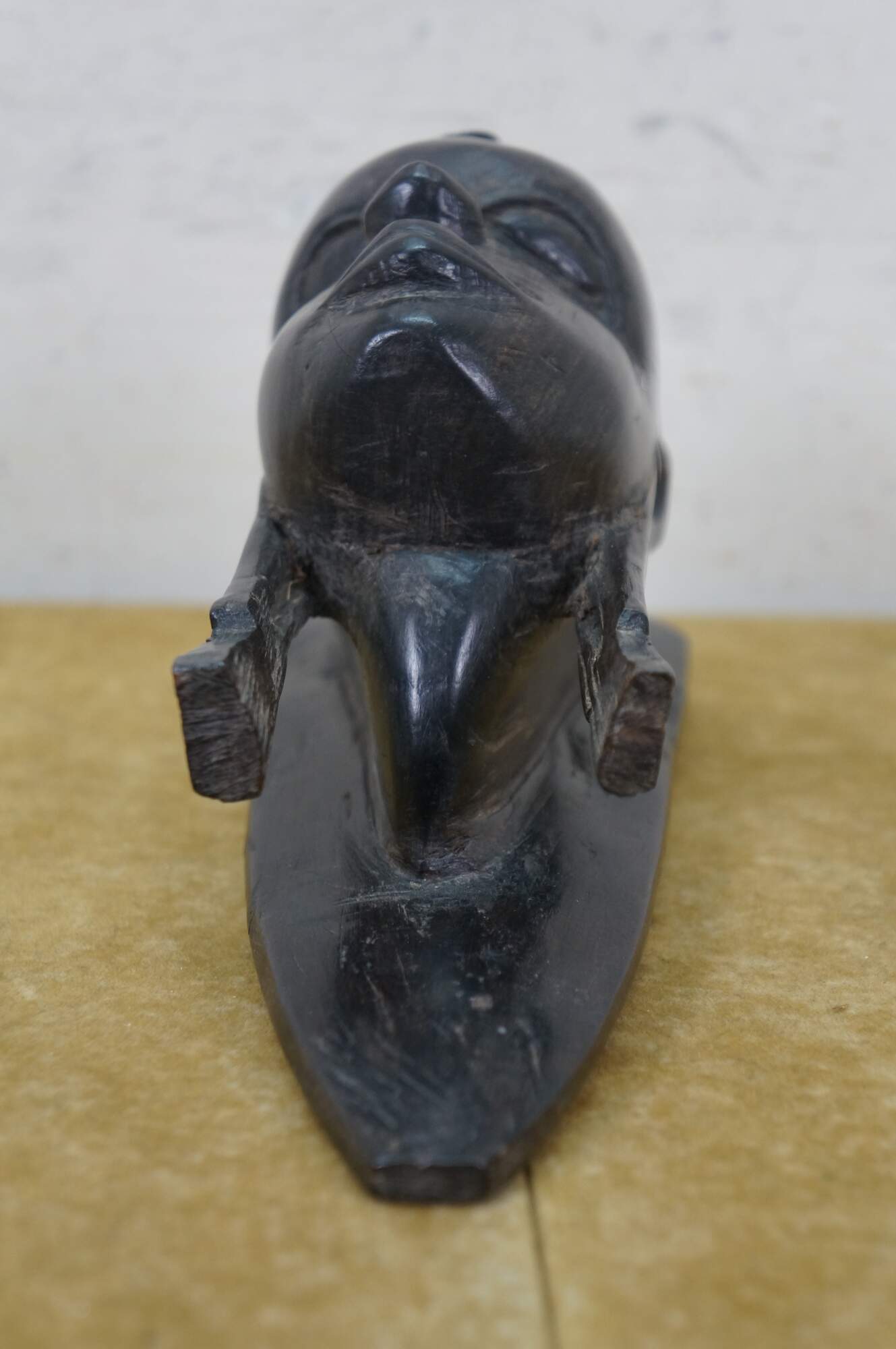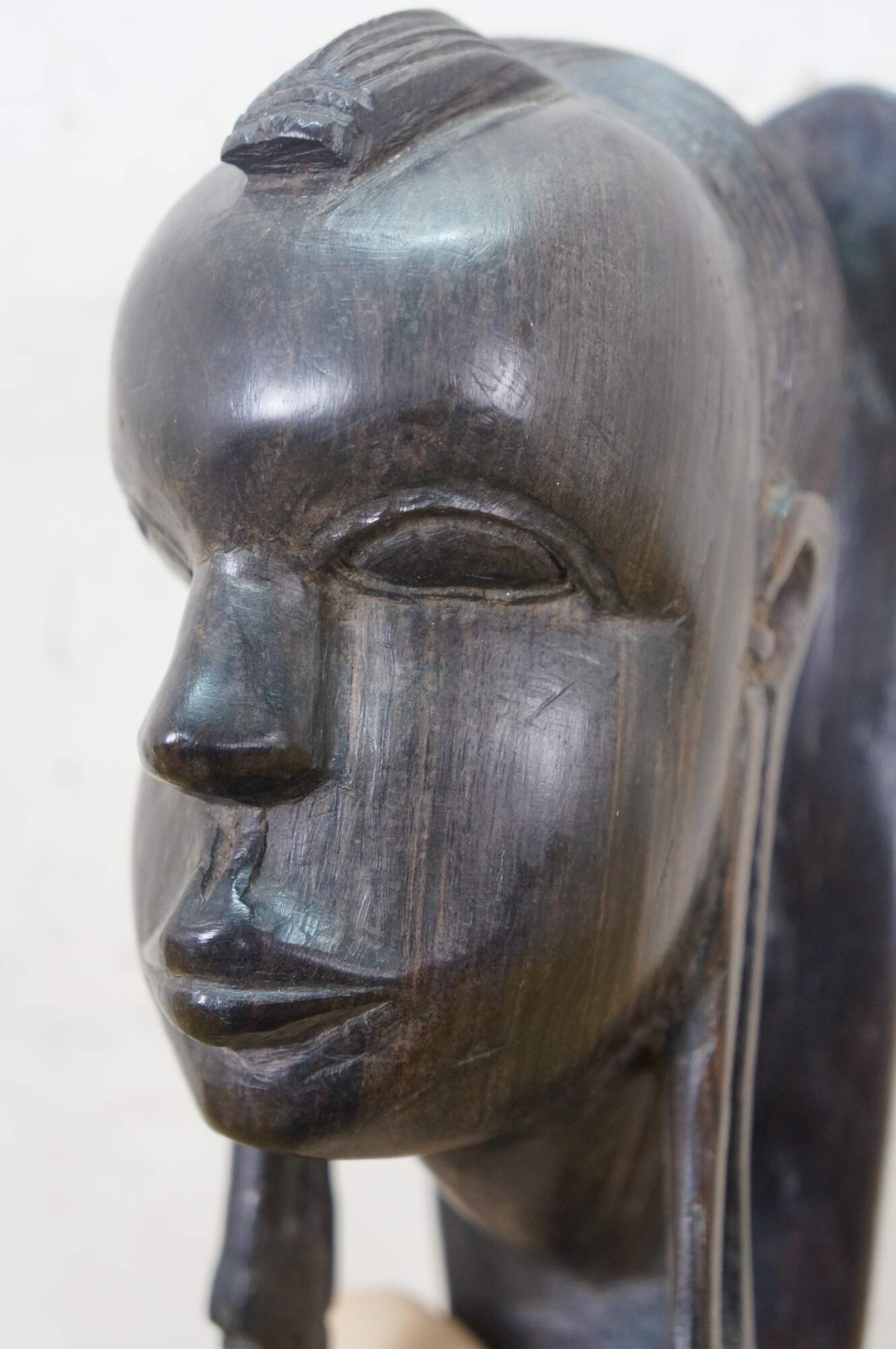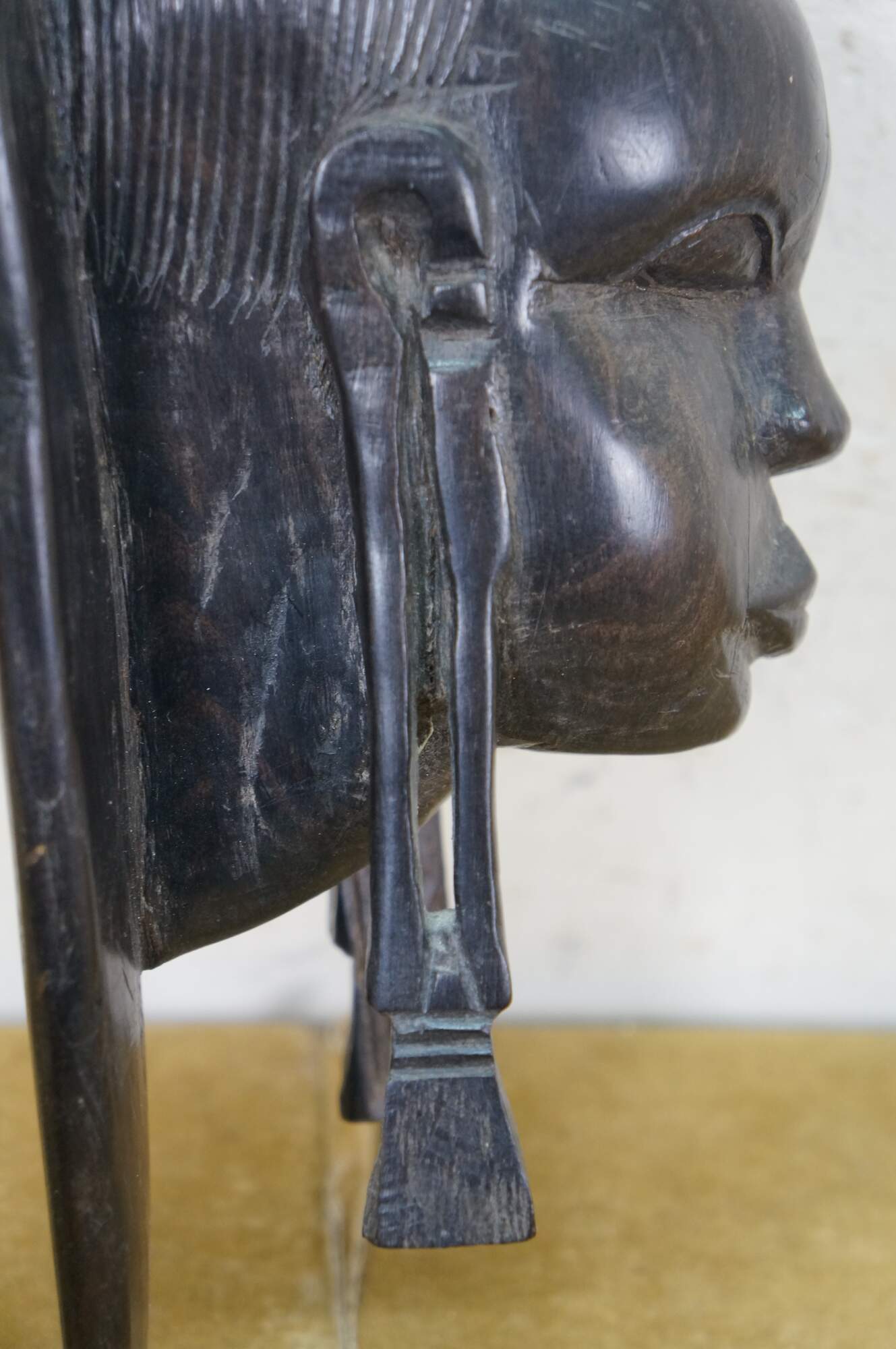 Vintage 20th century hand carved blackwood wall hanging bust - African folk art figure of a face with traditional hair style.