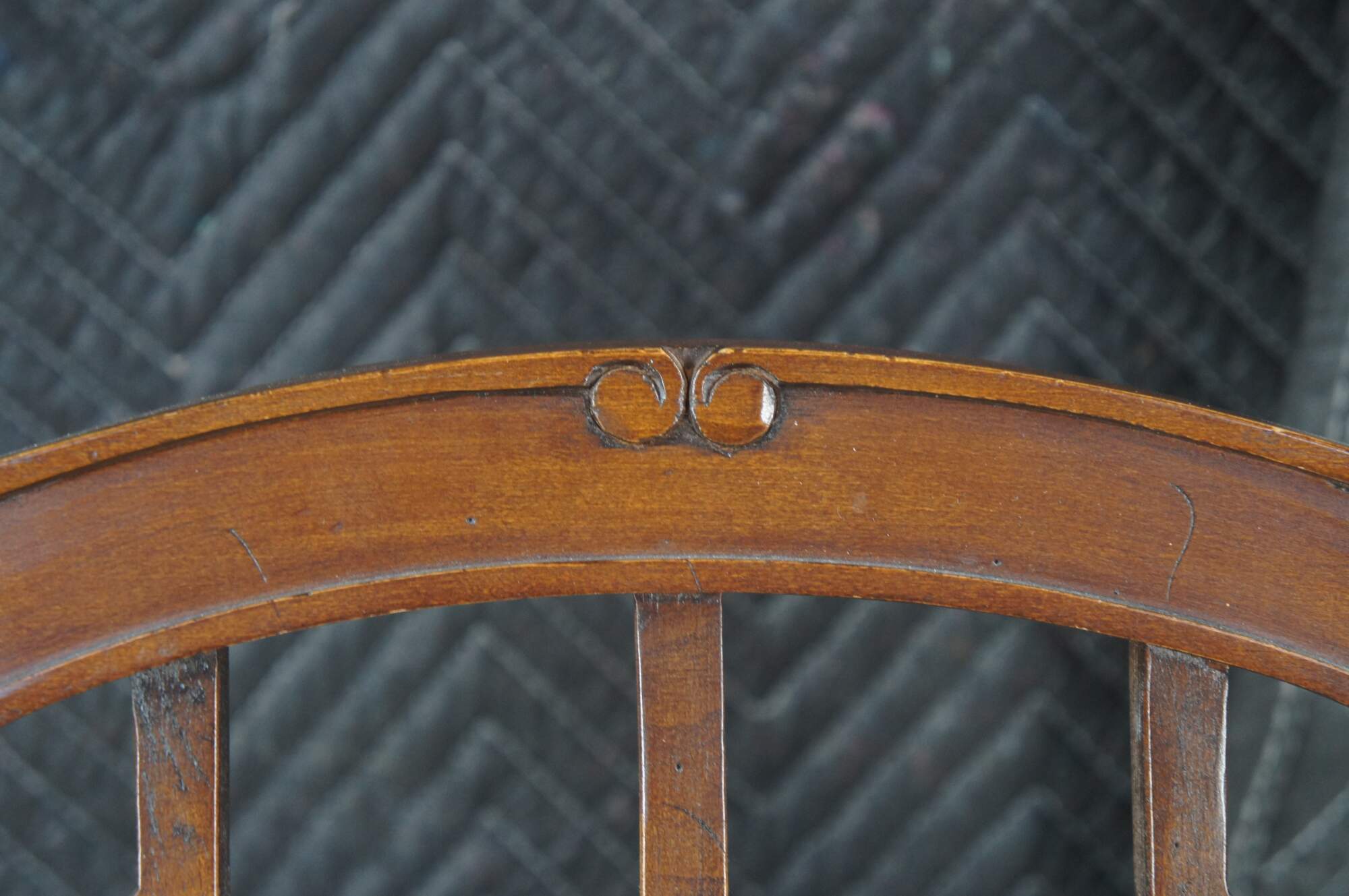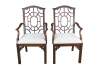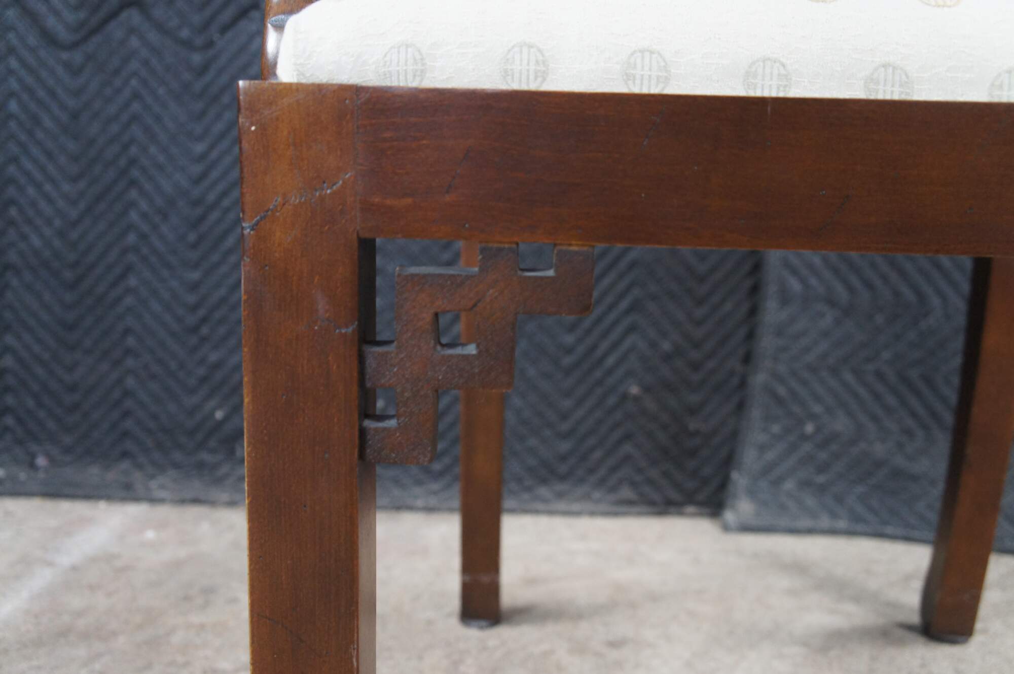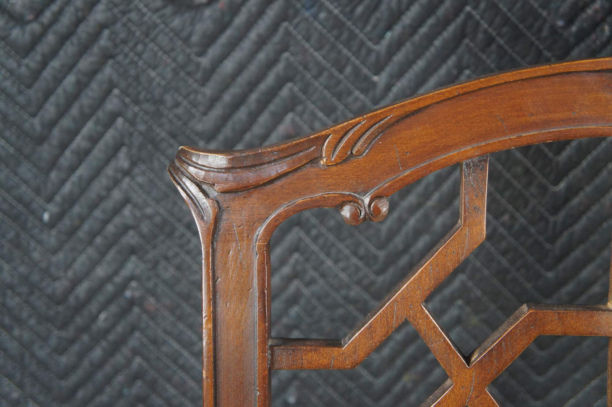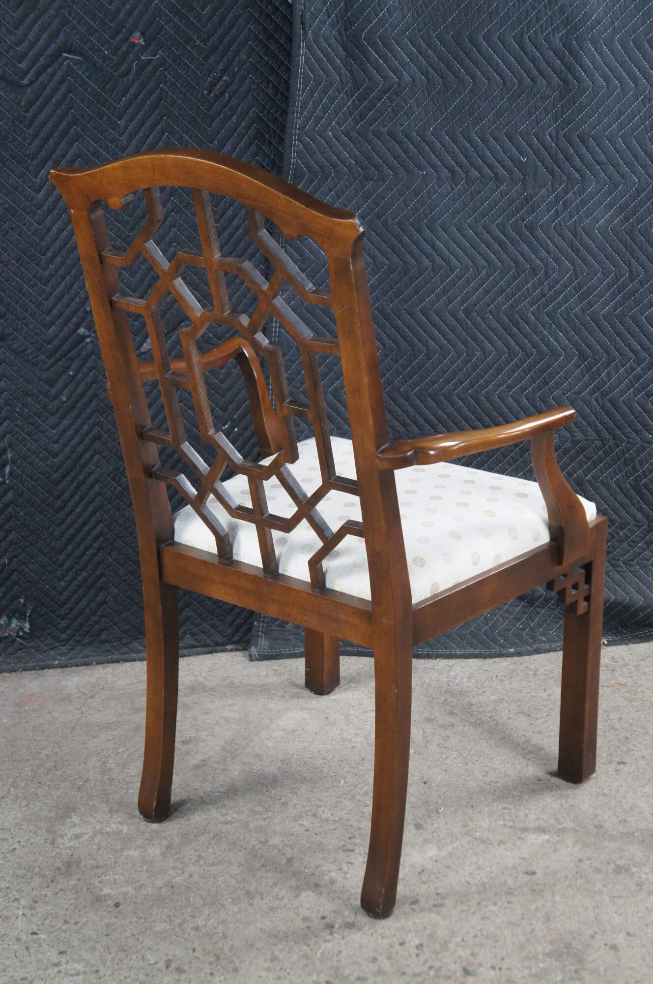 Two vintage Hekman dining chairs. Made from mahogany featuring Chinese Chippendale styling with fretwork backs and serpentine arms. Hekman, Grand Rapids Michigan, 6-3146.